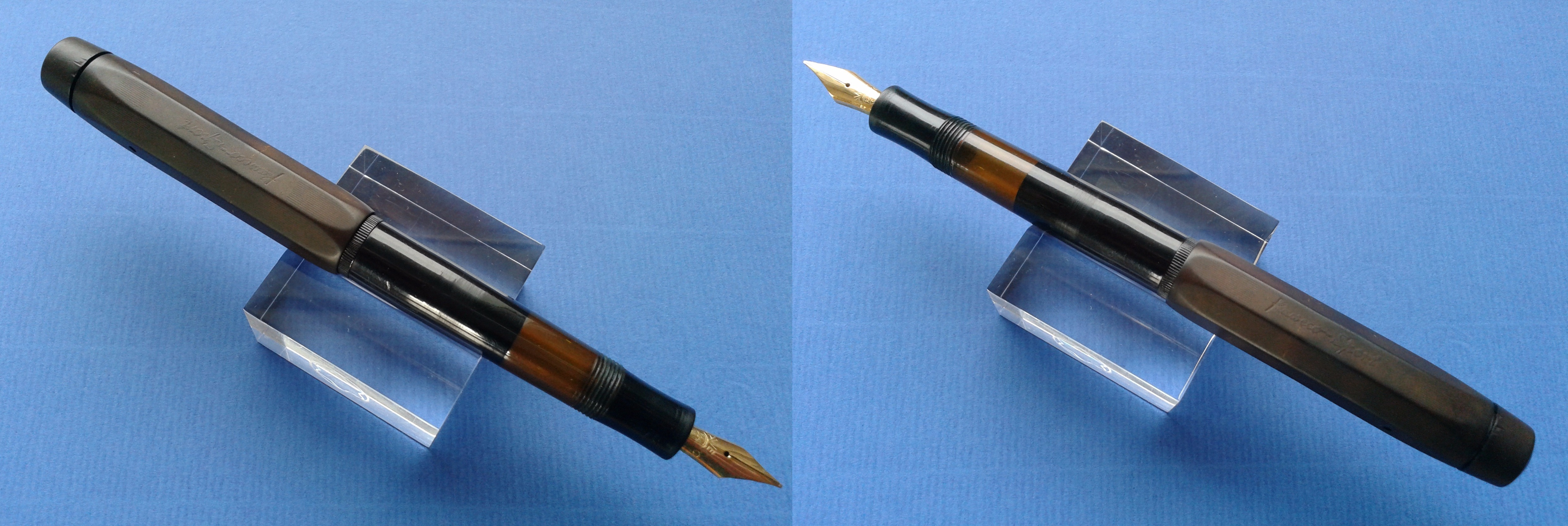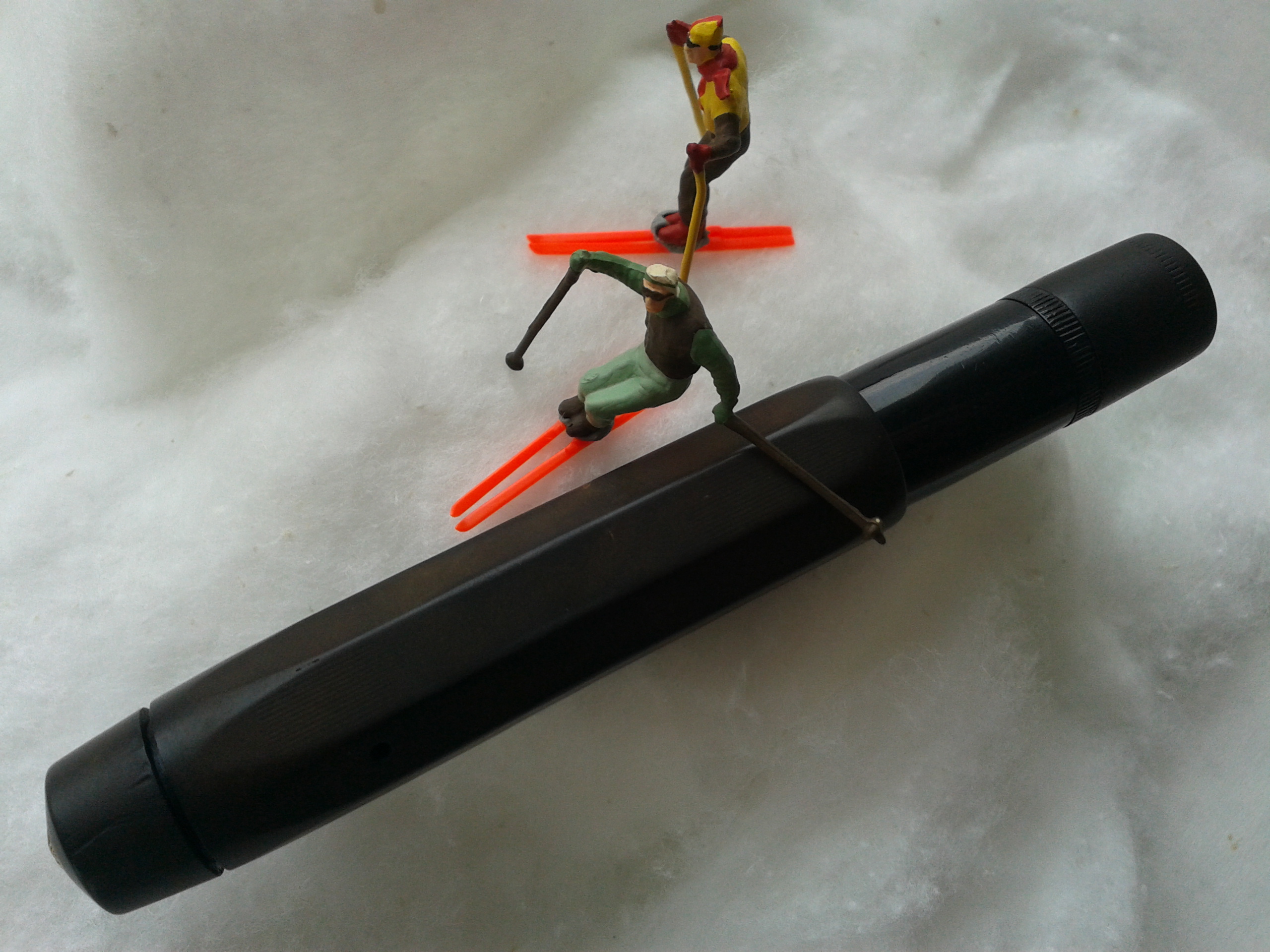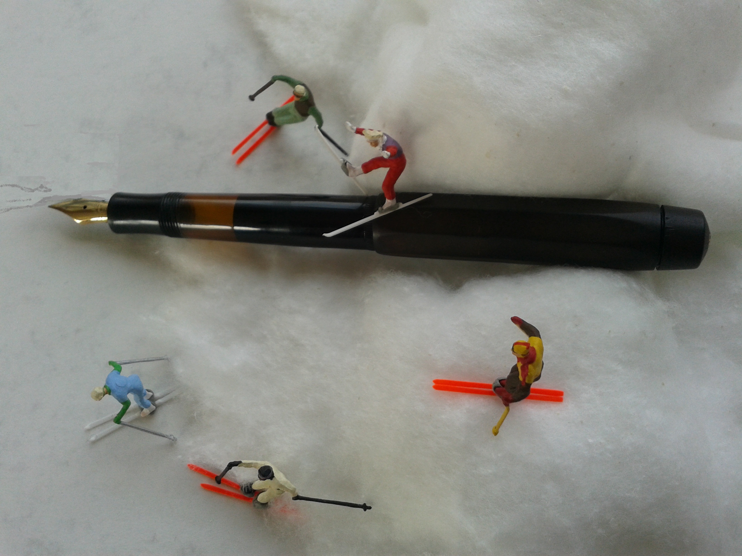 Poi (quando?) la safety viene ad assumere il N.609, e nel 1940 (sempre secondo il pdf Kaweco) la safety torna ad essere N.9 e la piston filler diviene N.12 (come la penna in presentazione): peccato però che all’interno della Germania già dal 1937-1938 non si potessero più vendere i pennini d’oro di cui è equipaggiato il mio esemplare... Se non si trattasse, come è anche possibile, di una penna prodotta con pennino in oro solo per l’esportazione, credo che la mia Kaweco-Sport #12 debba essere datata ben prima del 1940: il 1937 o il 1938, direi.