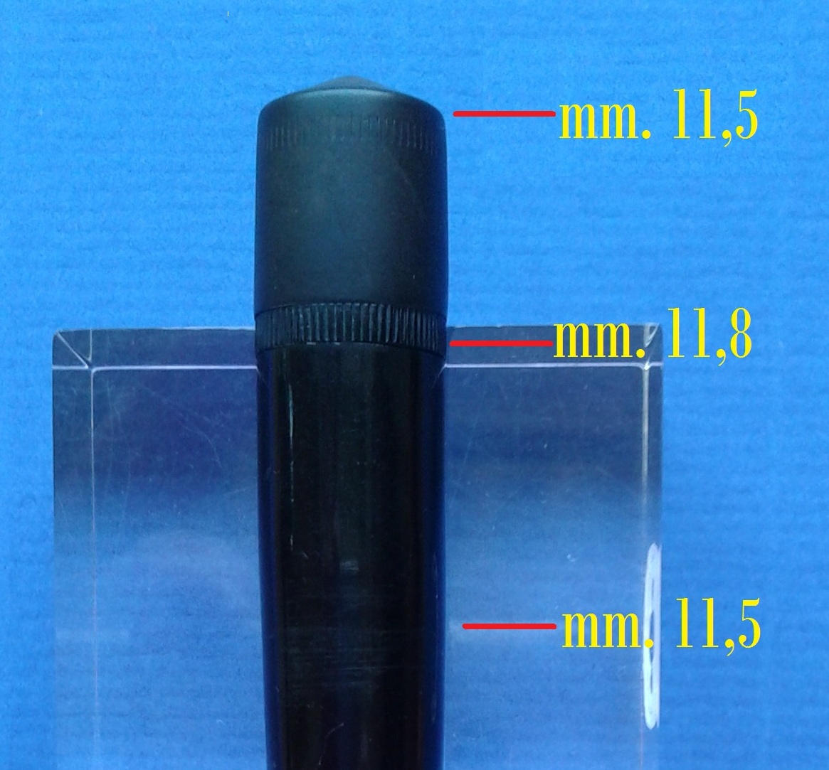 L'ho misurato con attenzione ed è proprio un tronco di cono che termina in un conetto: non è facile da fotografare, trattandosi di scostamenti molto piccoli (e sono d'accordo che sembra più un cilindro)