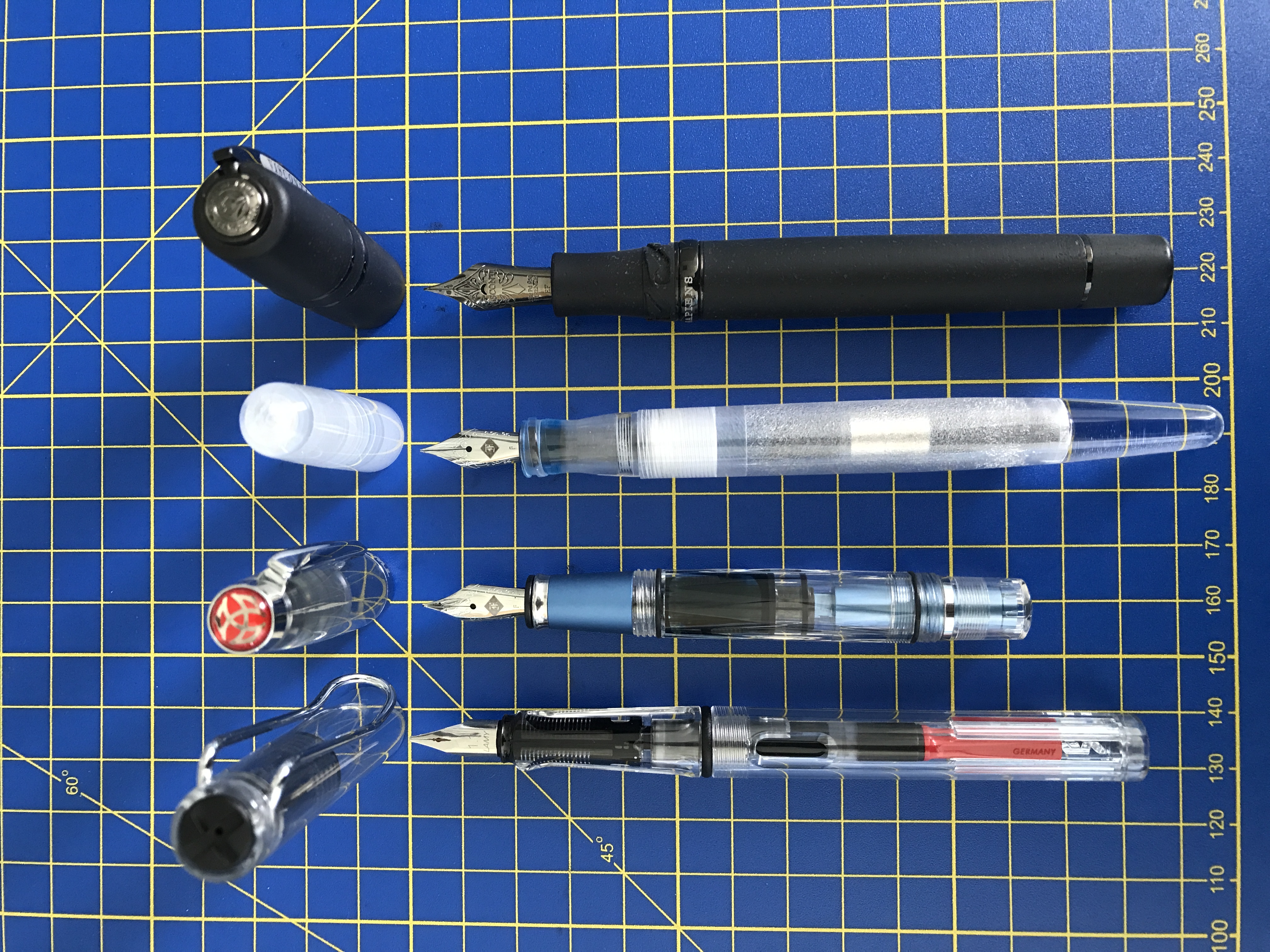 Rispondo alle vostre richieste con una foto  delle (poche) penne che ho inchiostrate in questo momento.