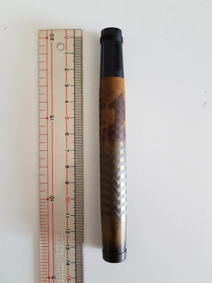 Questa è una penna col cappuccio spaccato che ho riparato e riportato più o meno al colore originale, lavoro eseguito di freyttta con calma sarebbe venuto meglio.