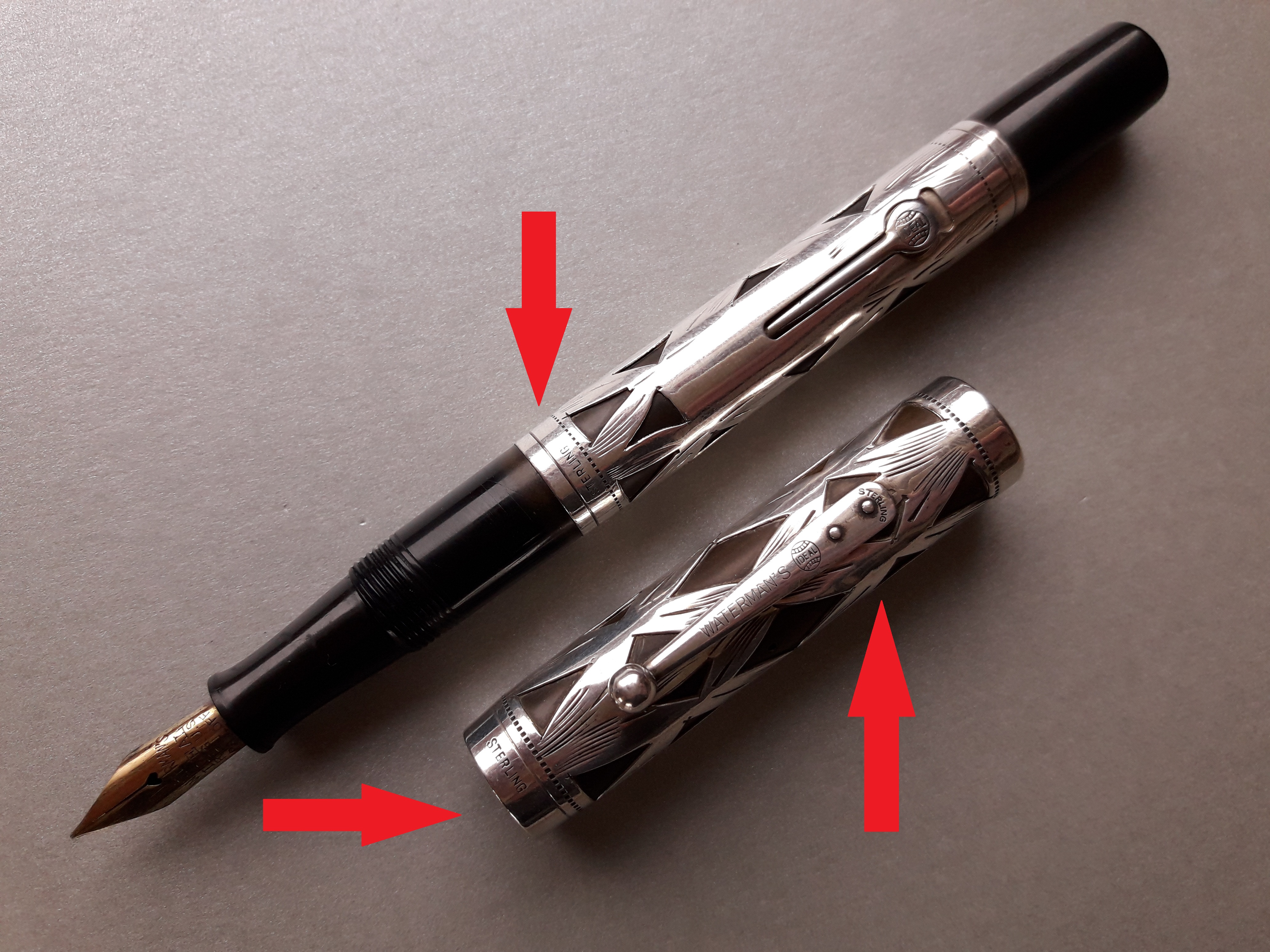 E’ interessante notare come questa tecnica, che è anche una scelta stilistica, sia stata impiegata agli albori del mercato delle stilografiche tra Otto- e Novecento da tutti i maggiori Produttori americani, da Parker a Mabie Todd, ed anche da quelli minori, ciascuno con una sua declinazione caratteristica.