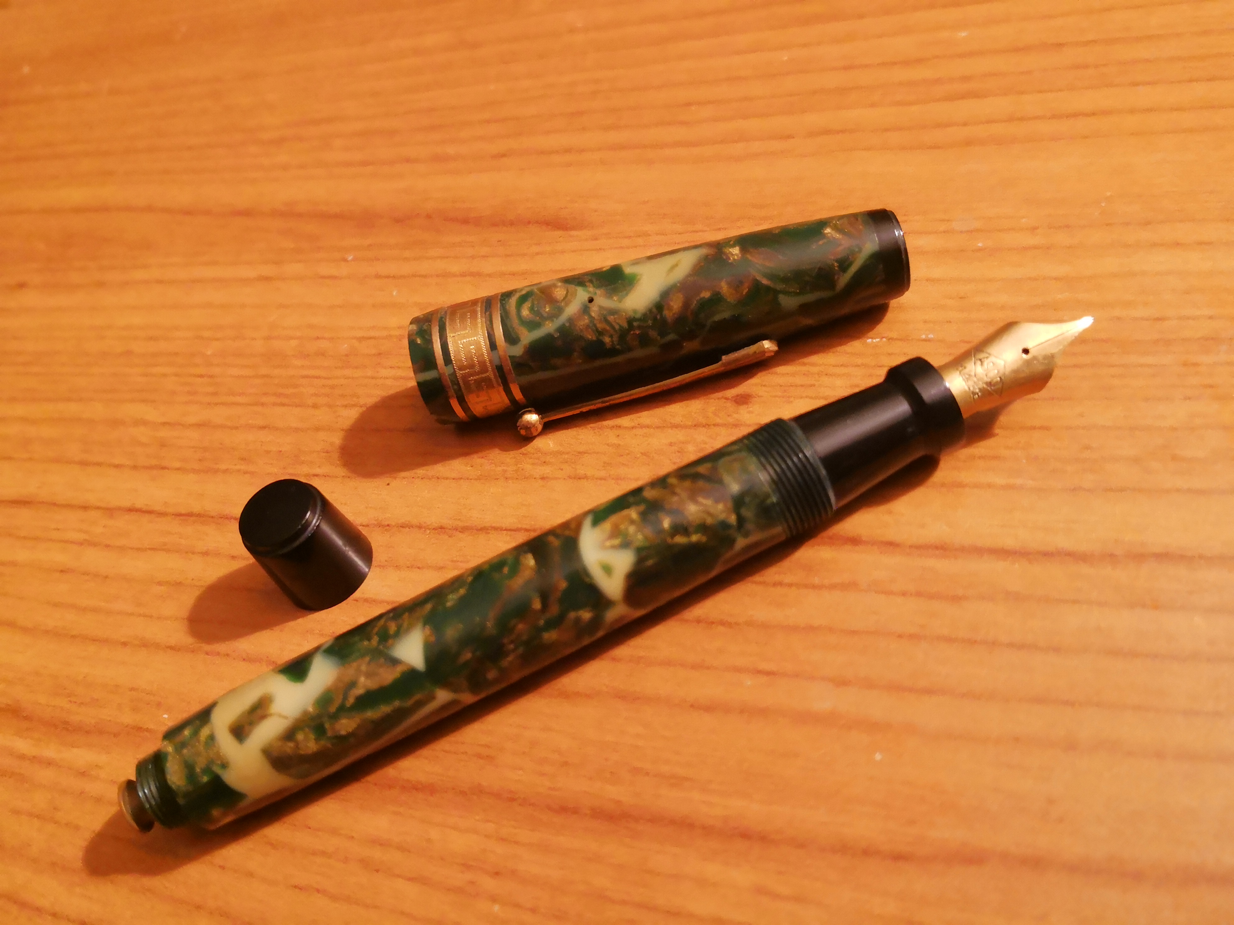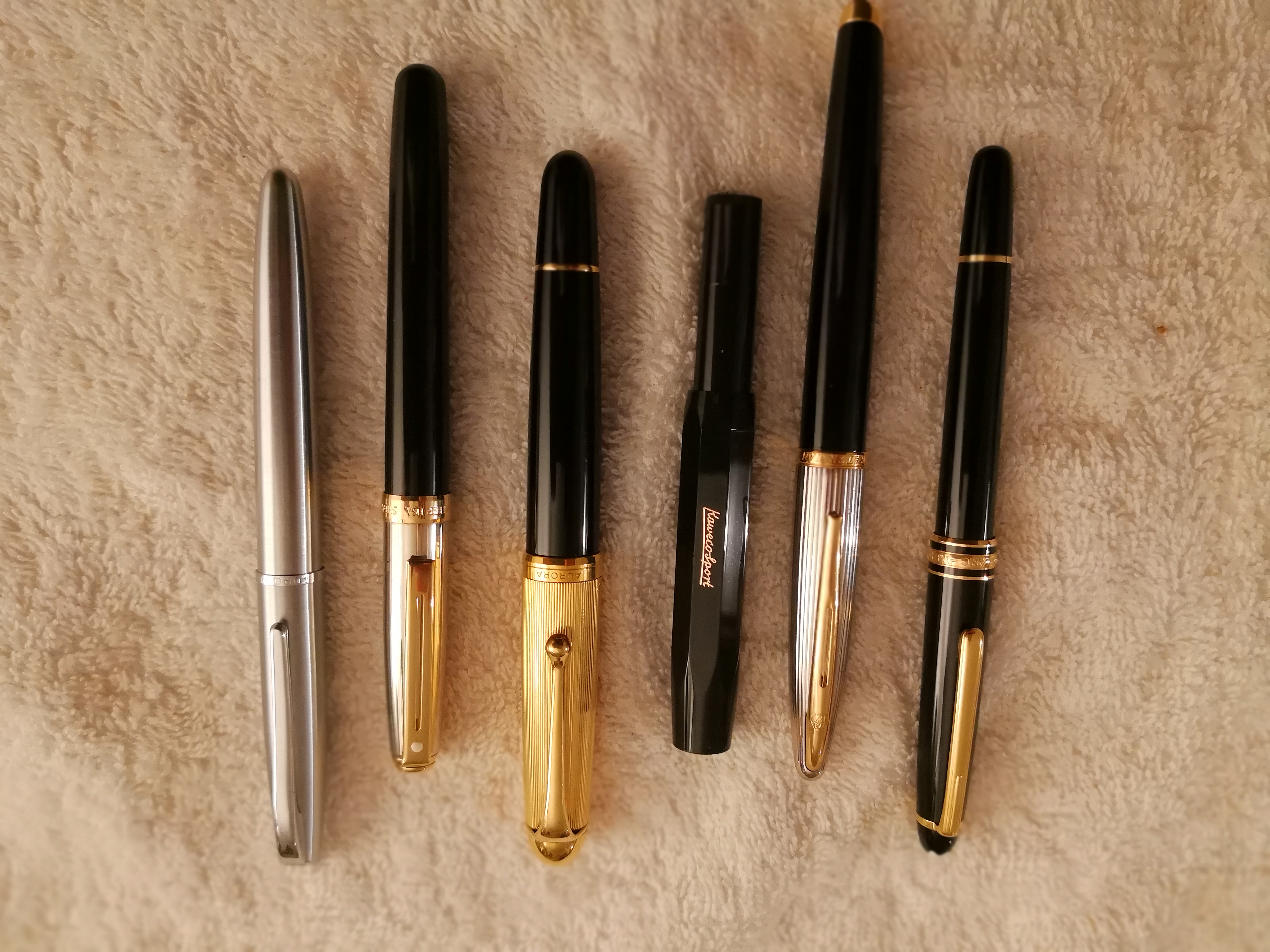 Le penne dell' ultima foto le ho ereditate da un mio parente, sono tutte ferme da decenni e mi piacerebbe restaurarle o comunque ripristinarne l' uso. Per quanto riguarda l' Aurora Internazionale è come l' ho trovata, l' unica informazione 'storica' che ho di queste penne è che questo mio parente lavorava presso una base militare americana in Italia come dipendente civile. La penna più 'disgraziata' quella blu, l'ho trovata con il pennino disassemblato, ma nella scatola comunque c'è un pennino e la parte in plastica che gli sta sotto, anche se non so se sia il suo originario; inoltre la clips se pur integra deve essere fissata meglio. se interessa, posso (stasera) fare delle foto più dettagliate di ognuna di loro.