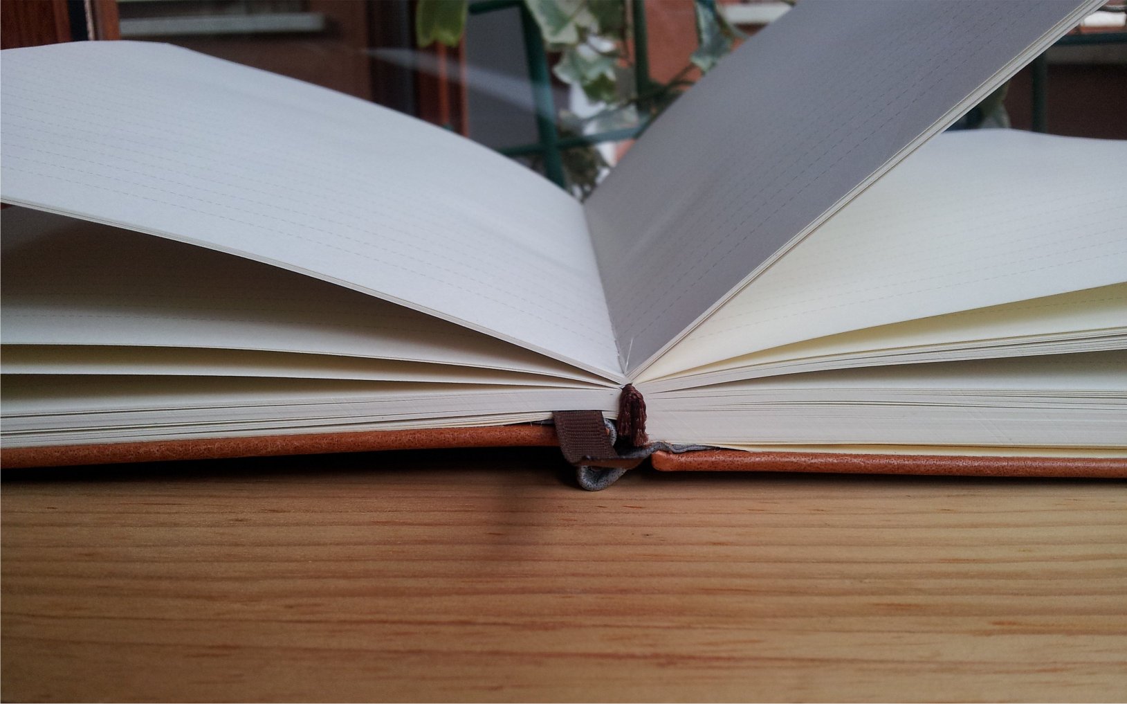 A prima vista si presenta molto bene: le cuciture della copertina in simil pelle sono precise, la rilegatura a brossura cucita trasmette una sensazione di discreta solidità.