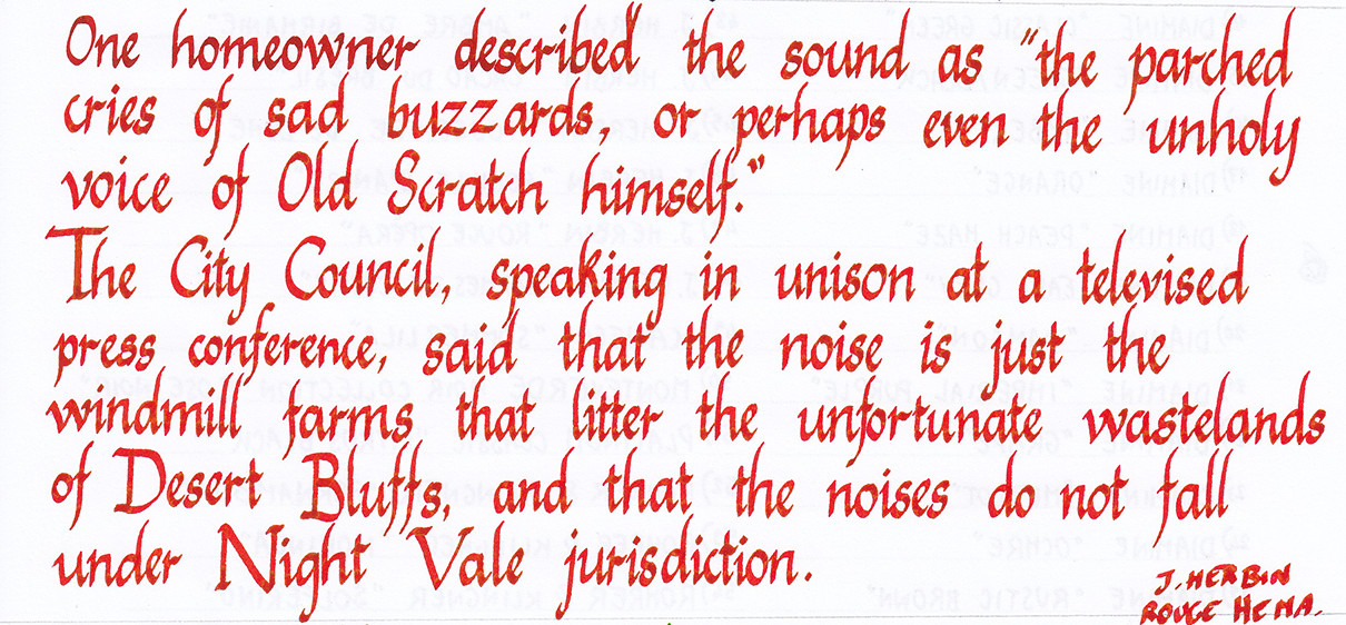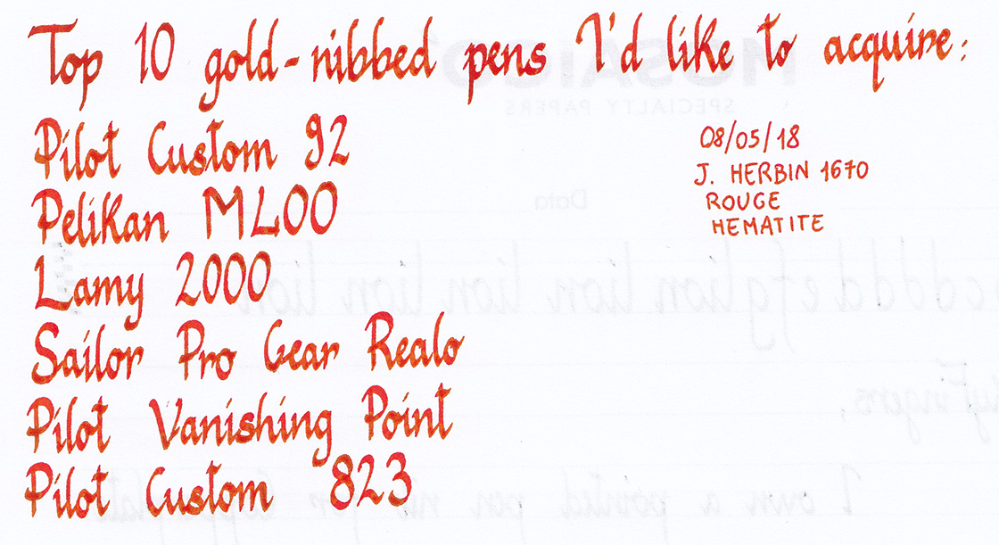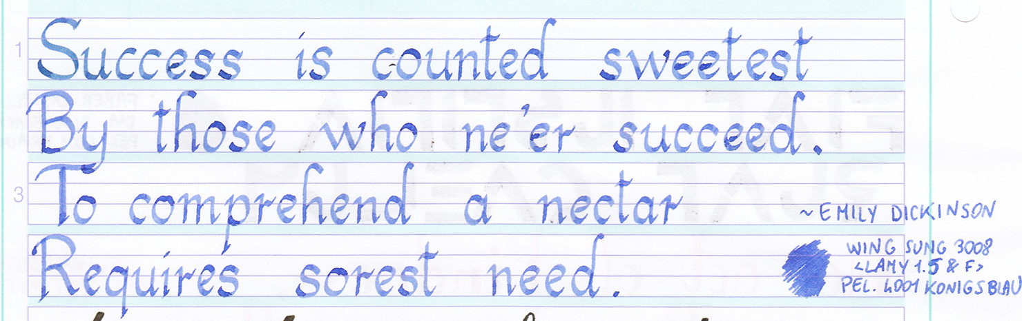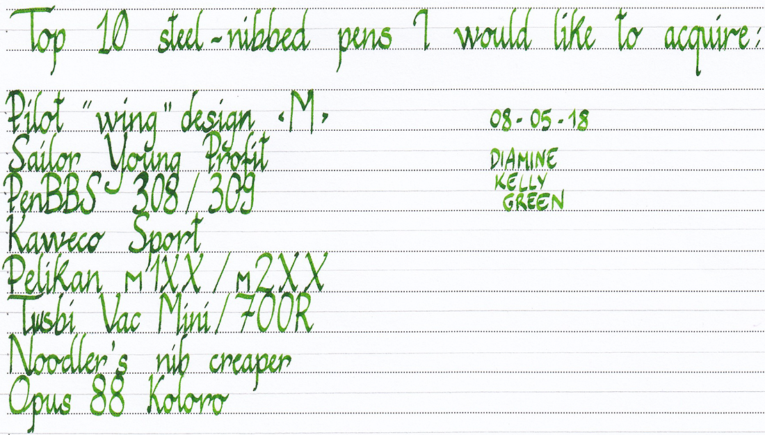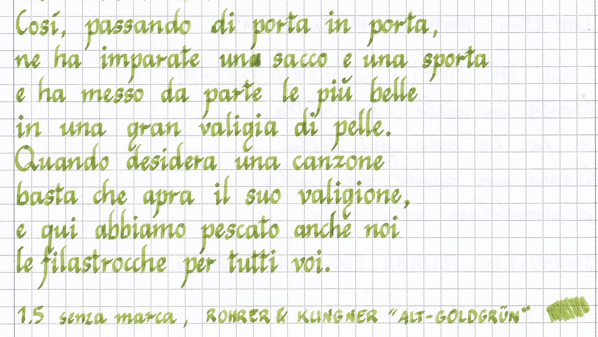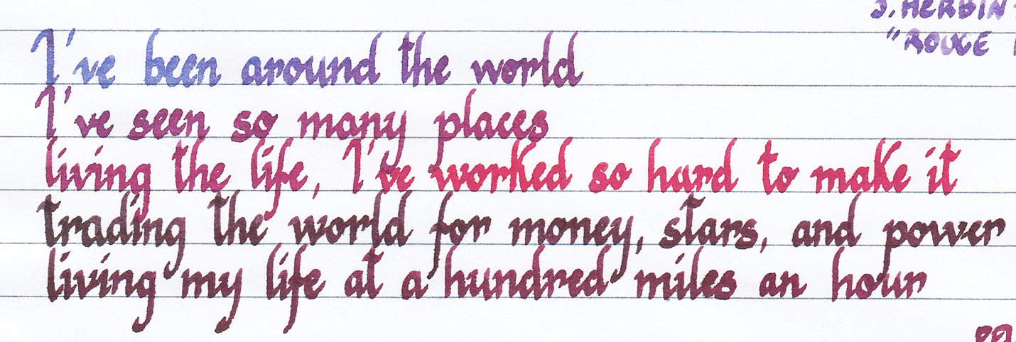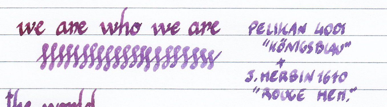 Se ricapiti in questo argomento, troverai ancora le indicazioni dell'inchiostro o della miscela di inchiostri usata. Per me, quella degli inchiostri è una passione inaspettata ma benvenuta. Dopo aver usato le cartucce Pelikan 4001 per anni, aver scoperto tutte queste aziende che fanno ancora inchiostri per stilografica mi ha davvero spiazzato. A volte mi sento più entusiasta per i colori che per le penne. Ce ne sono di così belli, che mi mettono proprio di buon umore. : )