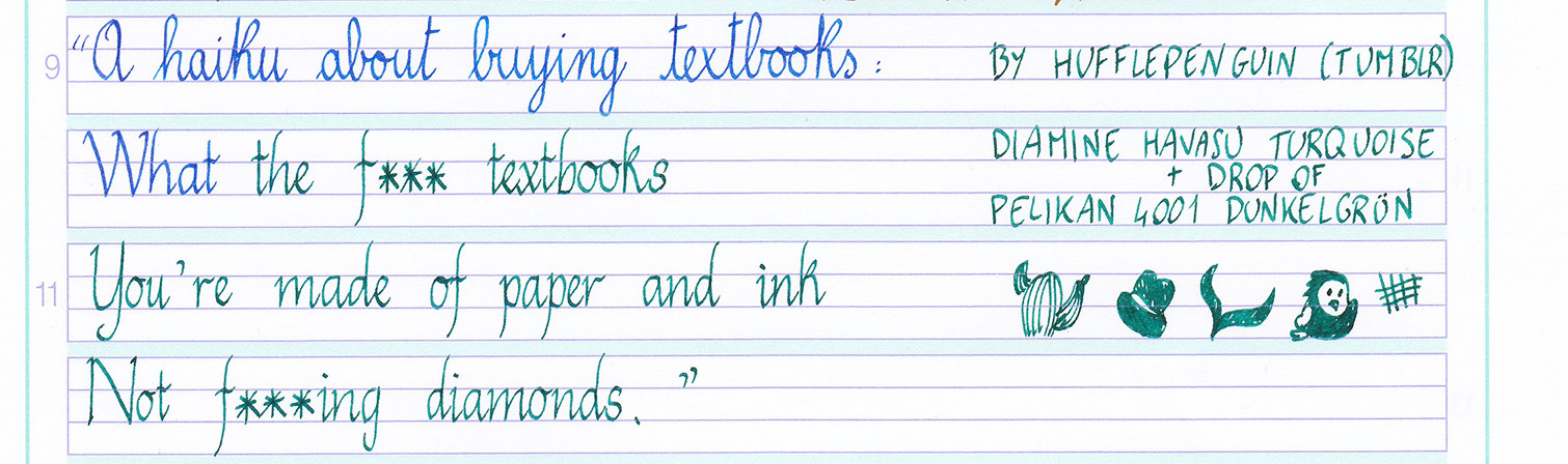 - Il mio inchiostro preferito: blu-nero oppure viola