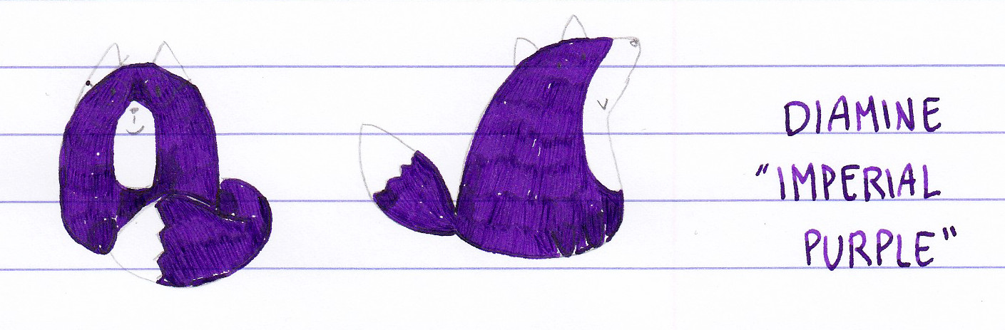 Diamine Imperial Purple su Rhodia. Un inchiostro difficile da lavar via ma con una bella patina dorata. Qui mi ero dimenticata di ripassare gli occhi delle volpi con un inchiostro nero e sembravano cieche. Ad un mio corrispondente sono comunque piaciute.