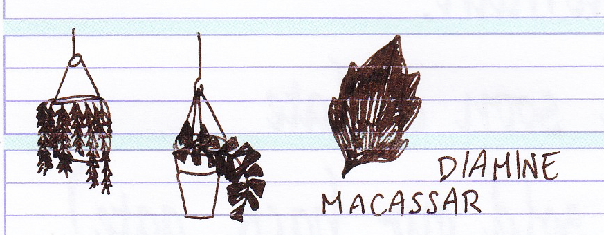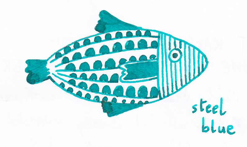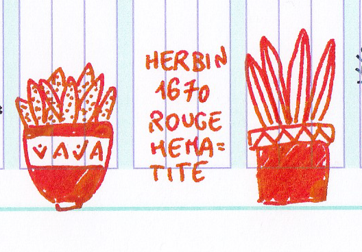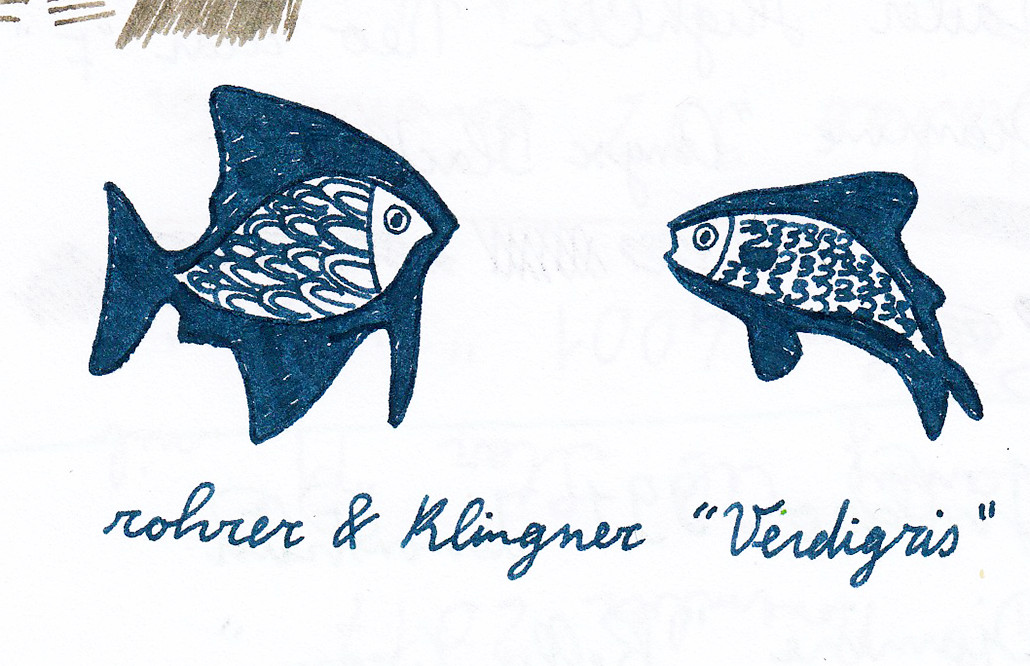 Rohrer & Klingner Salix (ferrogallico). Rohrer & Klingner Verdigris. (in un pennino+alimentatore dal flusso secco e striminzito). J. Herbin 1670 Anniversaire Rouge Hematite. Diamine Macassar. Pelikan 4001 Royal Blue. Pelikan 4001 Violet. Rohrer & Klingner Sepia.