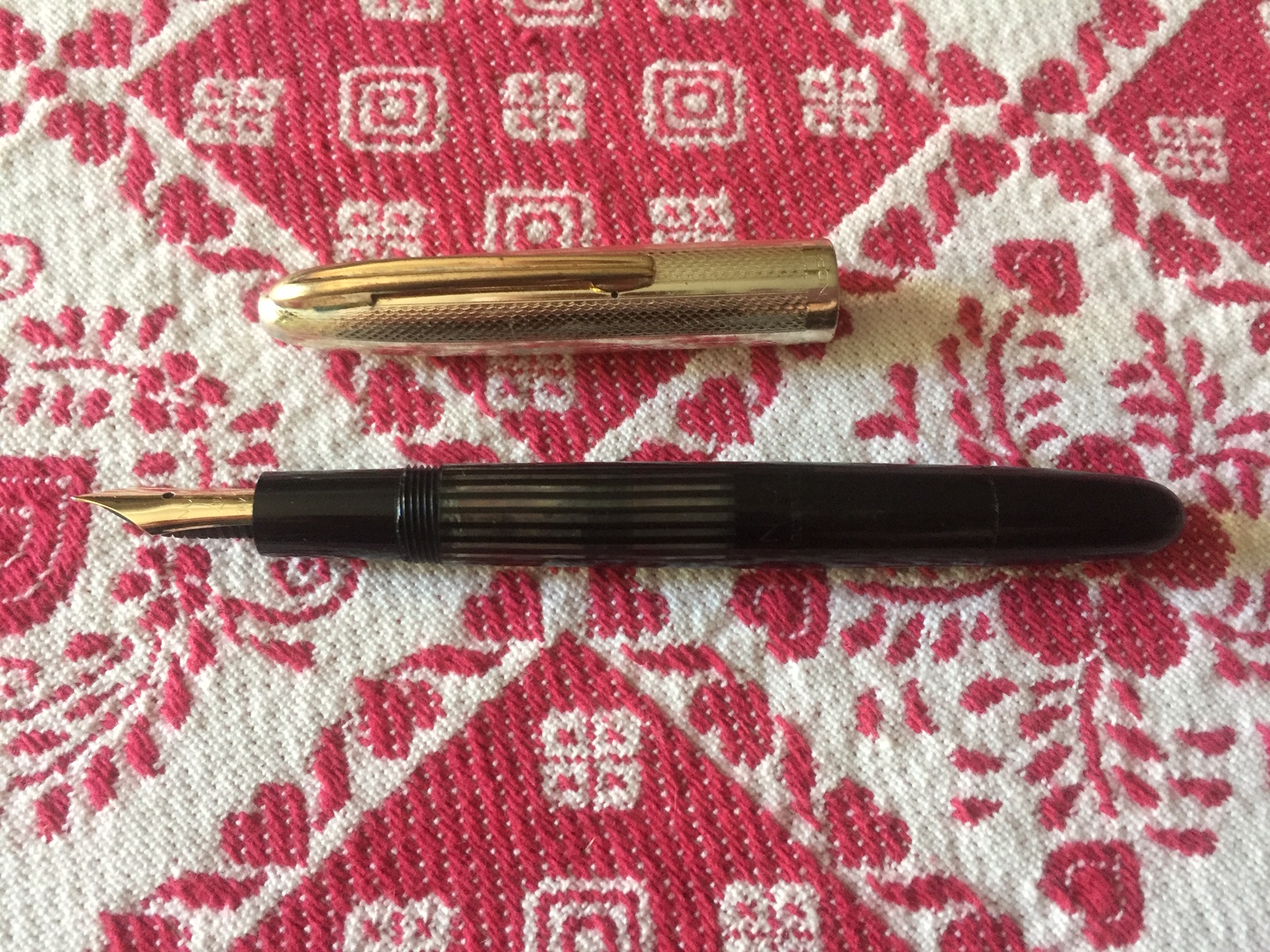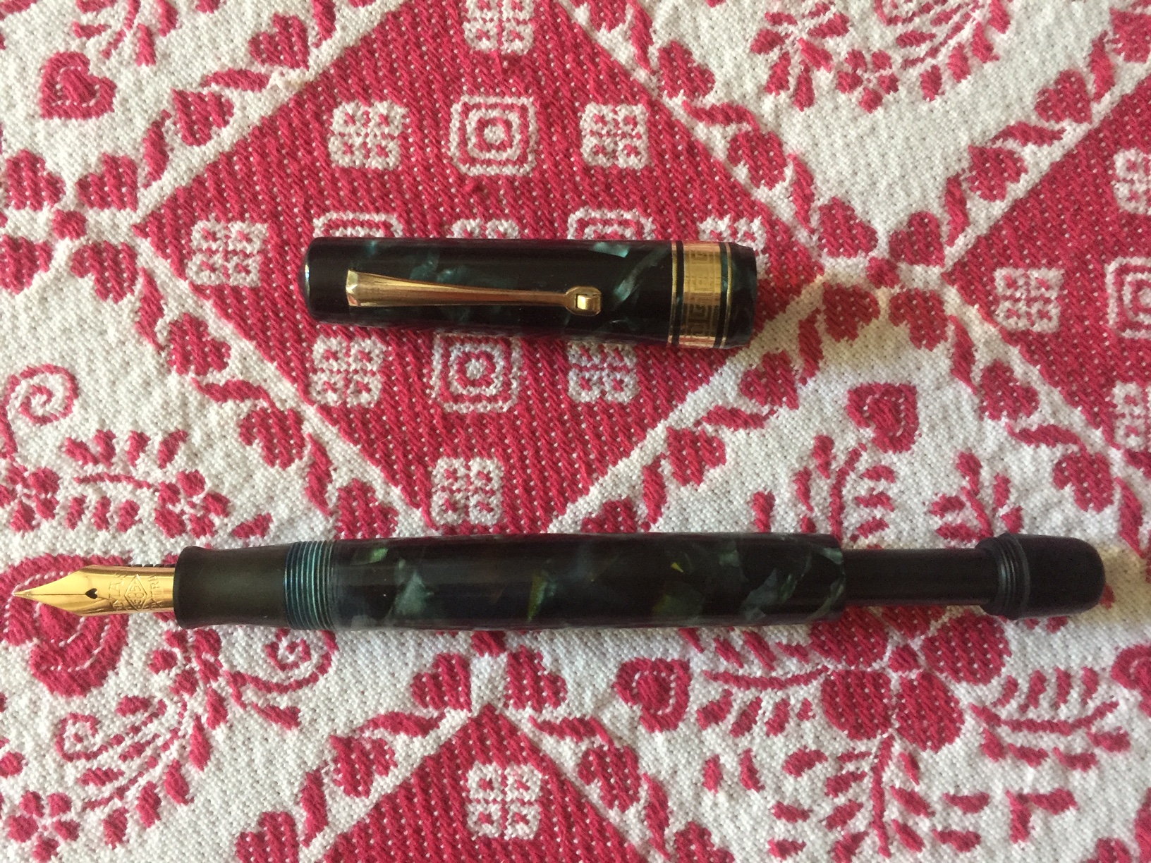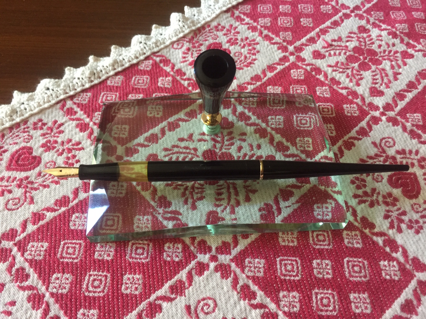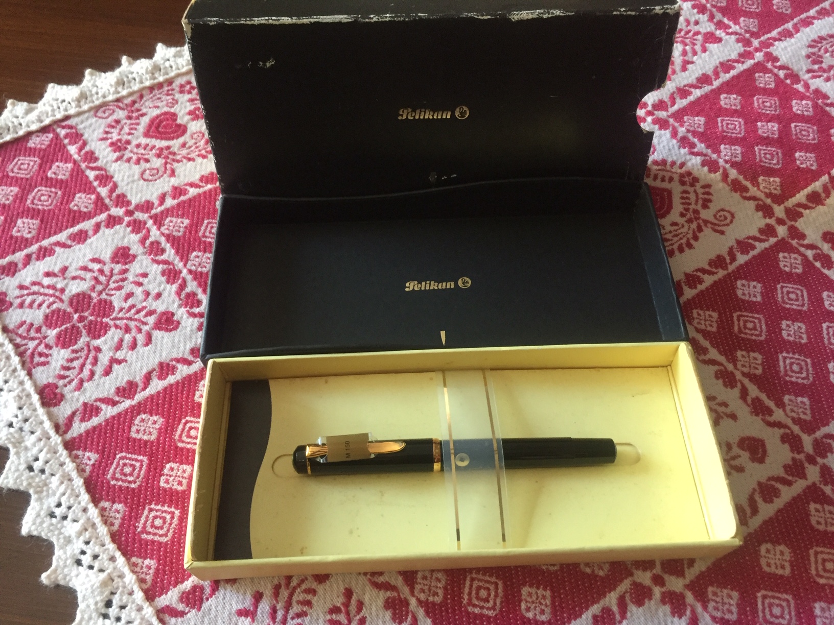 Anche a ferragosto la caccia continua, e nel carniere entrano: base e penna per stiloforo Omas, praticamente mai usato, pennino Omas extra oro 585 caricamento a pistone; Pelikan M150 nuova con scatola, contro scatola e libretto istruzioni; Parker Vacumatic, in buone condizioni, funzionante, pennino originale Parker in oro, dovrebbe mancare l'anello in metallo dorato sul fondello; matita meccanica Parker (51) funzionante, in ottimo stato con gommino originale integro; stilografica Norex, pennino oro 585 carica a stantuffo funzionante, in buone condizioni; Sheaffer Craftsman, caricamento a leva laterale (da sostituire il serbatoio inchiostro), pennino oro Sheaffer; Omas Lucens, in celluloide screziata blu, caricamento a stantuffo tuffante, funzionante, aveva un pennino non originale che ho sostituito con un Omas Extra in oro 585 della sua misura. Allego foto di rito.