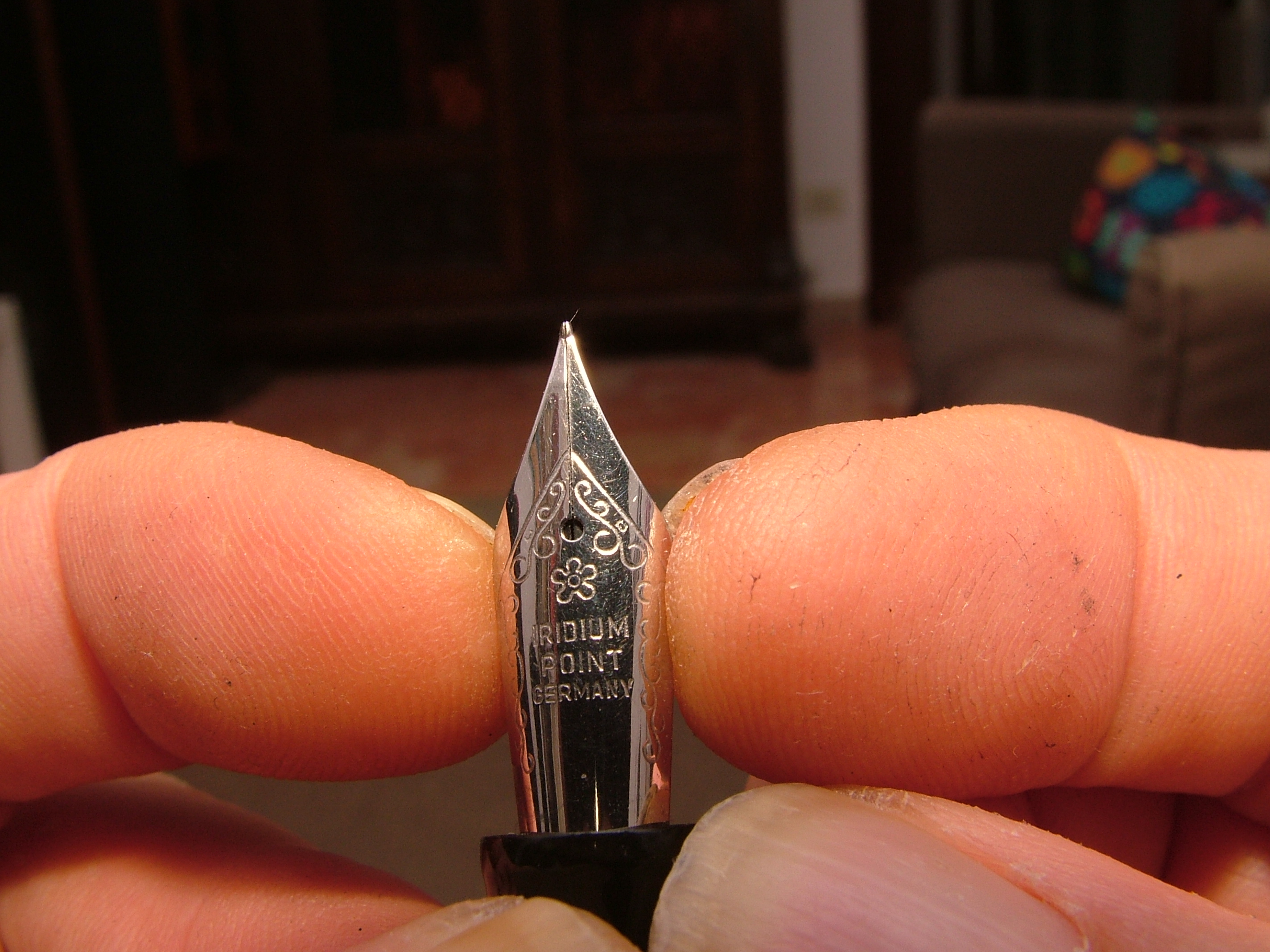 Anzitutto va capito se il problema è davvero di scarsa luce nella fessura delle punte, o c'è altro (alimentatore). Quello che si usa per allargare la fessura è una pellicola abrasiva su un solo lato, da applicare con estrema cautela, tipo queste: https://www.fountainpen.it/File:Nib-Brushing-Sheets.jpg.