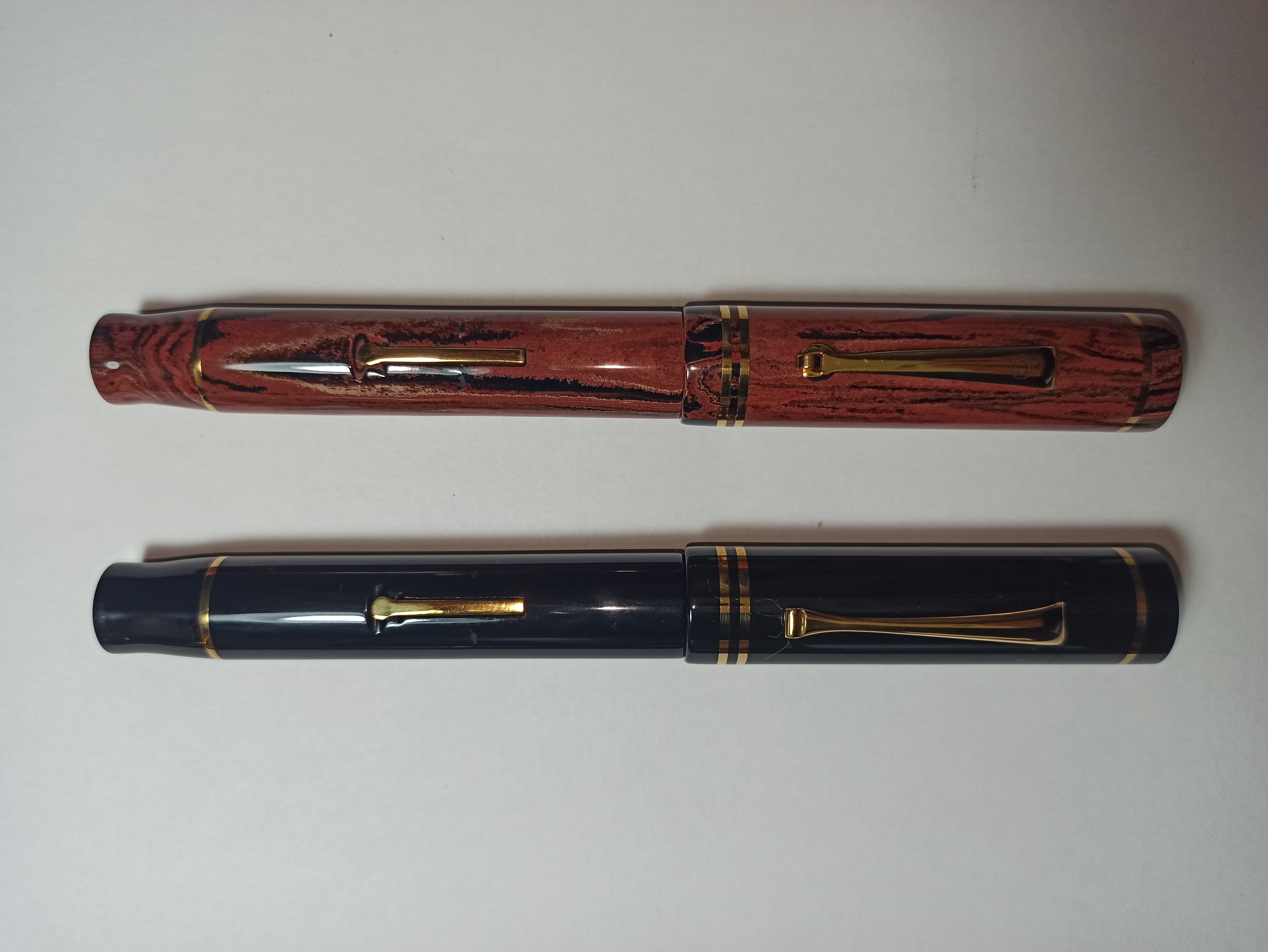 Anche per mantenere un certo legame cromatico con l'originale, ebanite rosso terracotta (RHR Duofold) o il cardinal red tipo Waterman anni 20-30