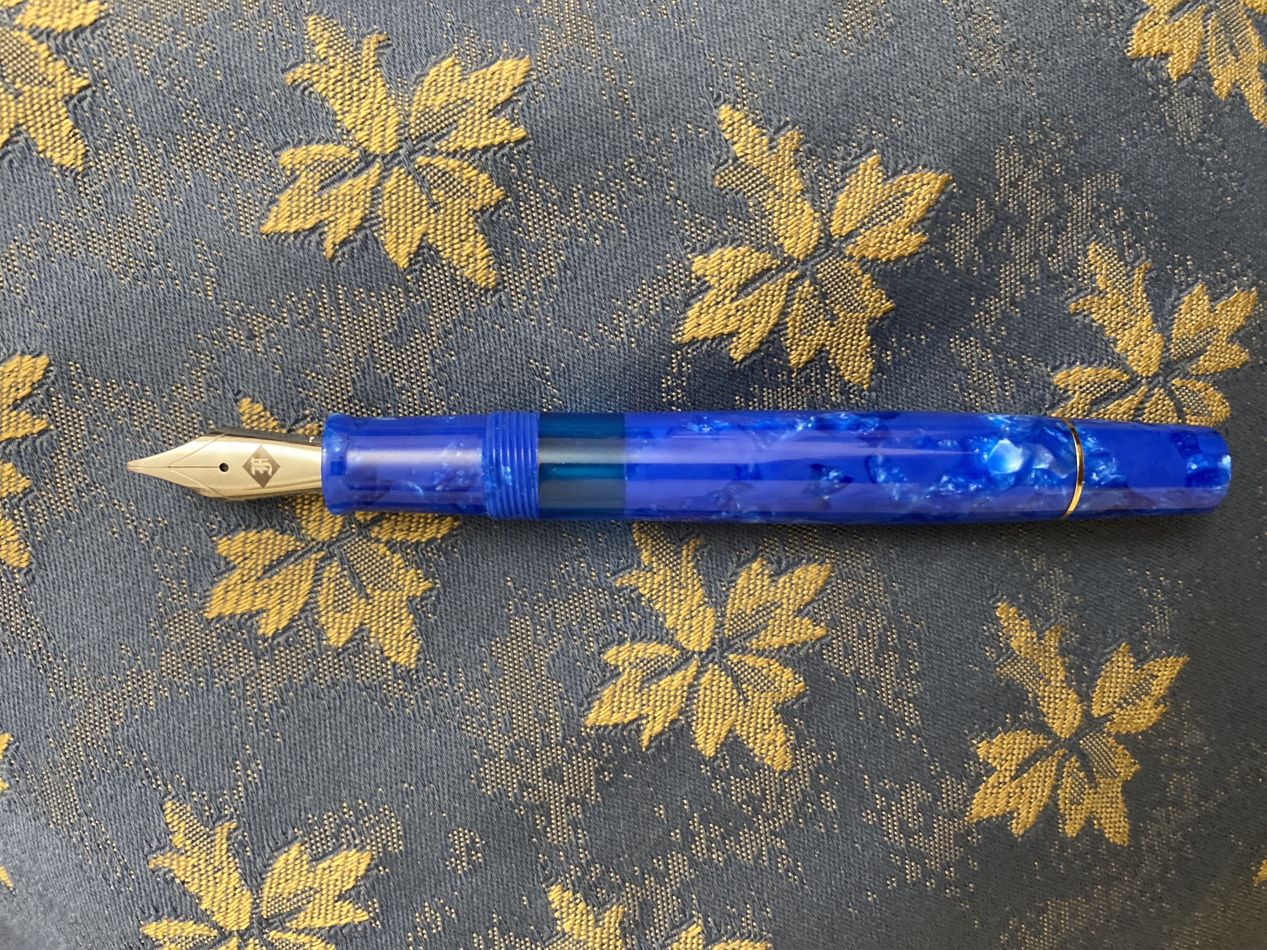 Ma veniamo ora al mio esemplare, una penna basata sulle linee della Momento Zero Grande ma ancor più grande, una vera oversized. Parlare delle misure su questi modelli custom non ha molto senso, essendo penne artigianali differiscono di qualche mm tra di loro, comunque per da un’idea ecco le misure della mia Custom.