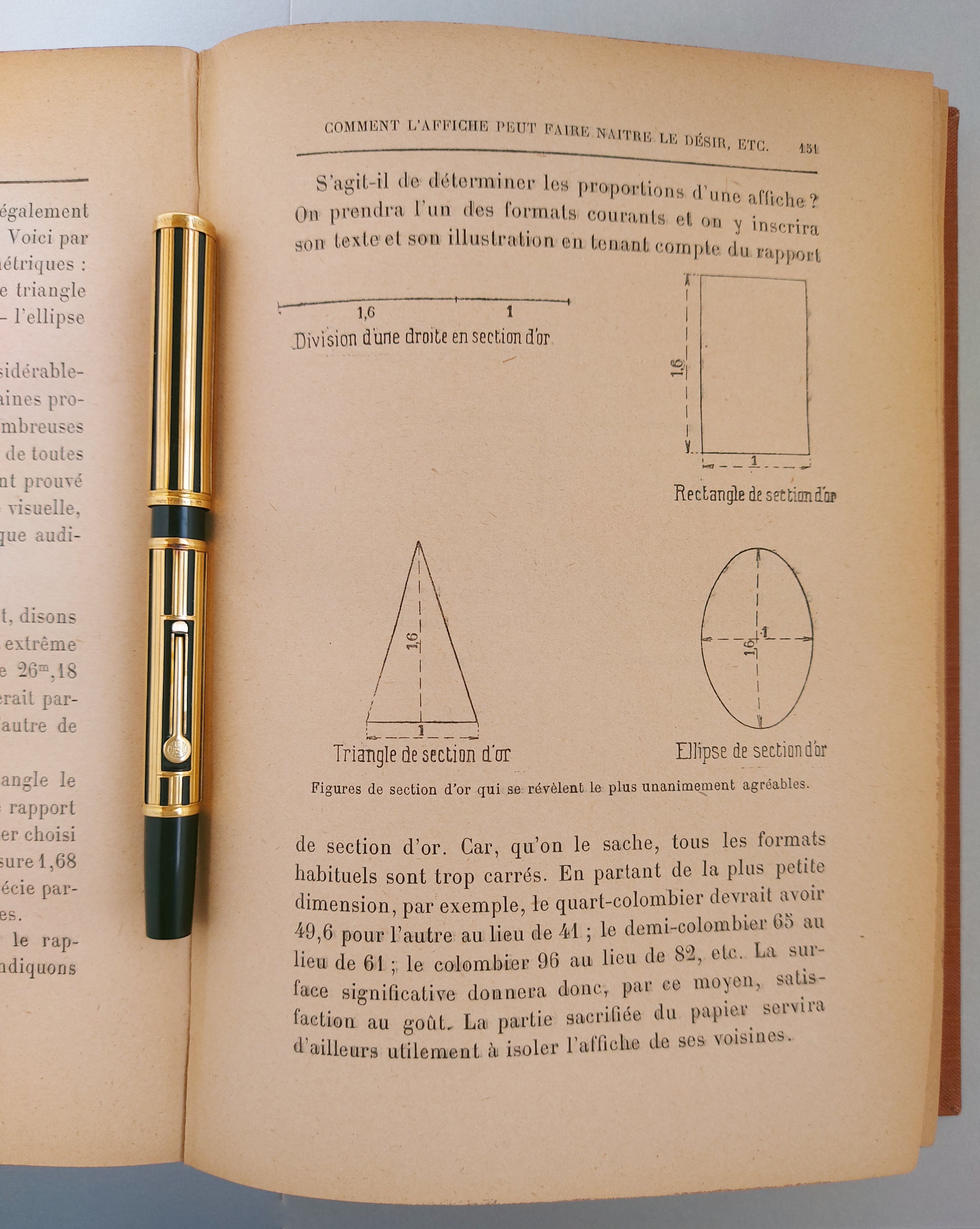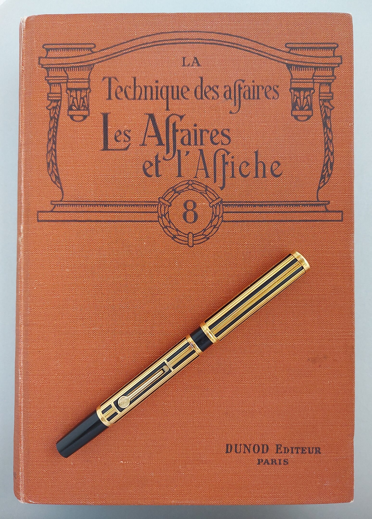 Dopo esser entrato in possesso della penna, l’estate scorsa, ho scoperto che la maquette del manifesto (la versione pre-definitiva) era già stata pubblicata all’interno del volume Les Affaires et l’Affiche (n.VIII della collana La Technique des affaires), che ho quindi prontamente acquistato.