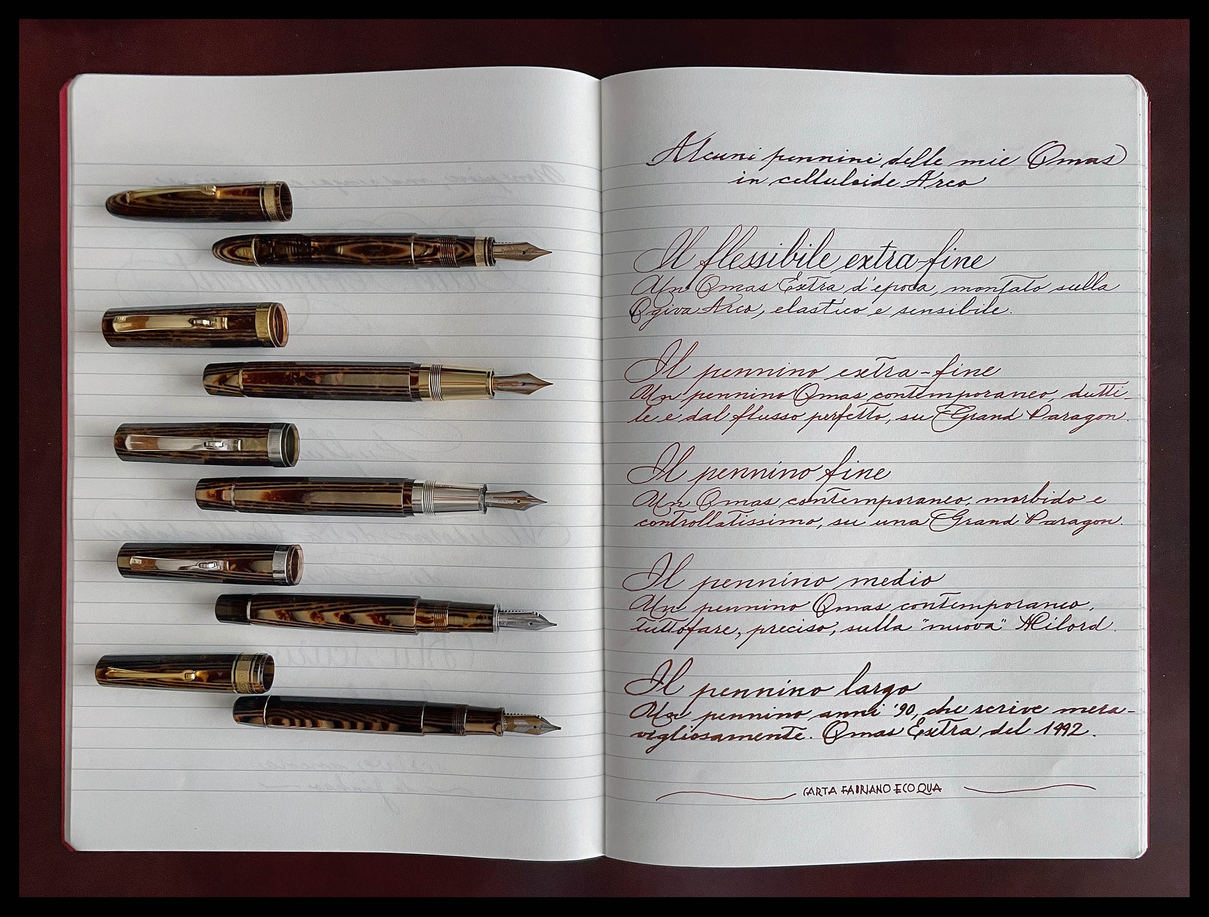 Ho sempre trovato utile poter vedere le misure dei pennini alla prova, una accanto all'altro, e forse a qualcun altro servirà.