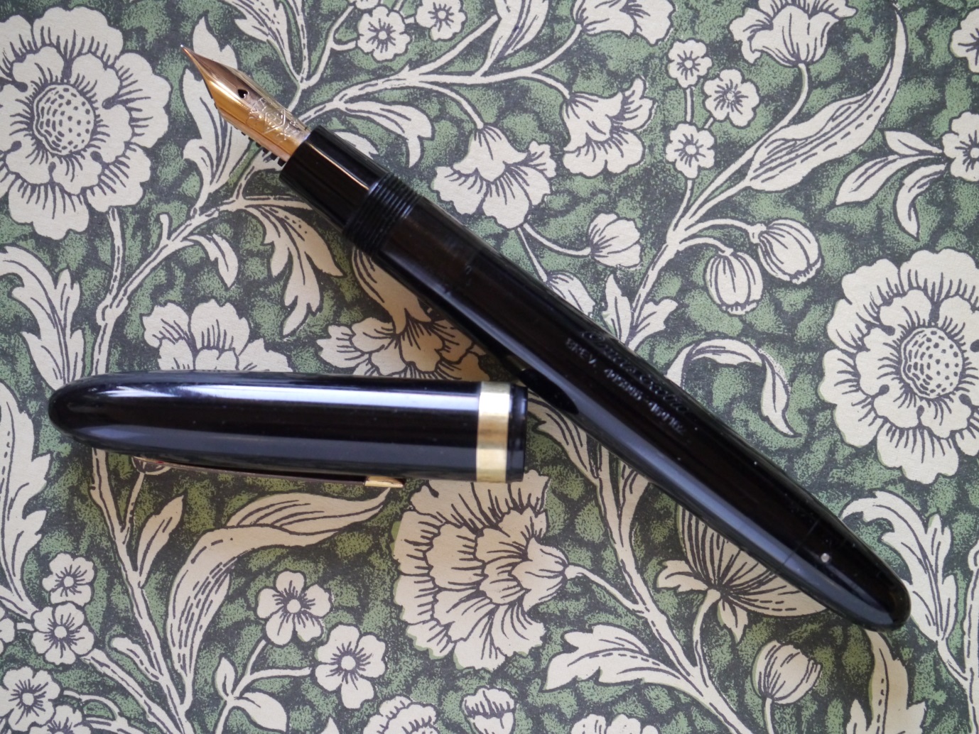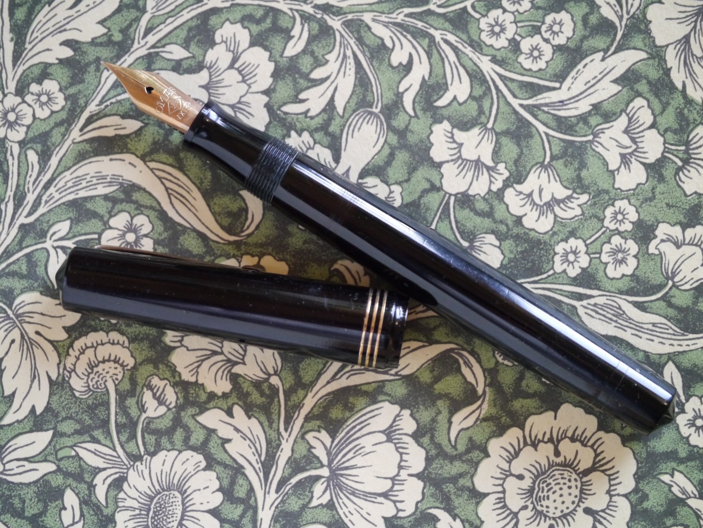 La flat-top é quasi con certezza una Lucens, ma per sapere se si tratta di una taglia grande o extra-grande (o alternativamente media o grande, come vogliano le parole) bisognerebbe misurarla. Una Lucens a stantuffo é lí, nel novero delle penne che prima o poi mi piacerebbe molto avere.