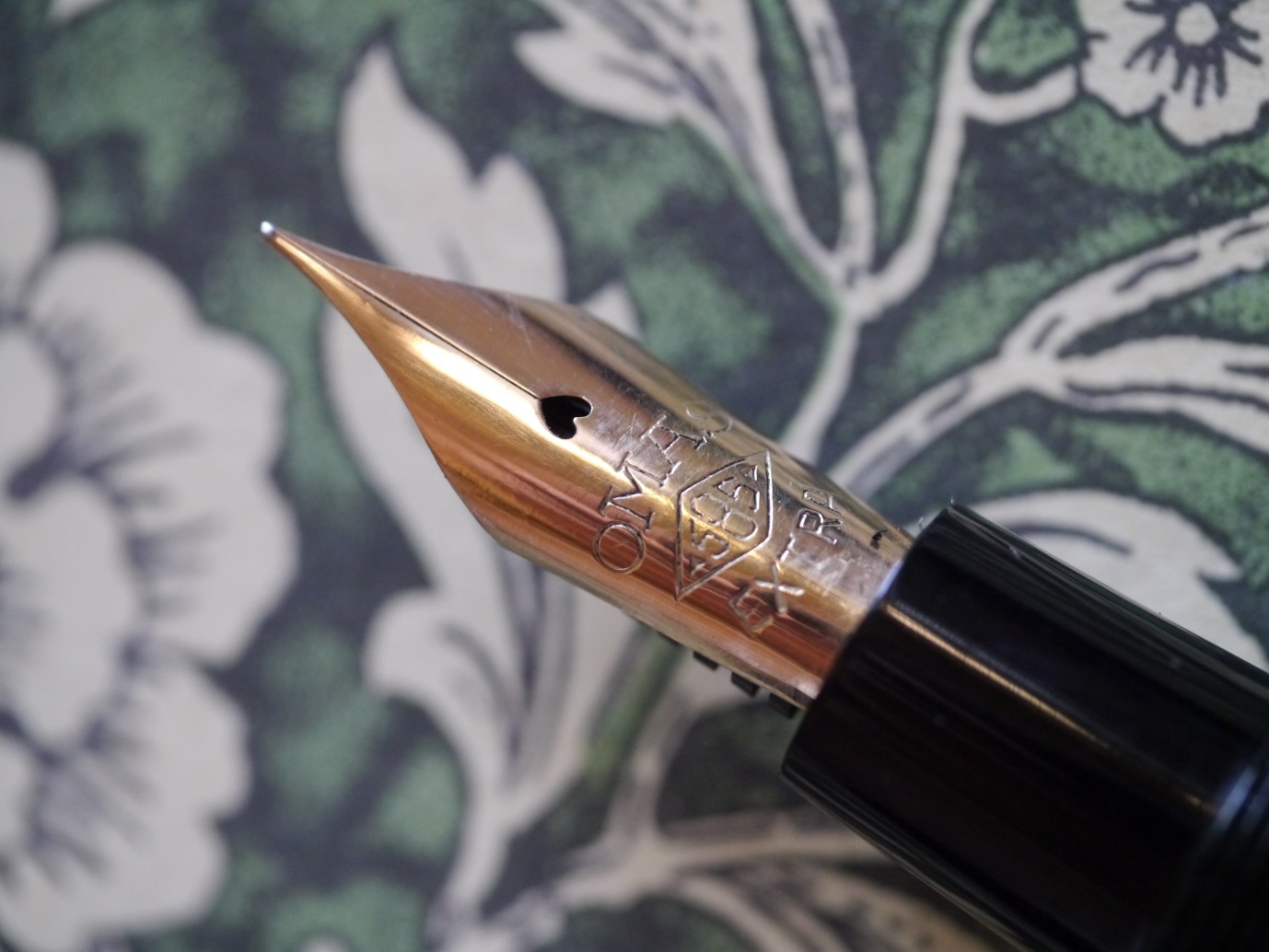 Entrambe hanno un pennino 585 Extra, molto fine, direi EF con lo sfiato a cuore.