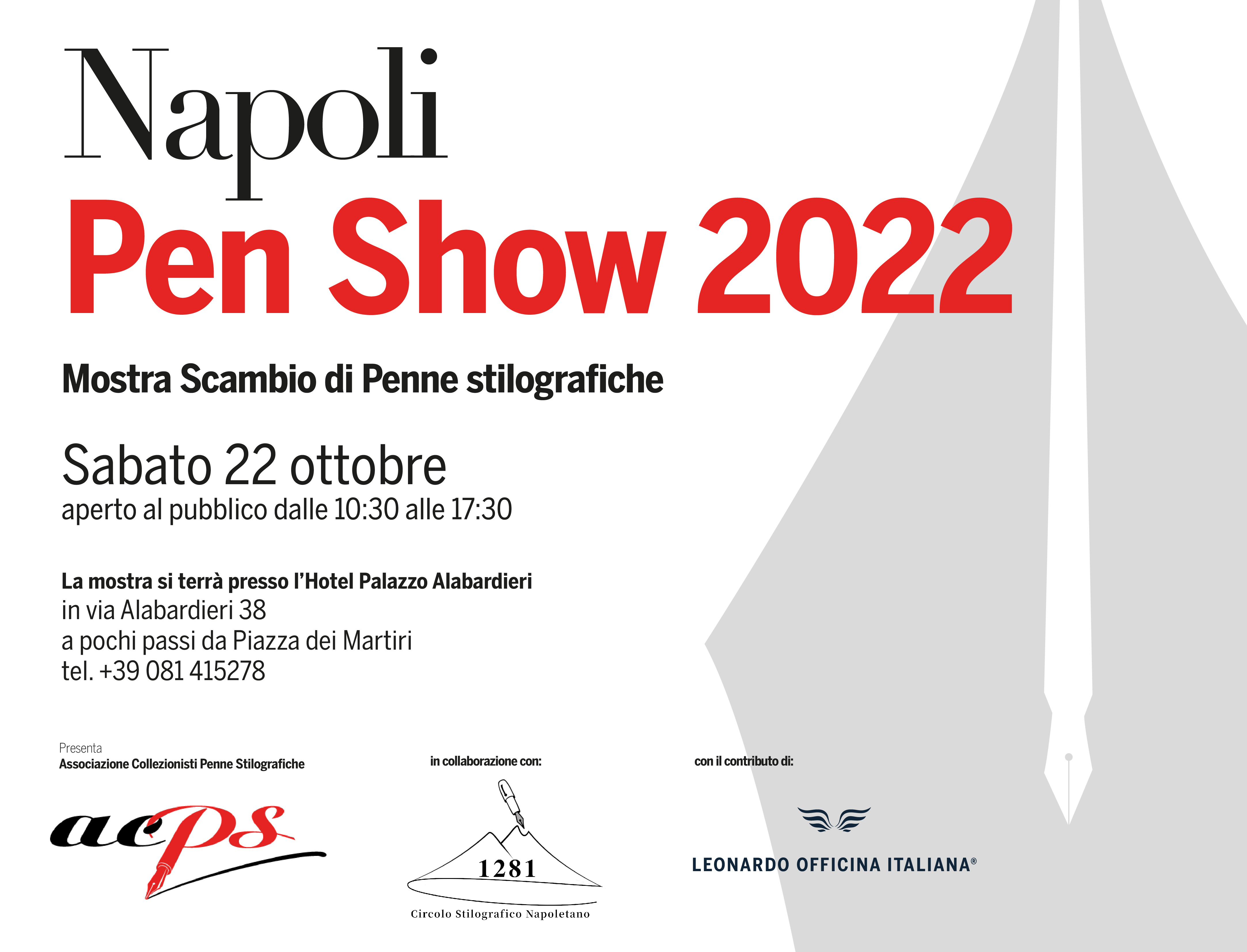 Riporto i dettagli inviati nella newsletter dell'Associazione Collezionisti Penne Stilografiche relativi allo svolgimento del Pen Show di Napoli.