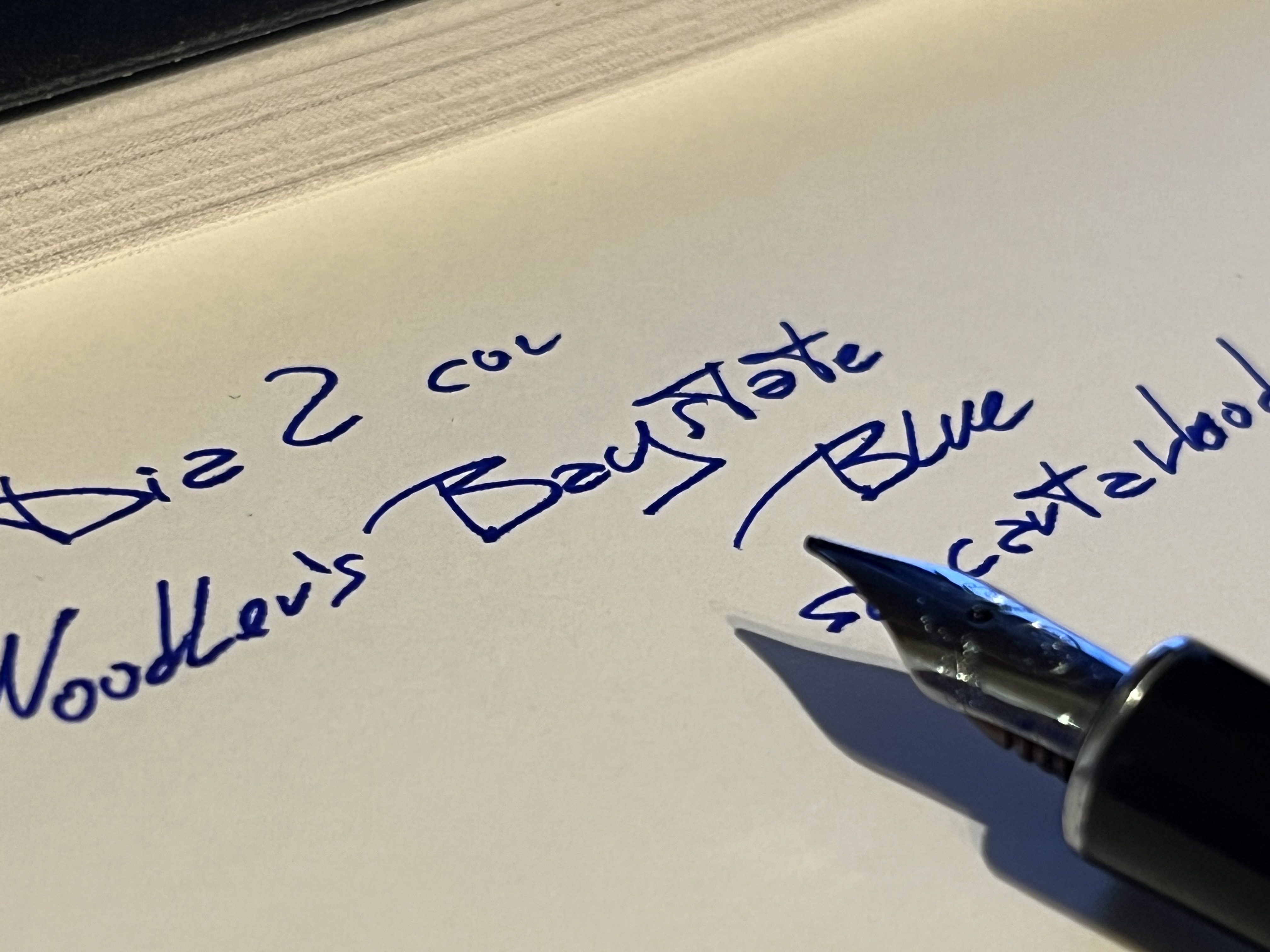 • Noodler's Baystate Blue: qui dimostra il suo peggio: spiuma, trapassa... ma sulla Dia 2 EF è perfetto. Il colore è unico, ma lo sappiamo tutti