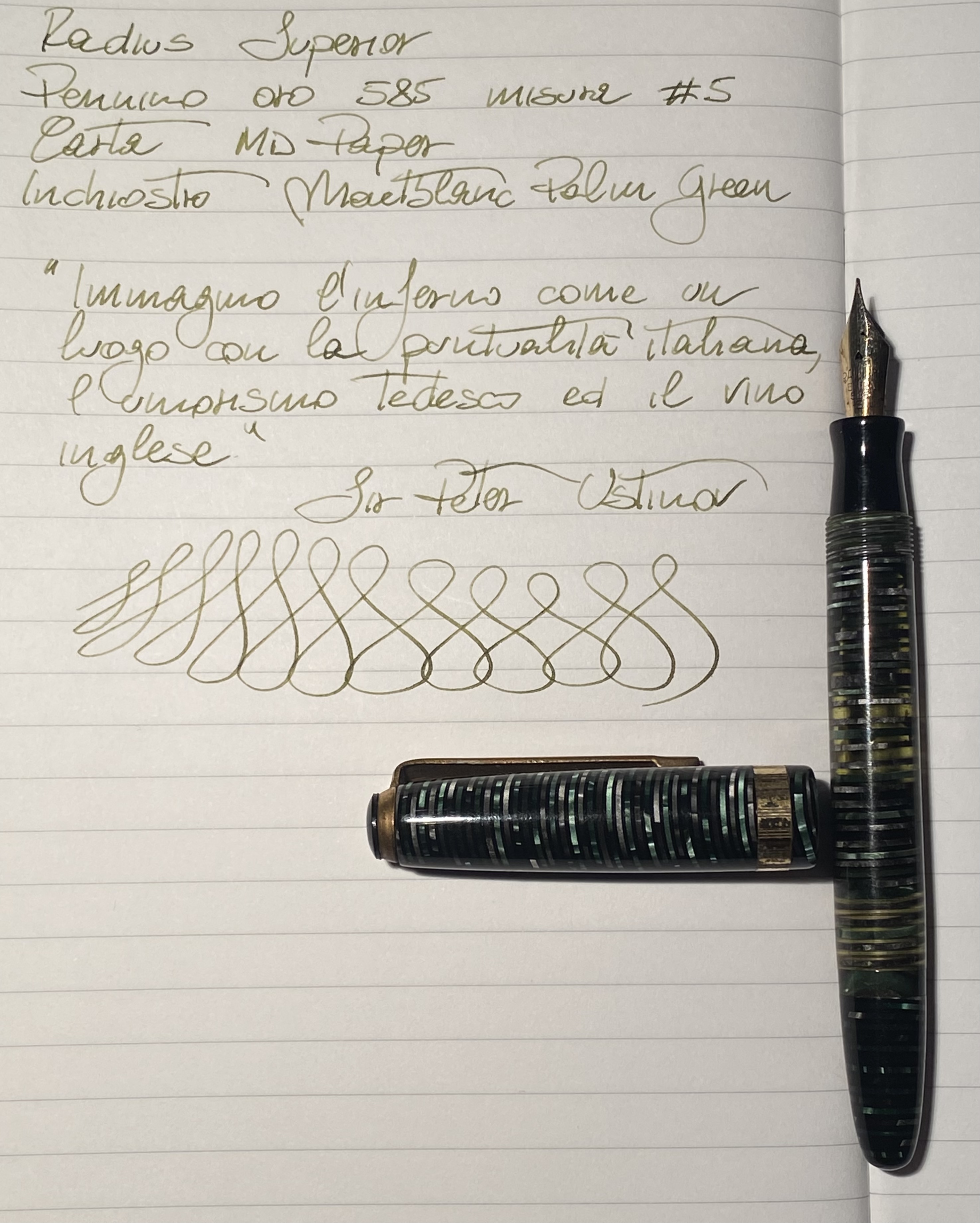 Il pennino devo dire che mi ha stupito: è più fine di quello che pensassi e meno flessibile di quello che credevo, ma…. gratta abbastanza, credo vada messo a punto perché a seconda dei movimenti i rebbi si disallineano… vabbè, ha i suoi anni.