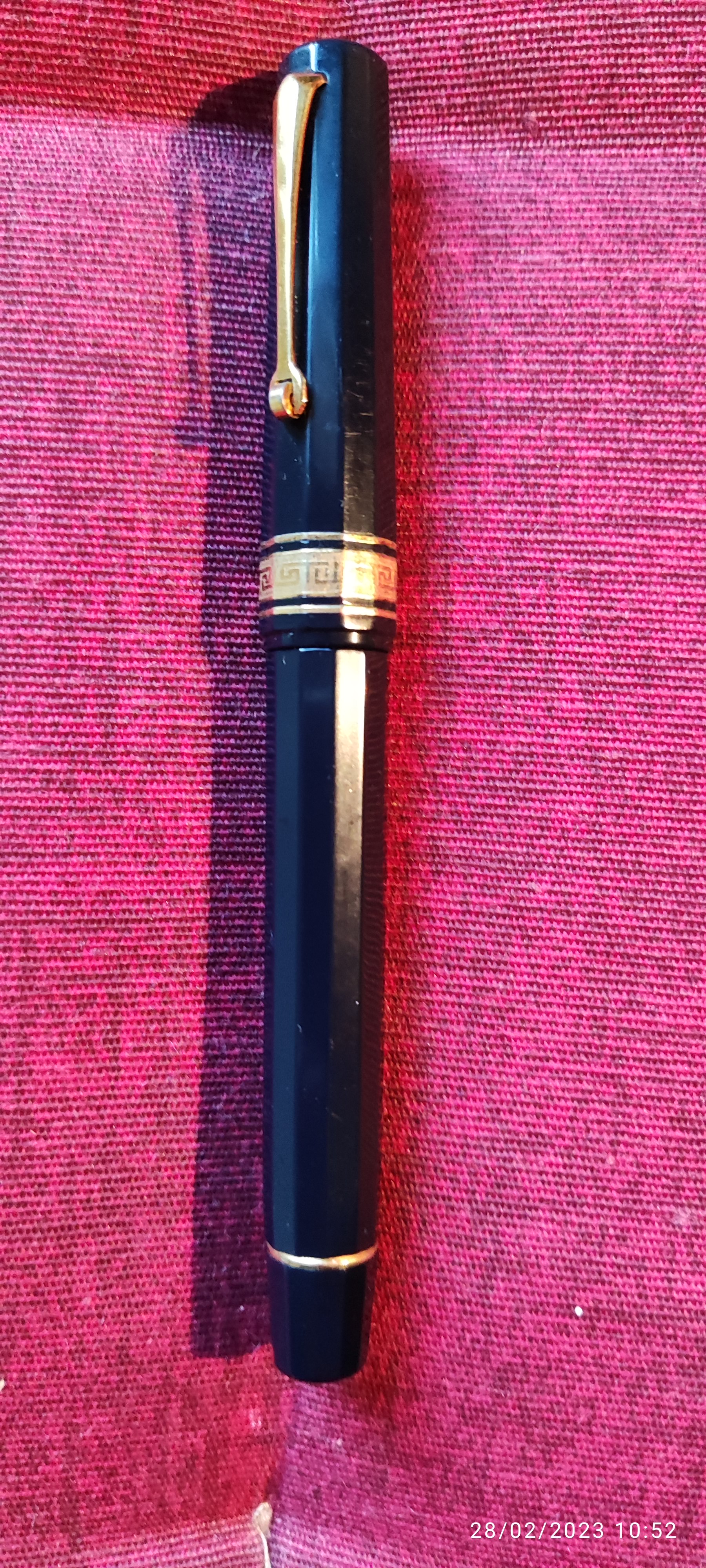 Buoingiorno a Tutti. Come da titolo, ho ritrovato questa stilo Omas in un cassetto pieno di cianfrusaglie. Ho letto parecchio su questo forum , ma non ho trovato una penna simile a questa per poterla individuare come modello. Ha il fusto ed il cappuccio dodecagonale, anello dorato con greche sul cappuccio e sul fusto, carica a stantuffo. Sul pennino dentro la losanga è riportato il num. 150. Il pennino potrebbe essere d'oro??