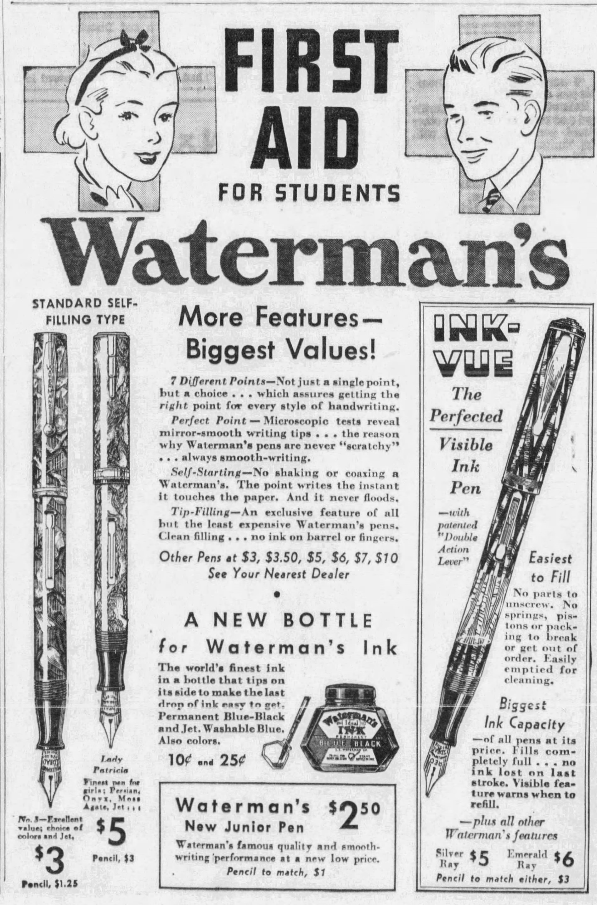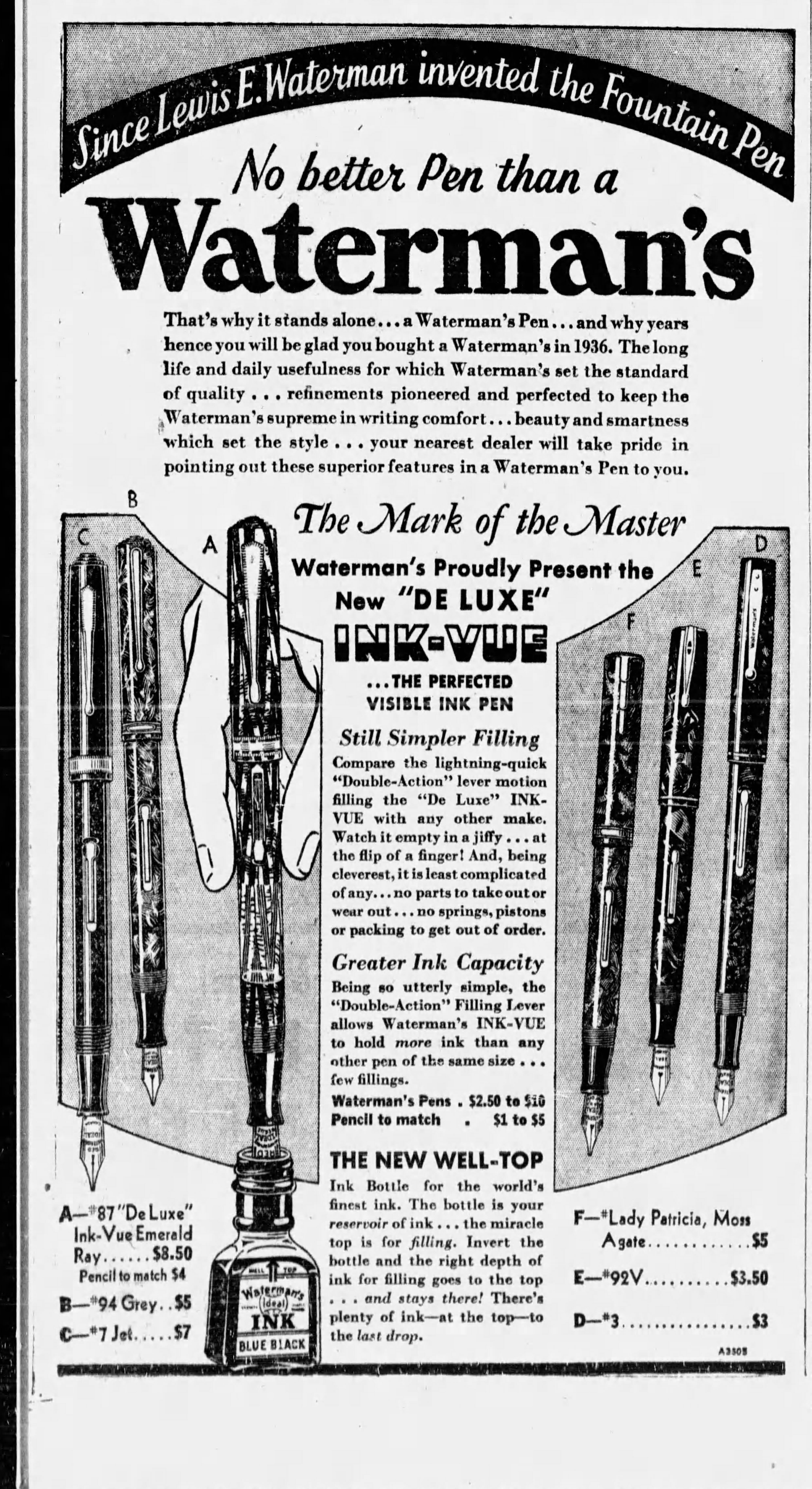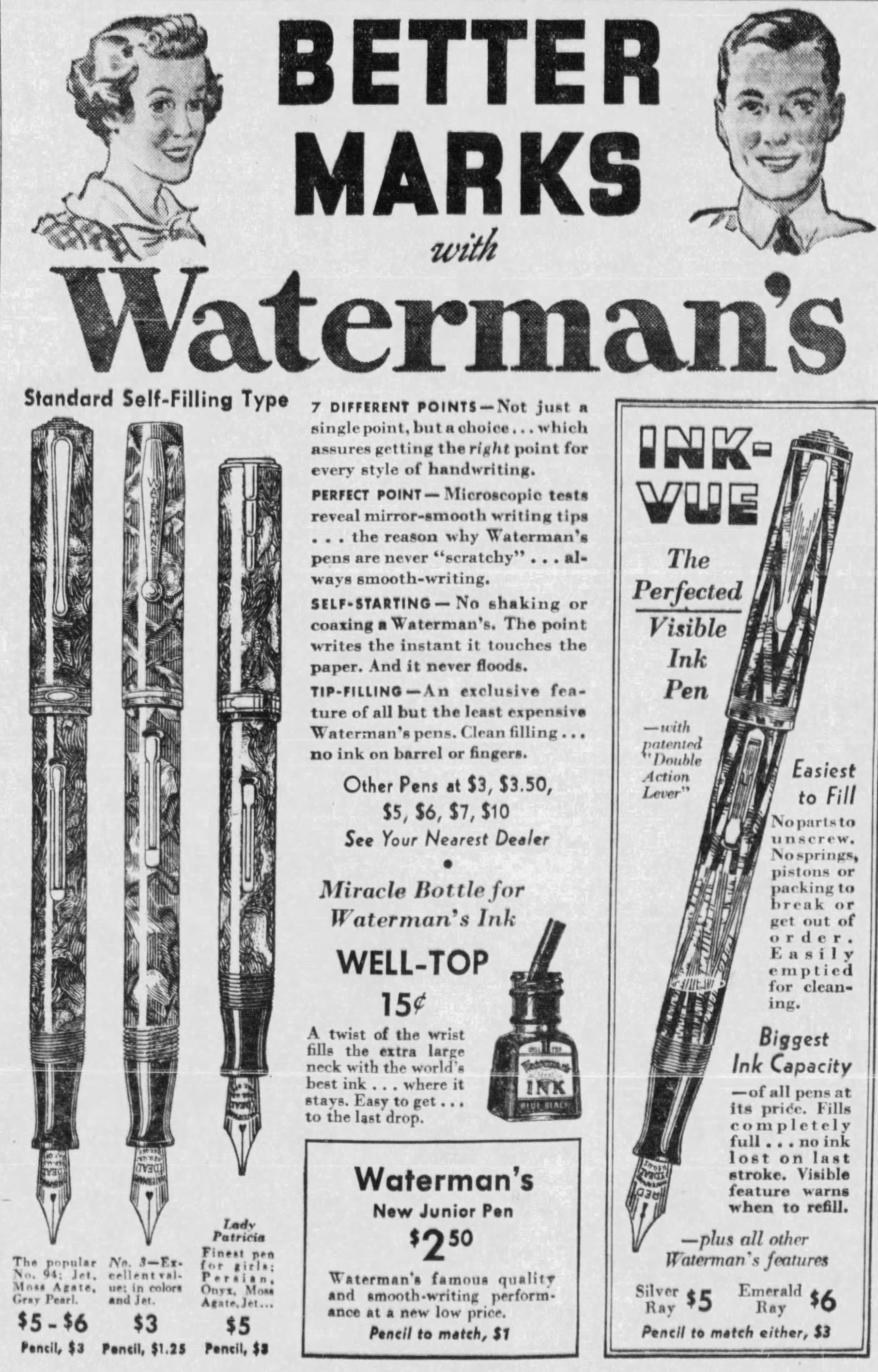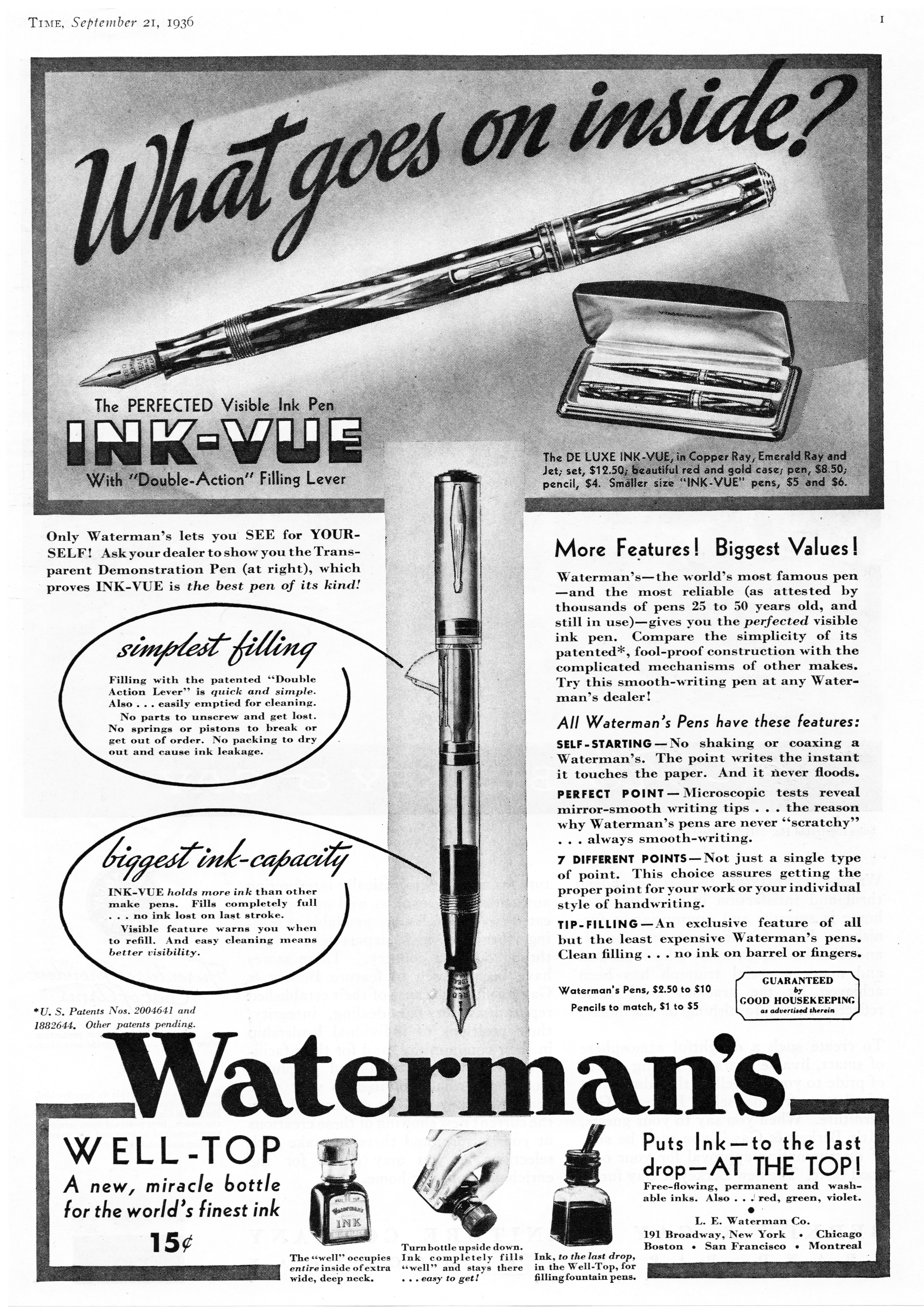 I) Lo stato dell’arte dei calamai Waterman’s negli USA nell’anno 1936
