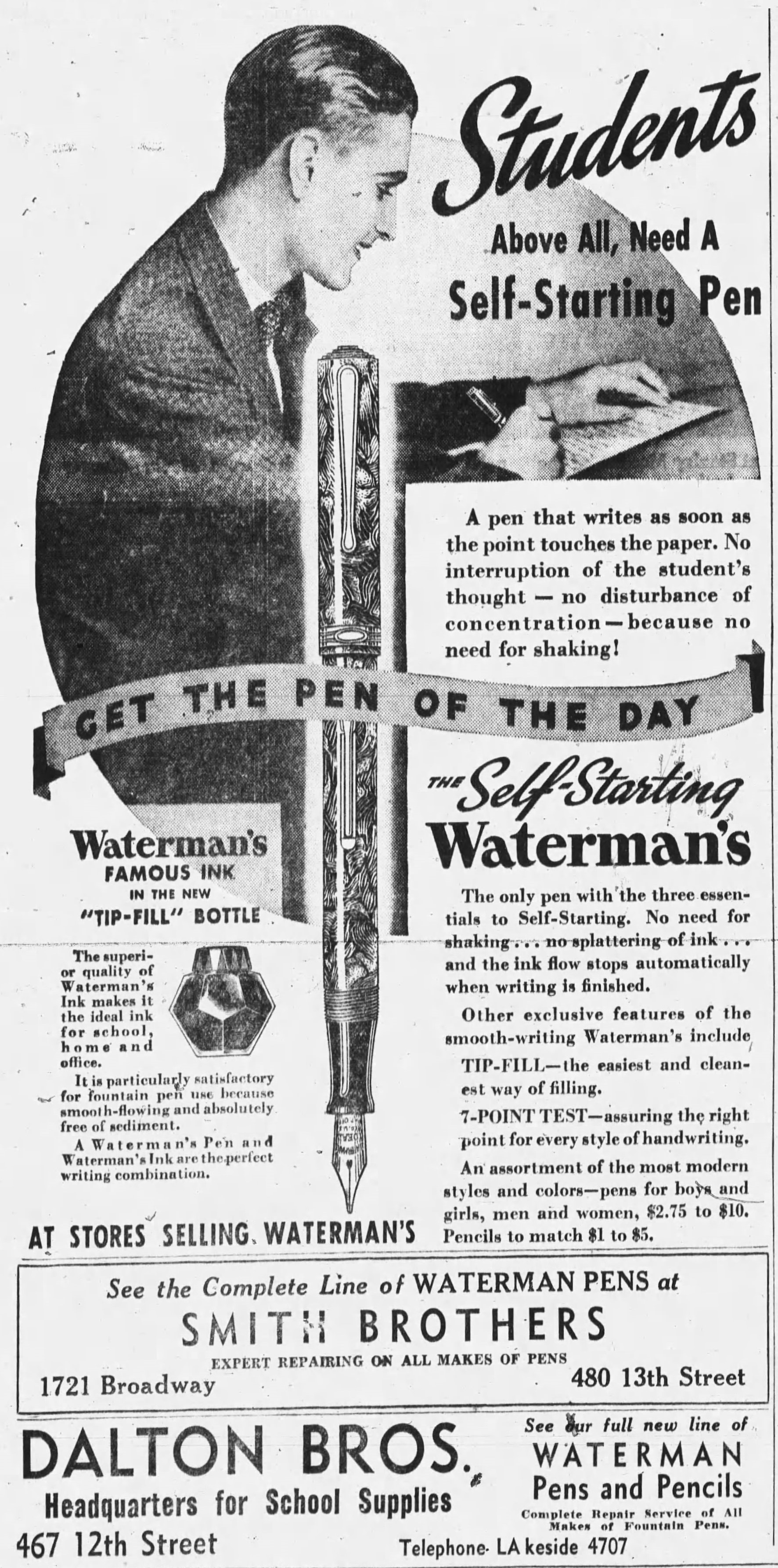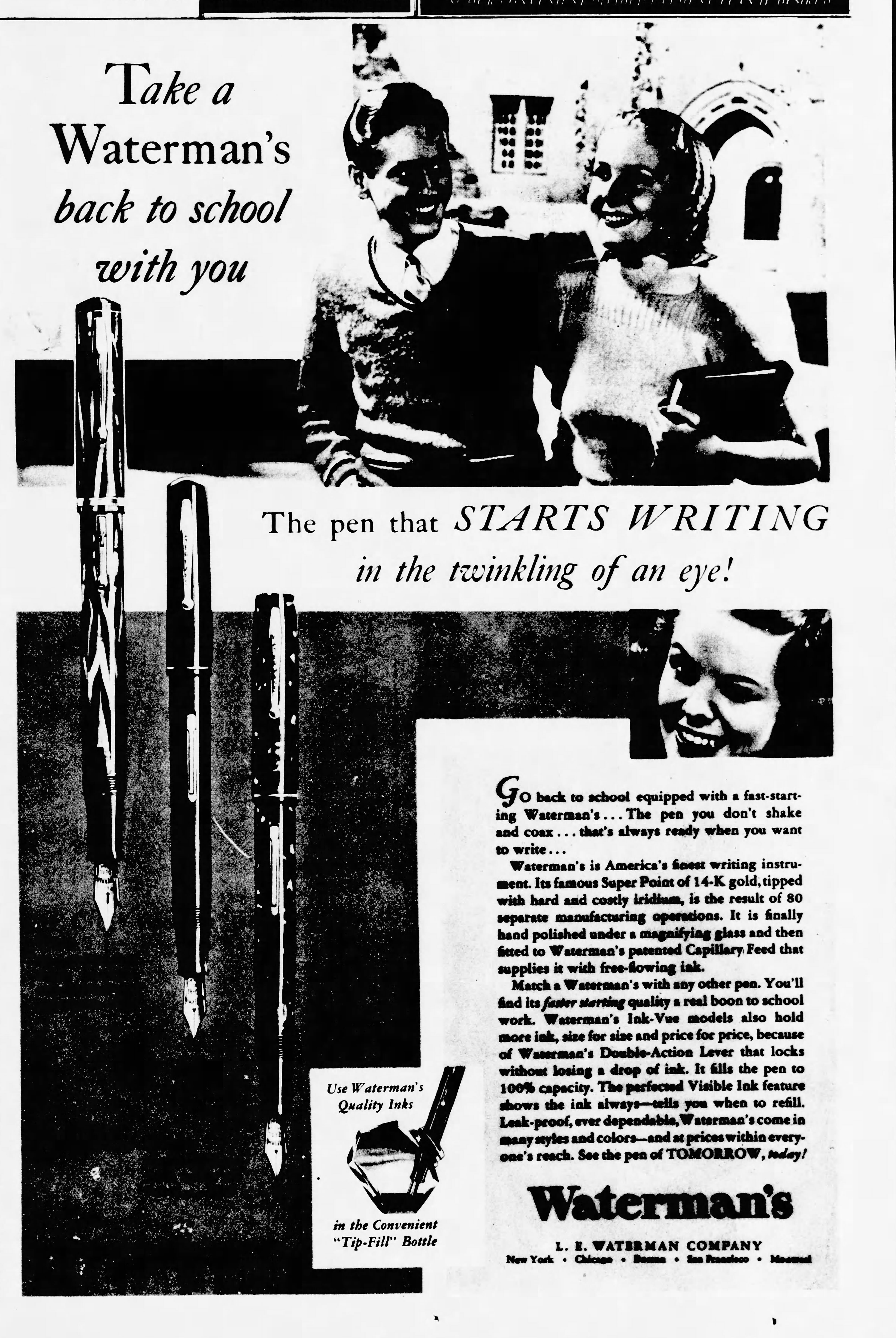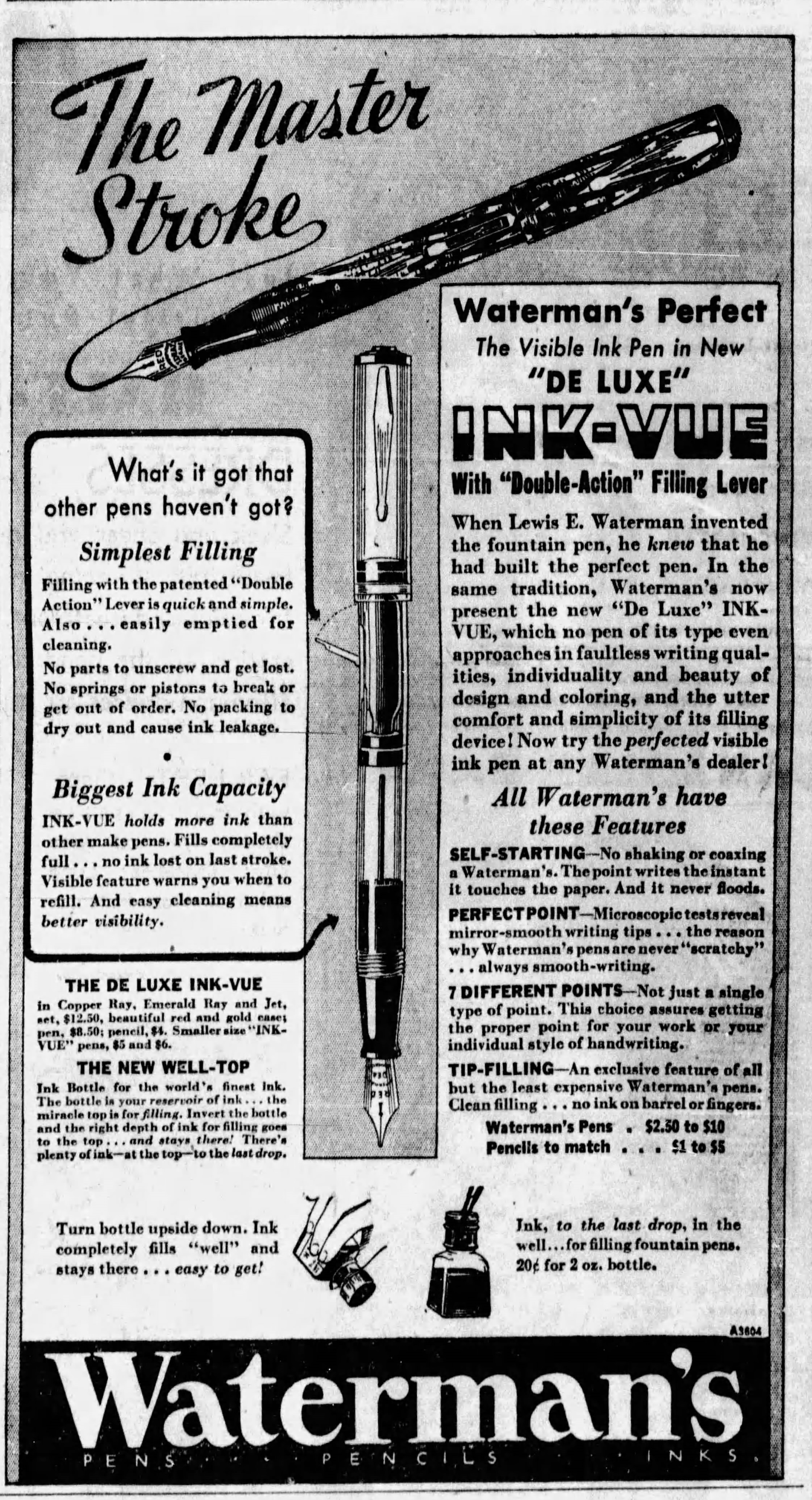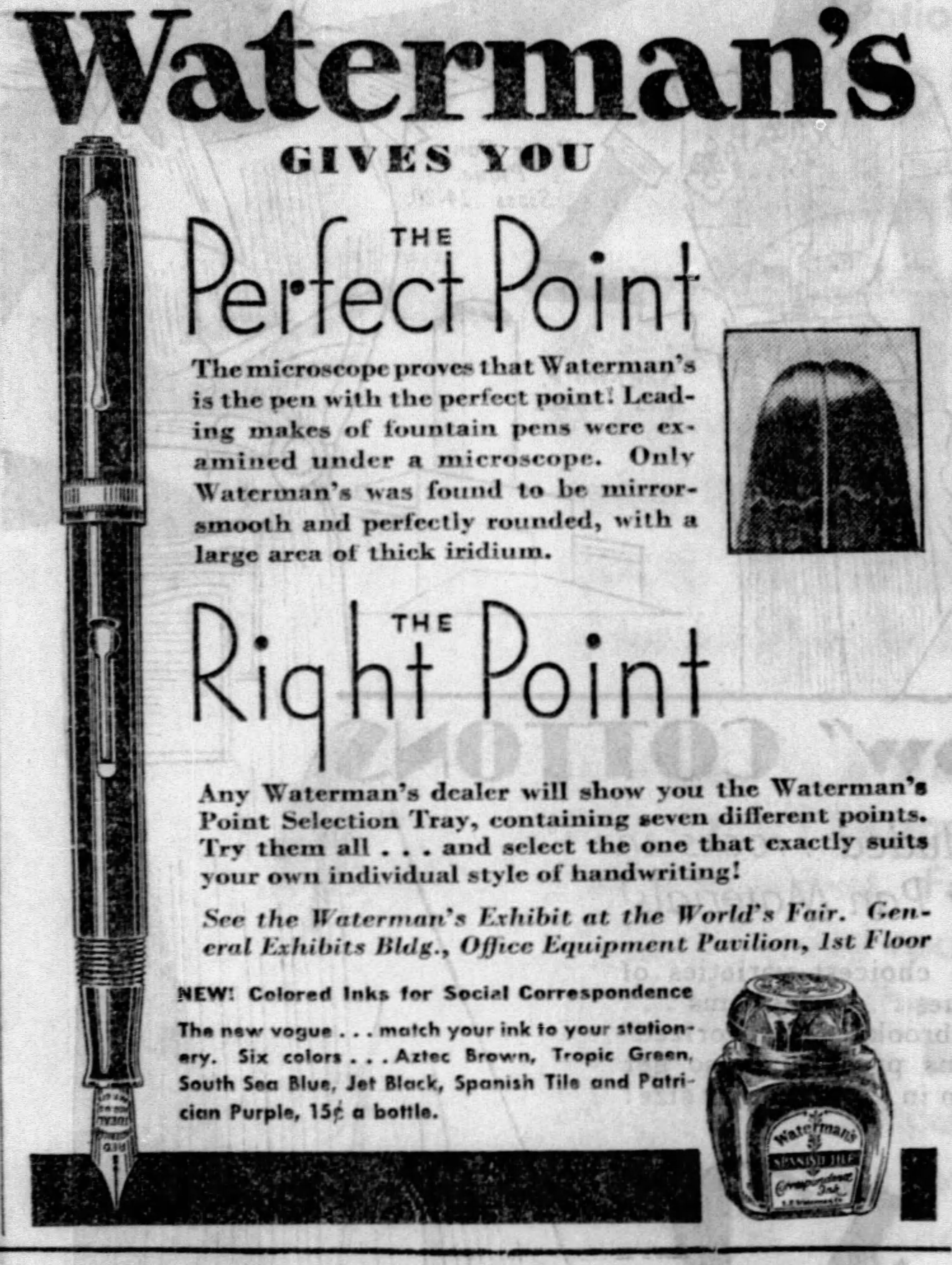 I) Lo stato dell’arte dei calamai Waterman’s negli USA nell’anno 1936