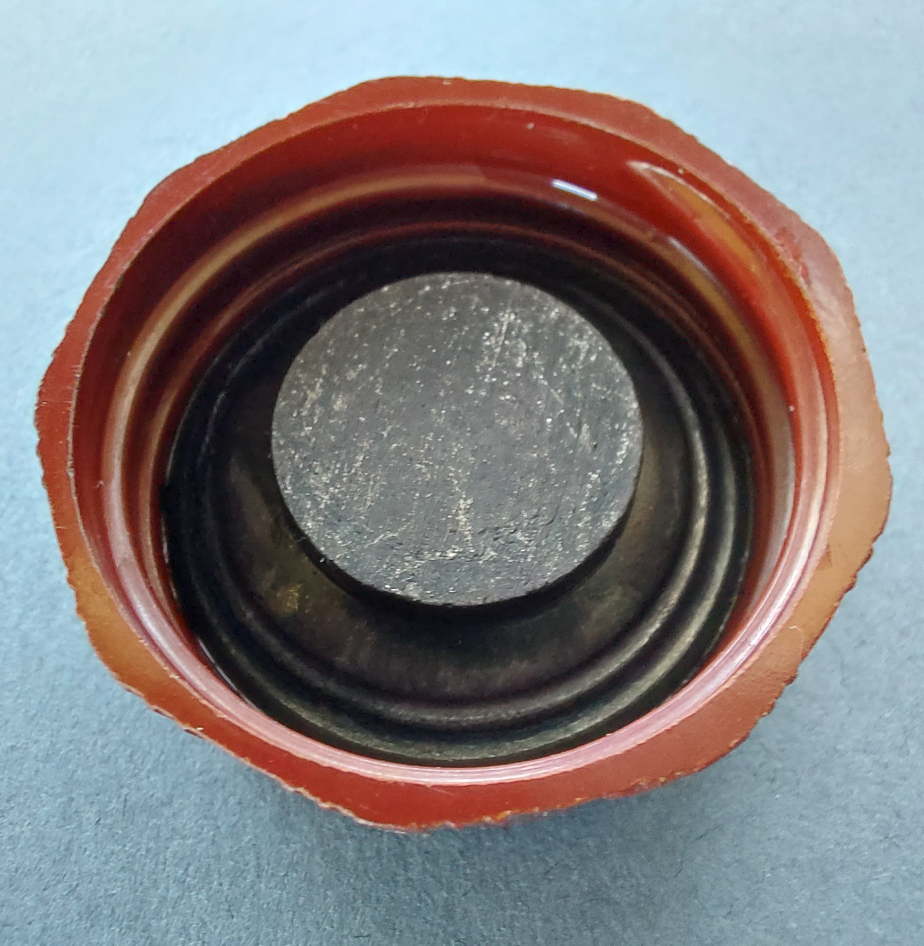 Dopo la definitiva fuoriuscita dai cataloghi americani delle penne eyedropper e delle safety (e perciò anche delle “pipette contagocce” loro dedicate e, conseguentemente dei caratteristici tappi che potevano comodamente alloggiarle in altezza, come quello visibile nell’immagine seguente tratta da una delle mie ultime recensioni) i tradizionali calamai cilindrici multiuso (da 2 e 4 once) continuarono comunque ad essere venduti richiusi con “tappi bassi” ancora fino alla seconda metà degli anni Trenta, ma come flaconi entry level, sotto la definizione di “Regular individual desk size containers” (contenitori standard individuali da tavolo).