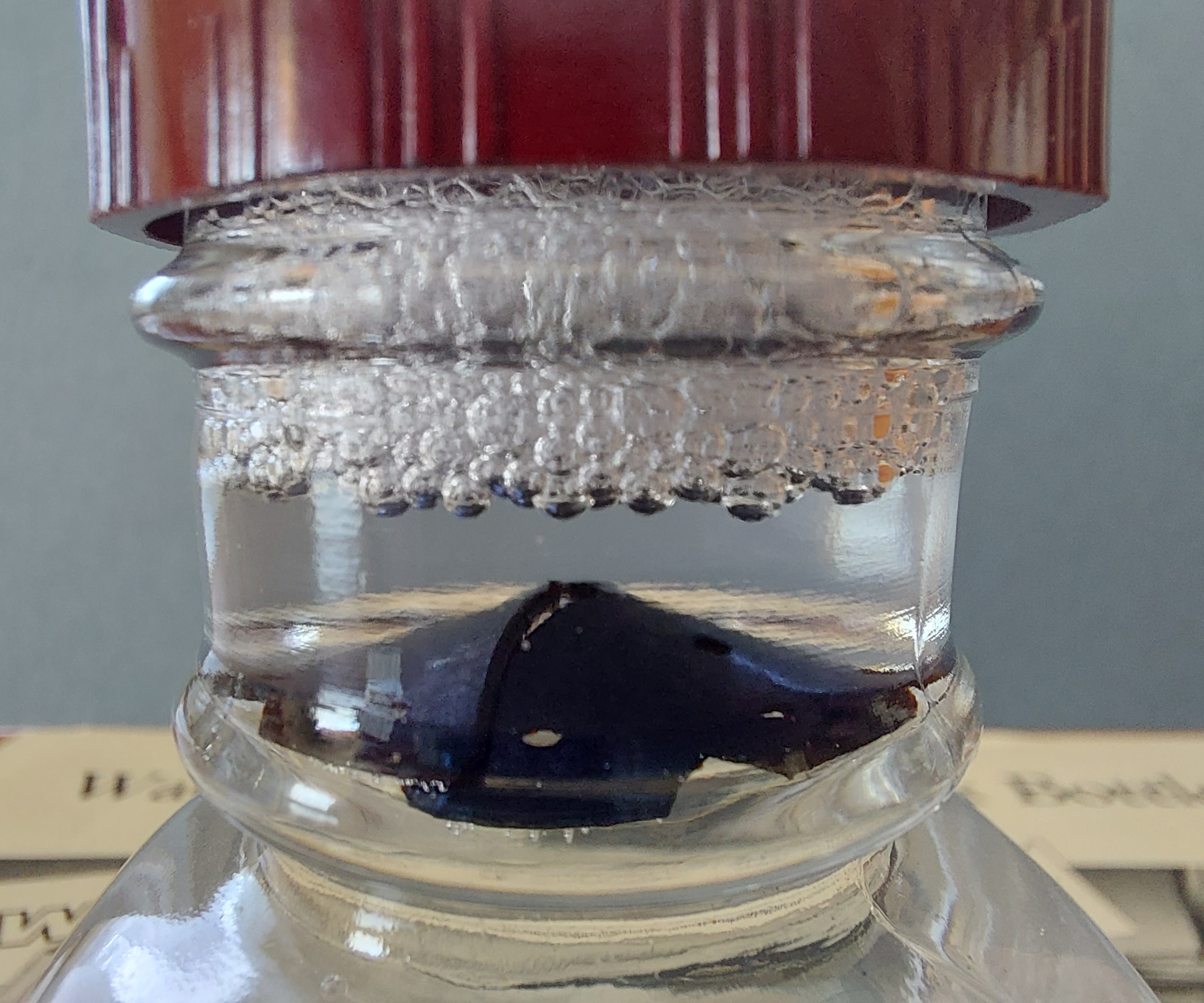 Il calamaio della concorrenza negli USA era dotato di una sorta di “tasca” in vetro e, effettivamente, sfruttava solo parte dell’imboccatura. Nel 1944, quando il flacone Waterman era già stato dismesso da anni, la Sheaffer arriverà perfino a denominare questo suo pratico ma “prosaico” sistema “Top Well”, ossia l’inverso del “Well-Top” di Waterman...