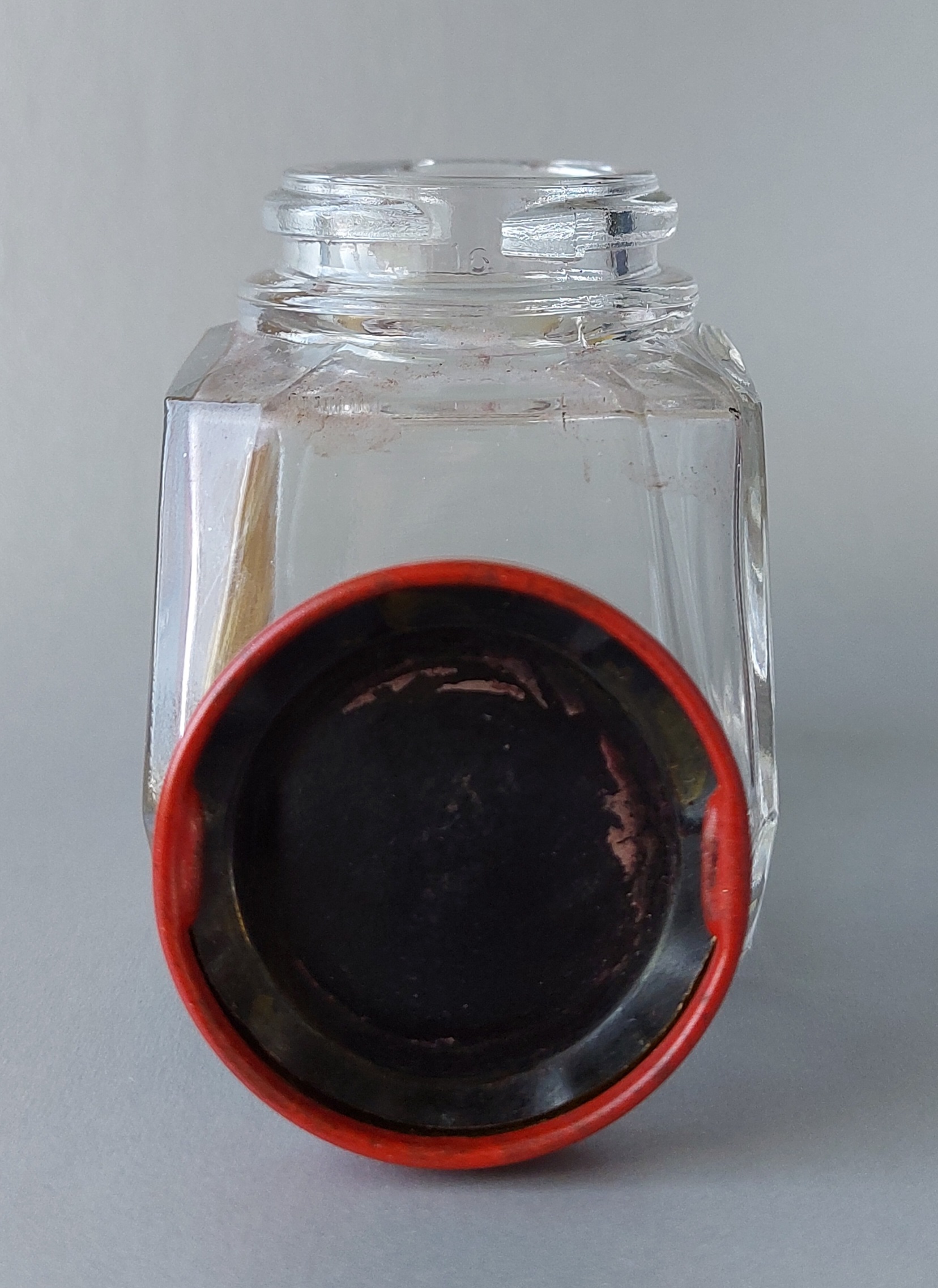 Quello che posso aggiungere personalmente all’interessante articolo citato è che alcune delle boccette successive alle primissime recano invece impresso il marchio di un’ancora, che è il trademark della più grande Compagnia (Anchor Hocking Glass Corporation) in cui dopo il 1938 era confluita la Capstan.