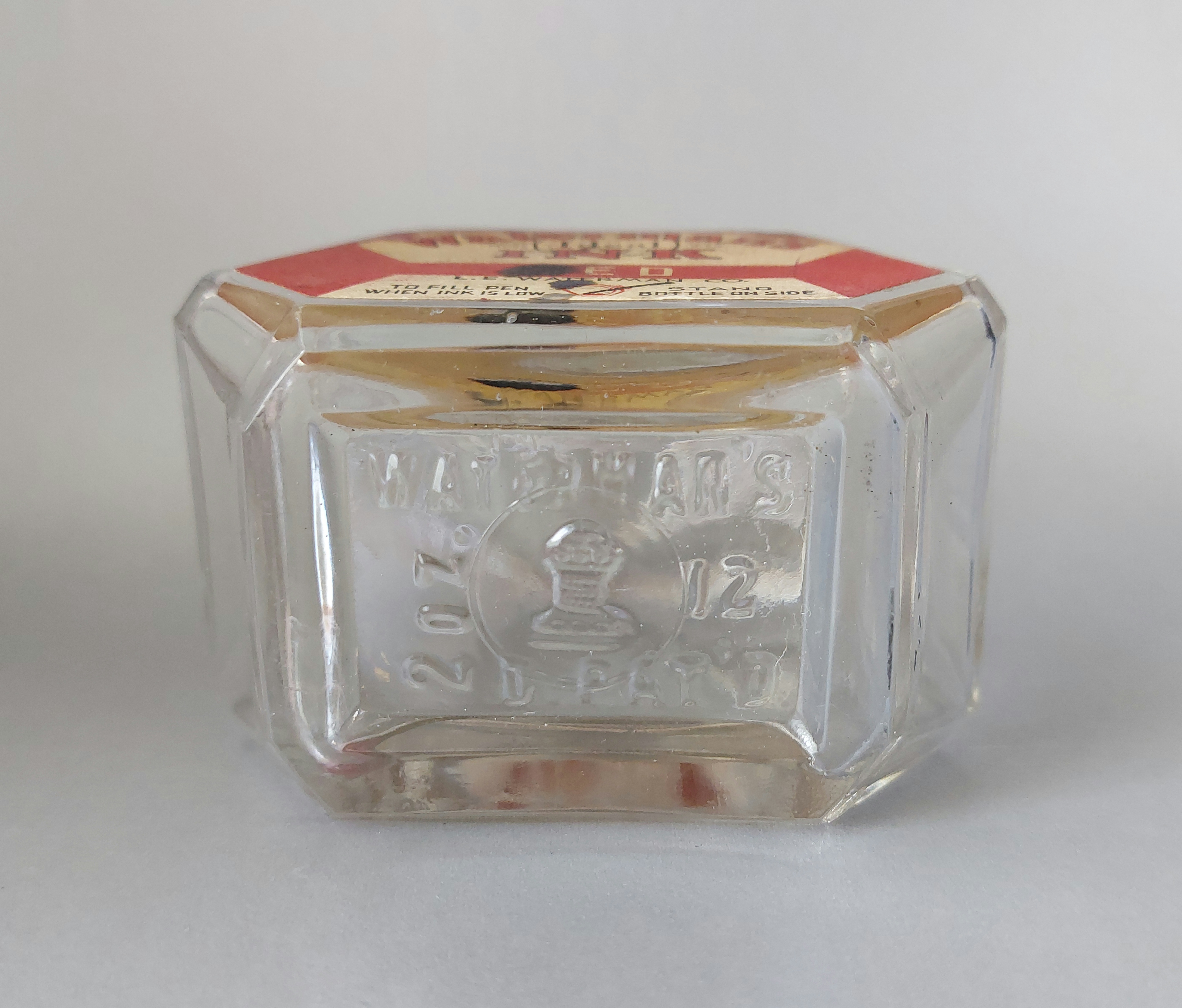 WATERMAN’S Inks: “TIP-FILL” BOTTLE (T.J. Piazzoli) — New York, 1936