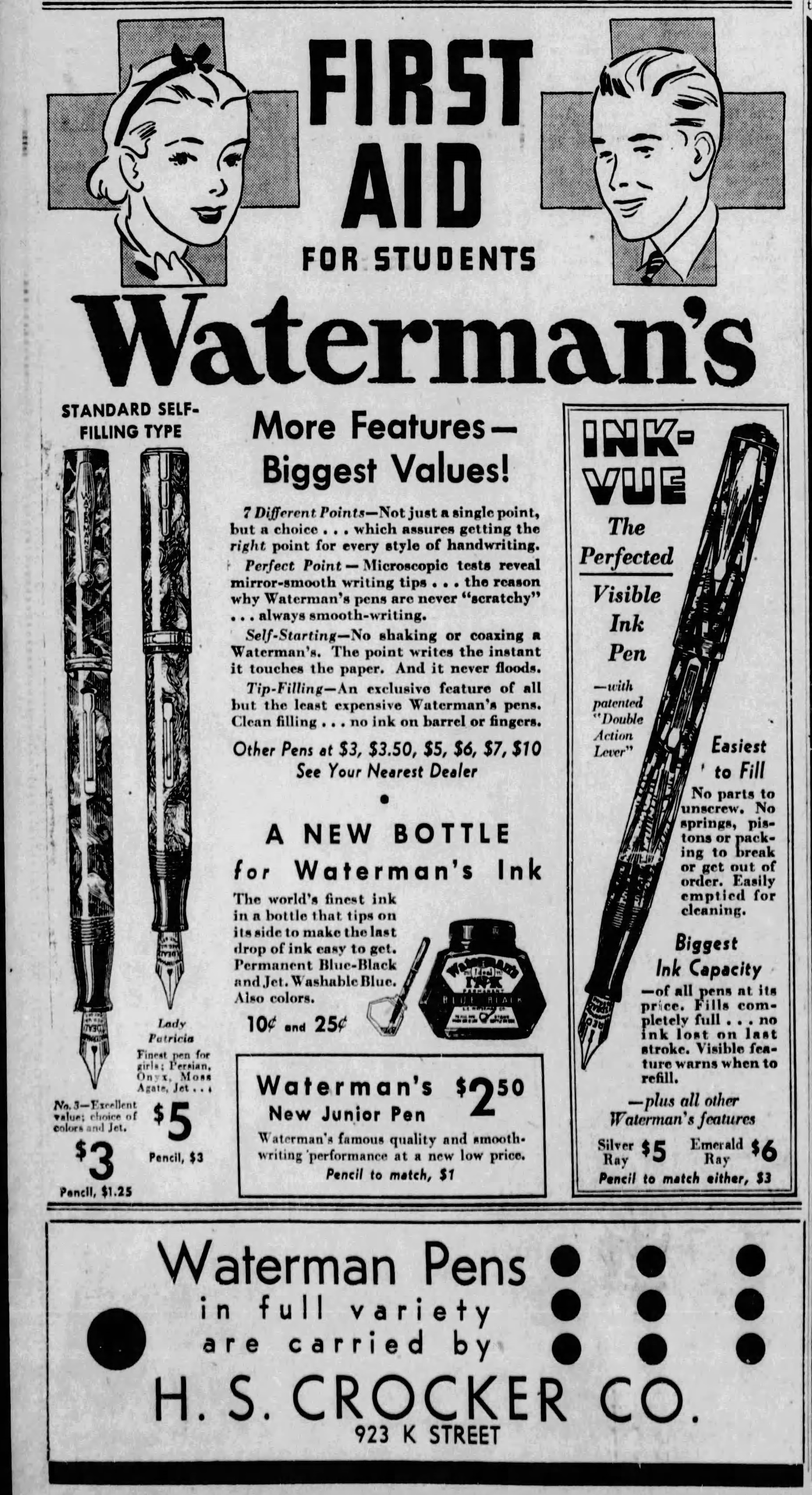 I) Lo stato dell’arte dei calamai Waterman’s negli USA nell’anno 1936