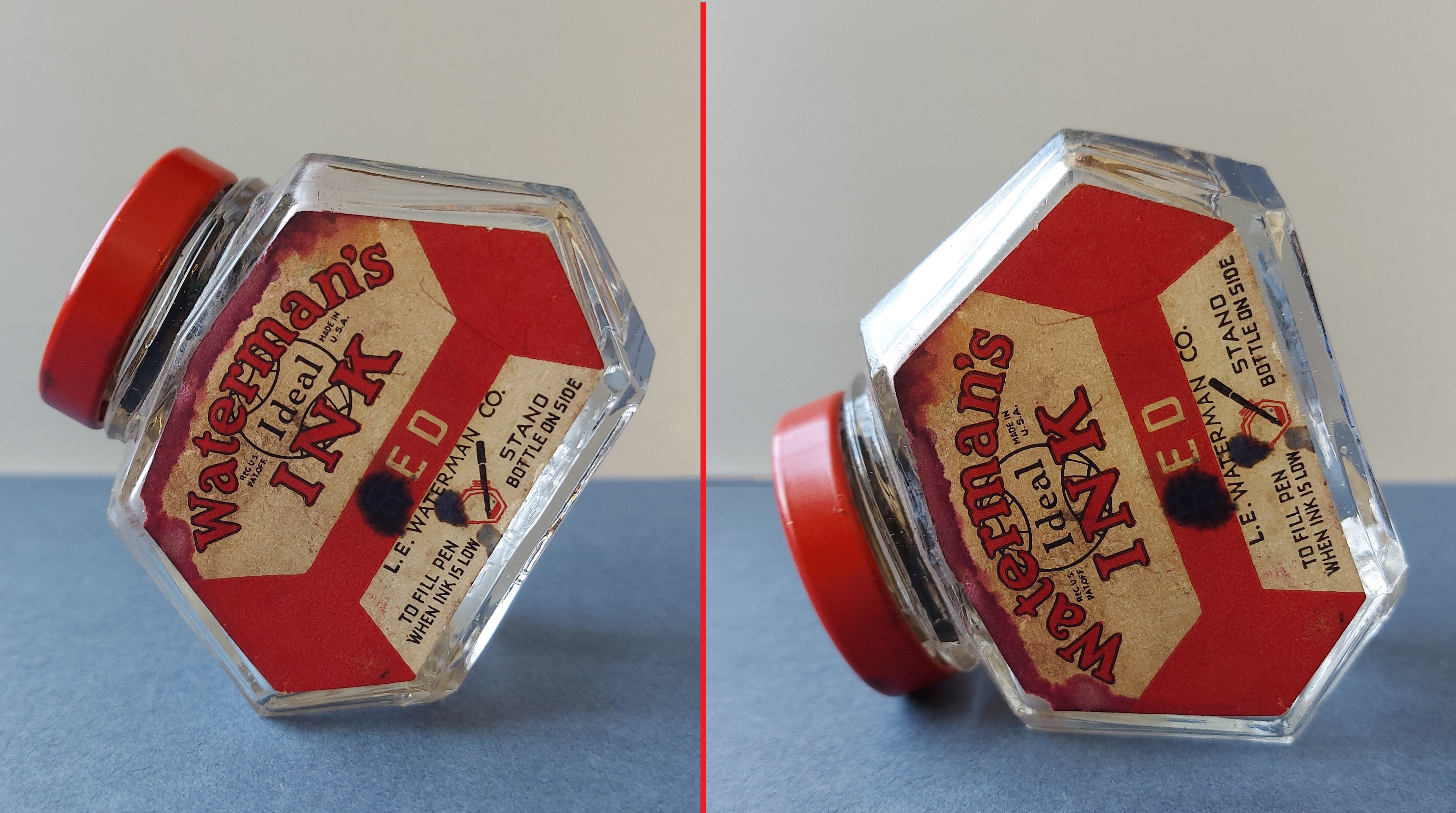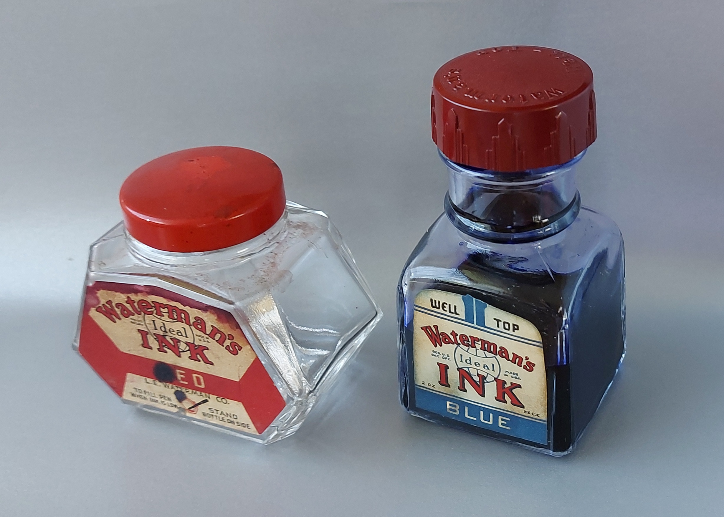 La situazione cambiò dal 1933, sicuramente anche in vista del cinquantesimo anniversario di attività della Casa (1884-1934), e nel 1936, per promuovere più efficacemente la vendita dei quattro nuovi flaconi di inchiostro mostrati in apertura (stilisticamente tutti così pienamente quanto irresistibilmente Art Déco), il marketing della Waterman decise di presentarli come dotati di “special features” (caratteristiche speciali), non solo evidentemente per il design, ma anche per il tipo di impiego per essi suggerito.