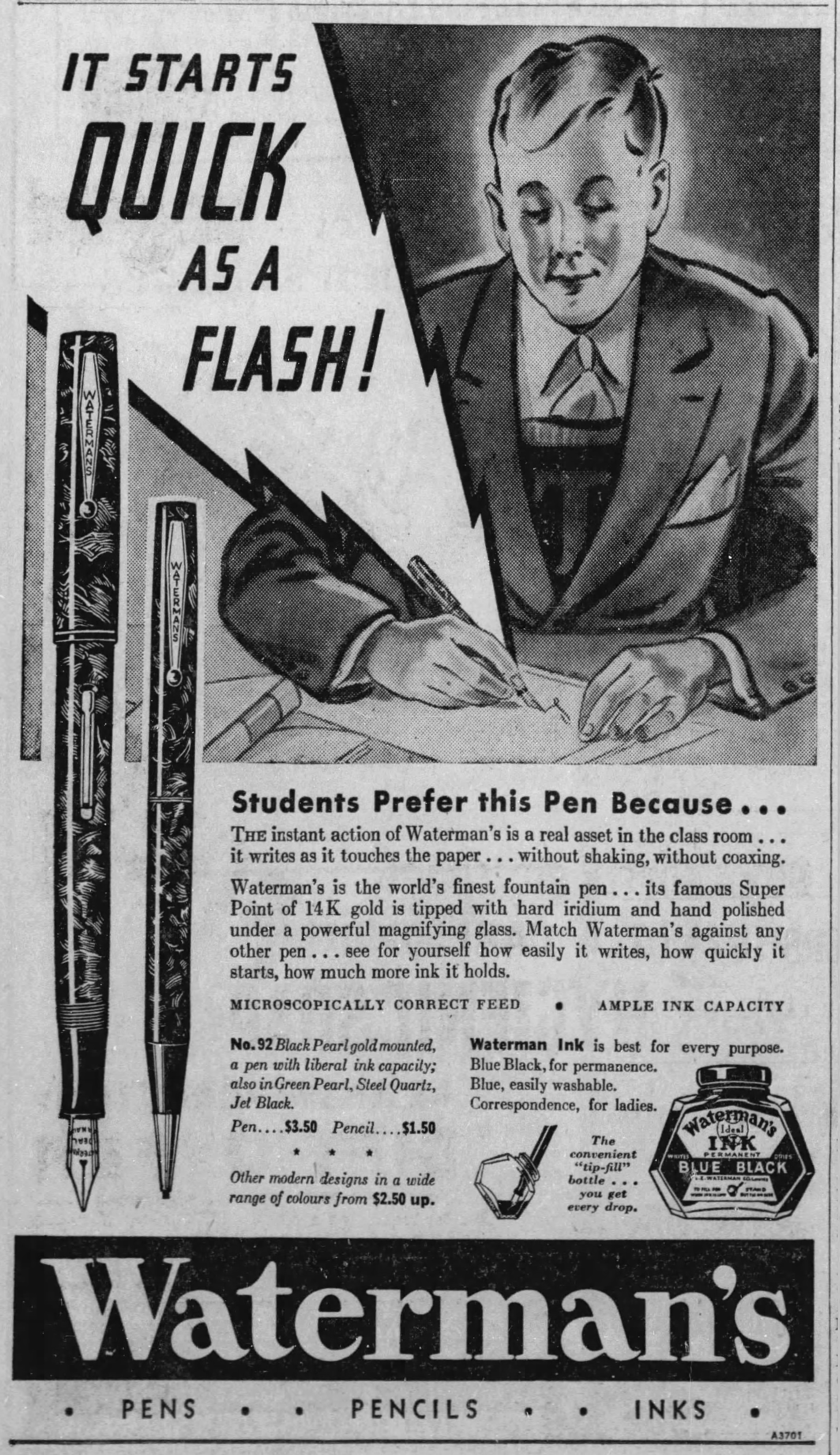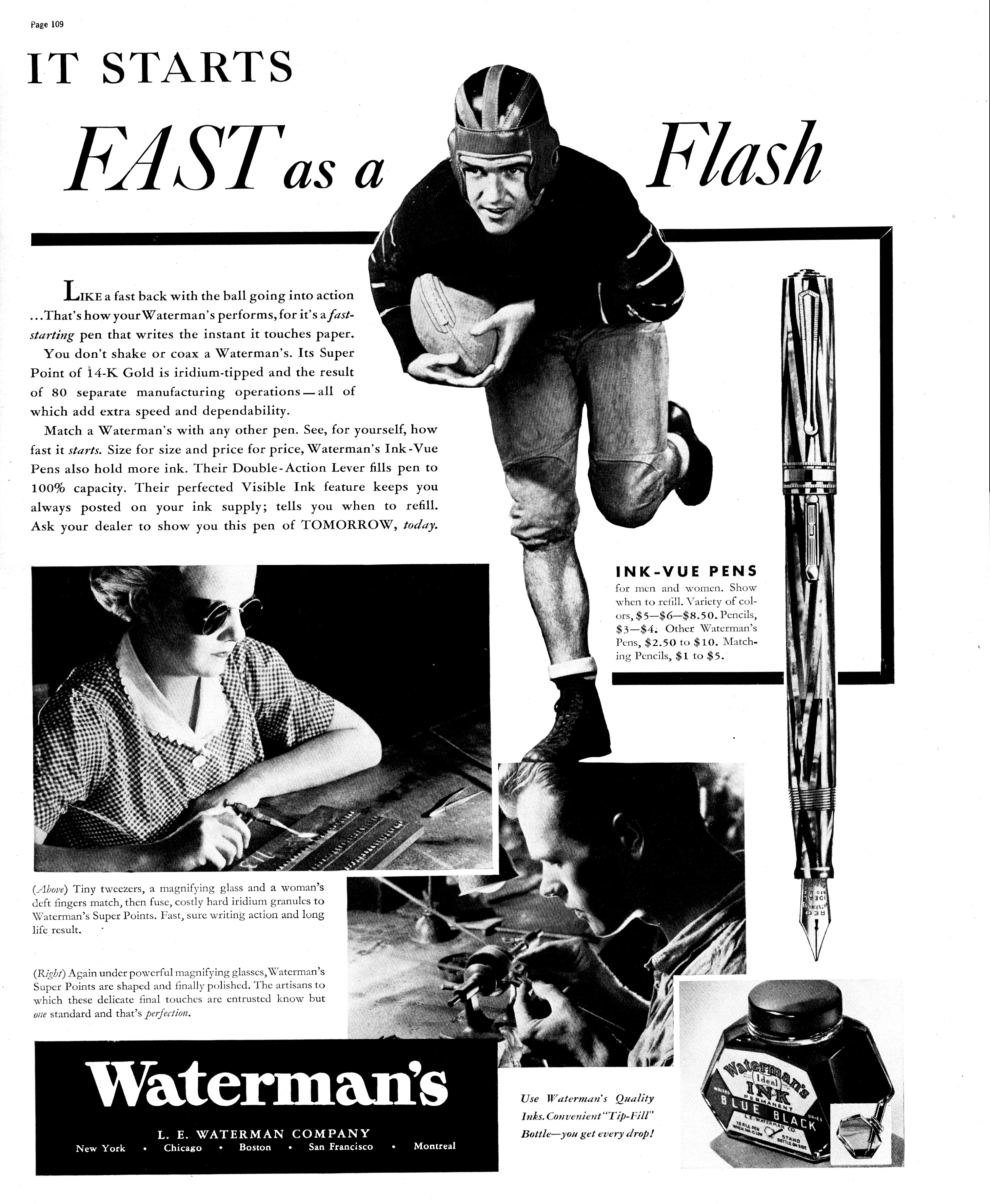 Lo stato dell’arte dei calamai Waterman’s negli USA nell’anno 1936
