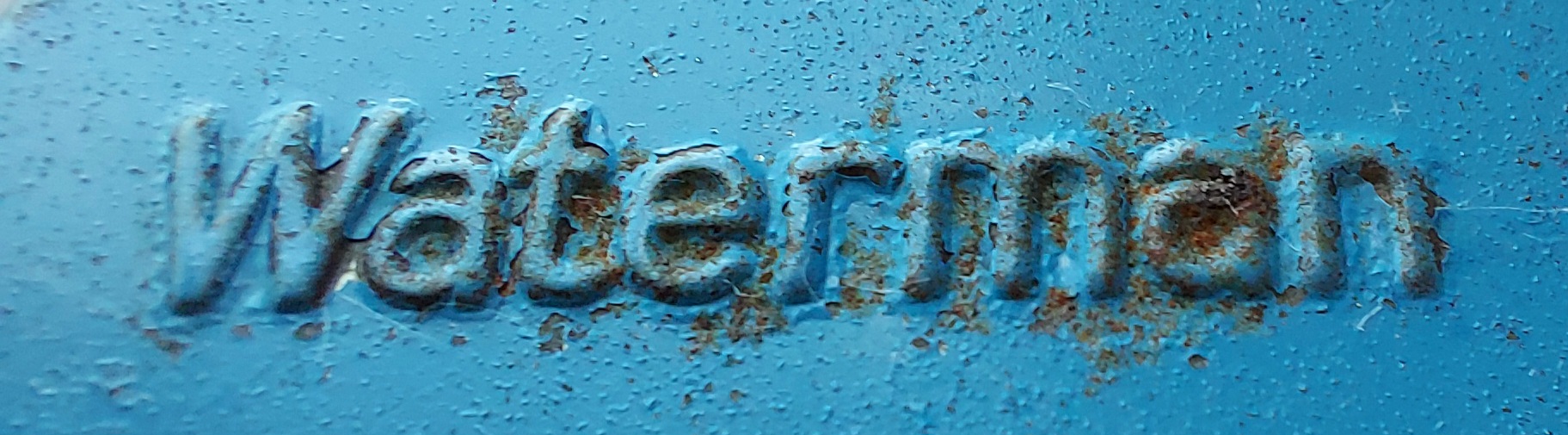 3• tappo Nome della Marca Waterman (senza la <s>, alla francese, ma non anche del Produttore “JiF”) in stampatello minuscolo, a rilievo.