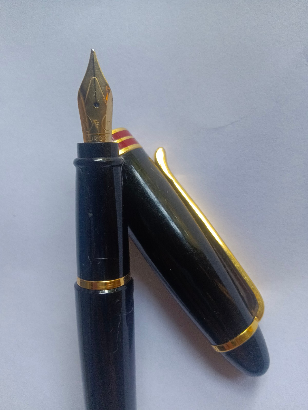 La penna contiene una cartuccia Aurora King blue già inserita, dovrò fare una buona pulizia e capire se l'inchiostro si è seccato nel pennino.