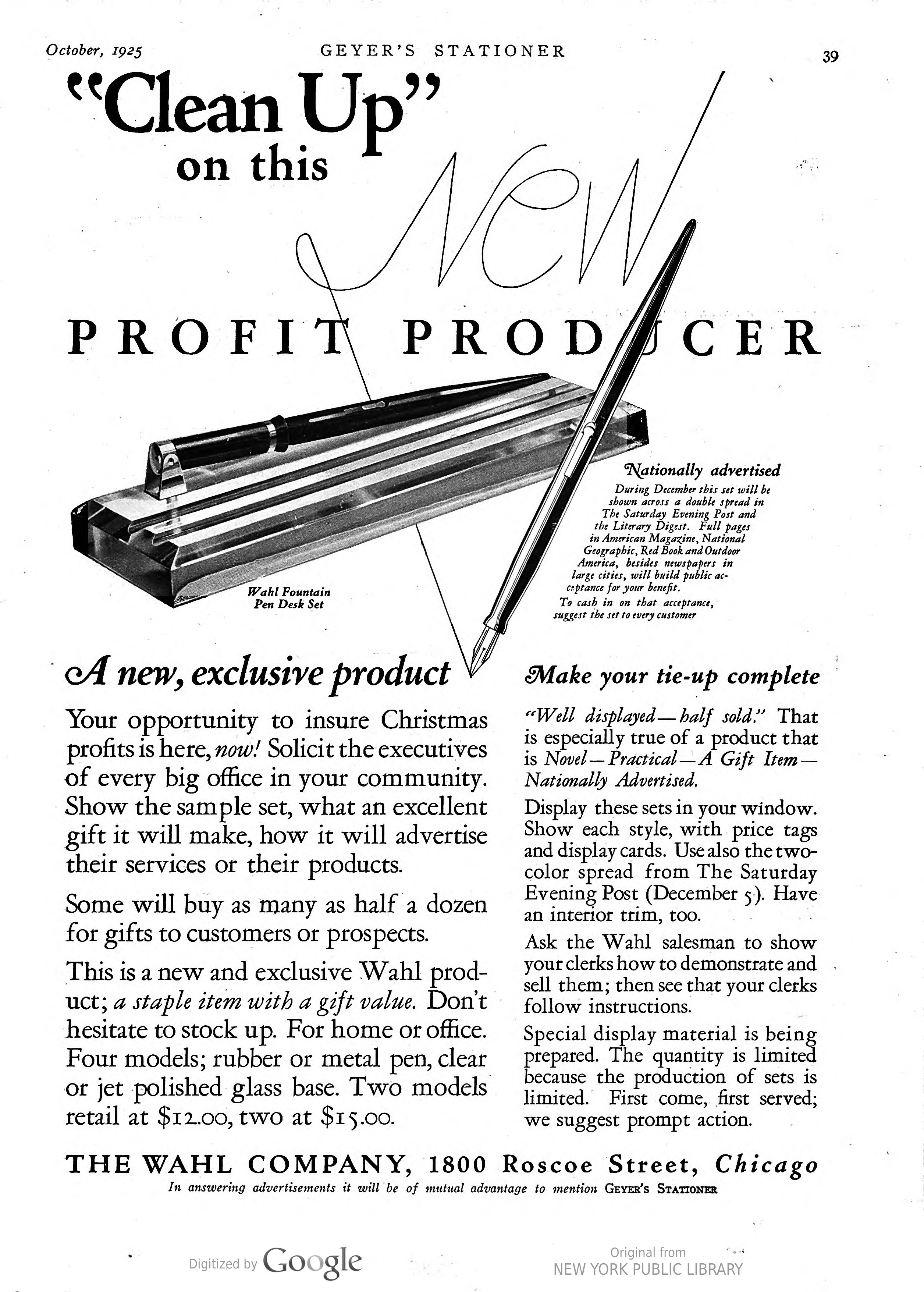 Wahl Fountain Pen Desk Set No. 2
