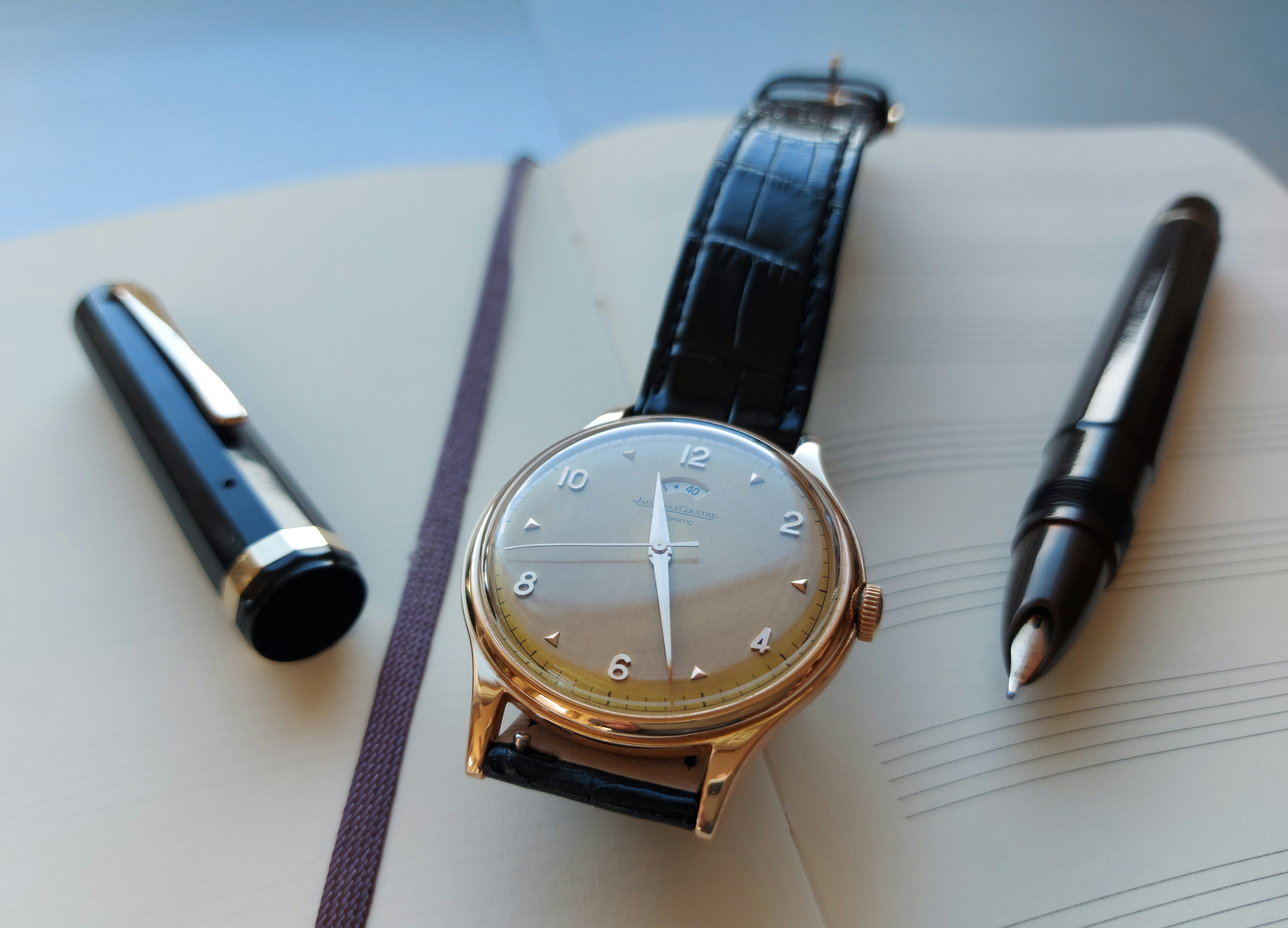 Qualche tempo fa ho deciso di procurarmi una penna particolare, che potesse far degna compagnia sotto il profilo sia storico che stilistico a quello tra i miei orologi cui tengo di più: Jaeger-LeCoultre “Powermatic” oro rosa,
