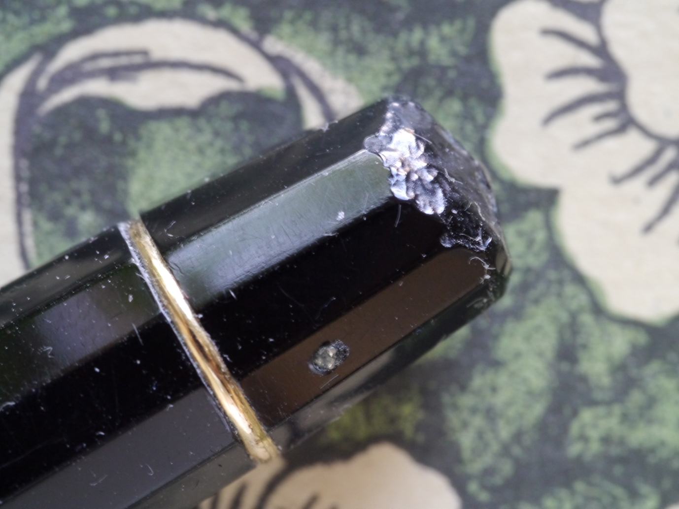 Come si vede qui, purtroppo il cappuccetto che copre il pennino è crepato (mi vien da immaginare, dal fare burbero di mio nonno)