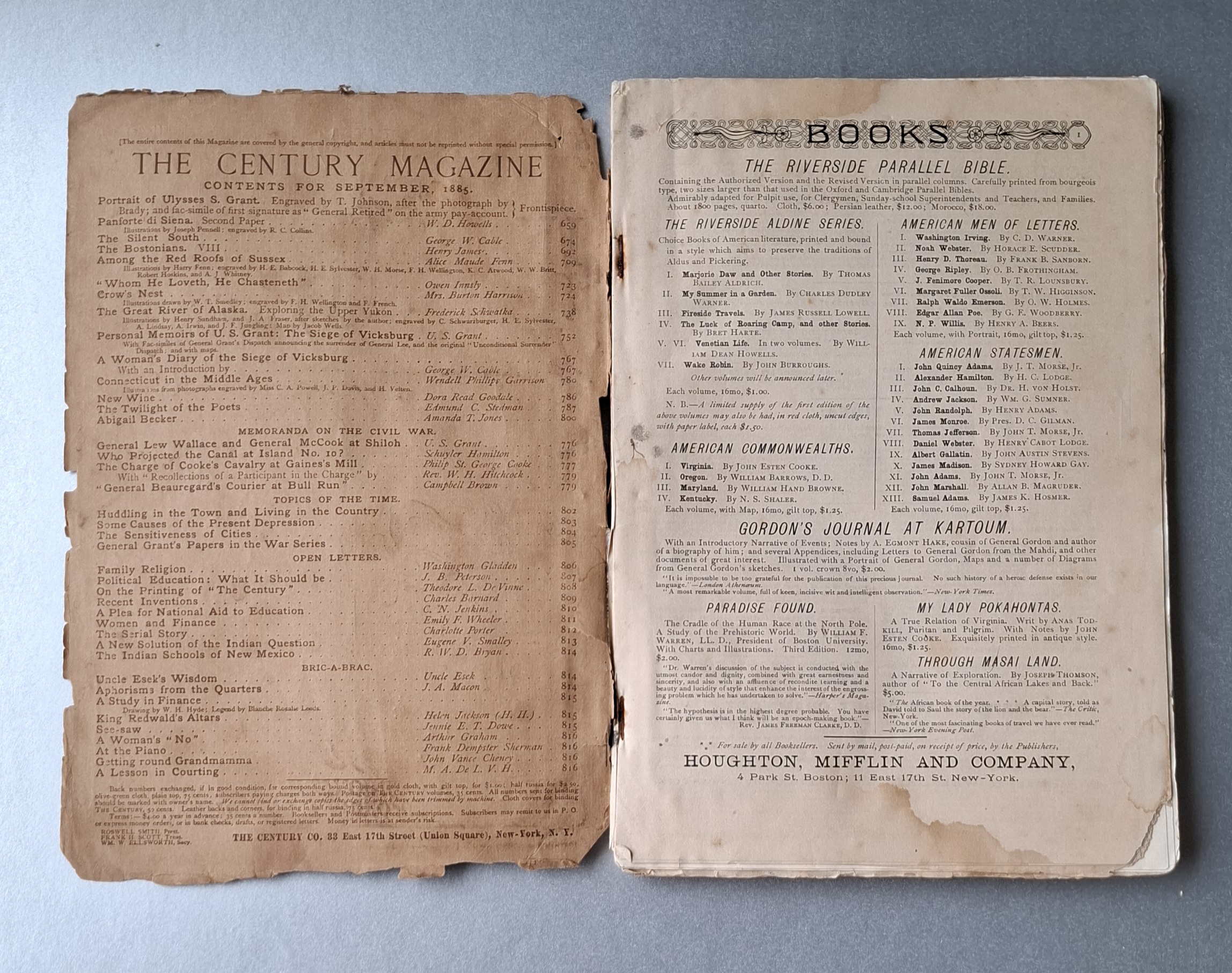 Ecco quindi la rivista (intera) da me acquistata, «The Century Illustrated Monthly Magazine» (solitamente abbreviato The Century Magazine), bimestrale all’epoca, con 150 pagine di testi e 40 di pubblicità.
