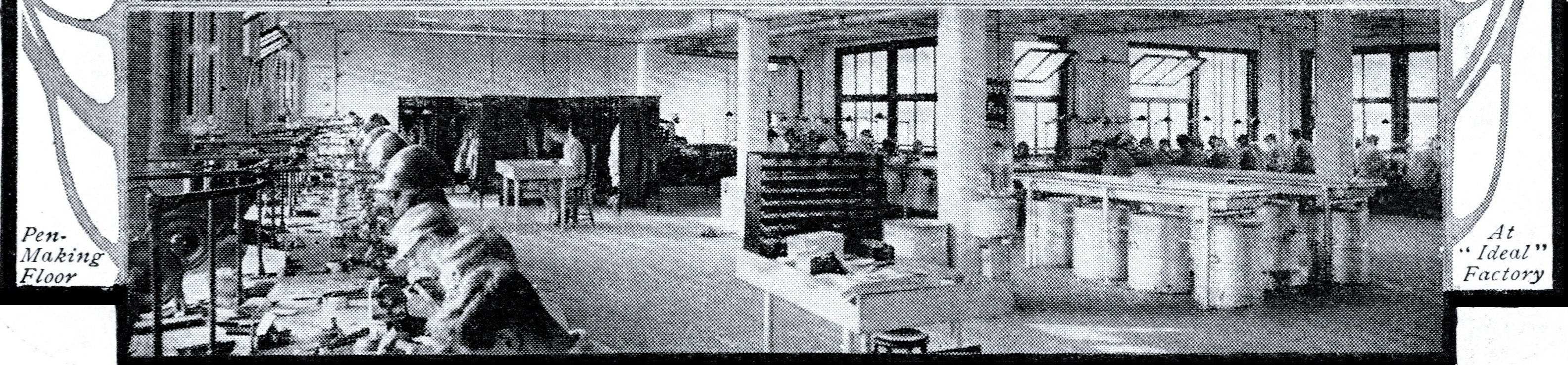 Si noti lo spaccato della fabbrica laboratorio (Pen-making Floor at “Ideal” Factory) con molta luce naturale e aerazione altrettanto naturale (finestre aperte),