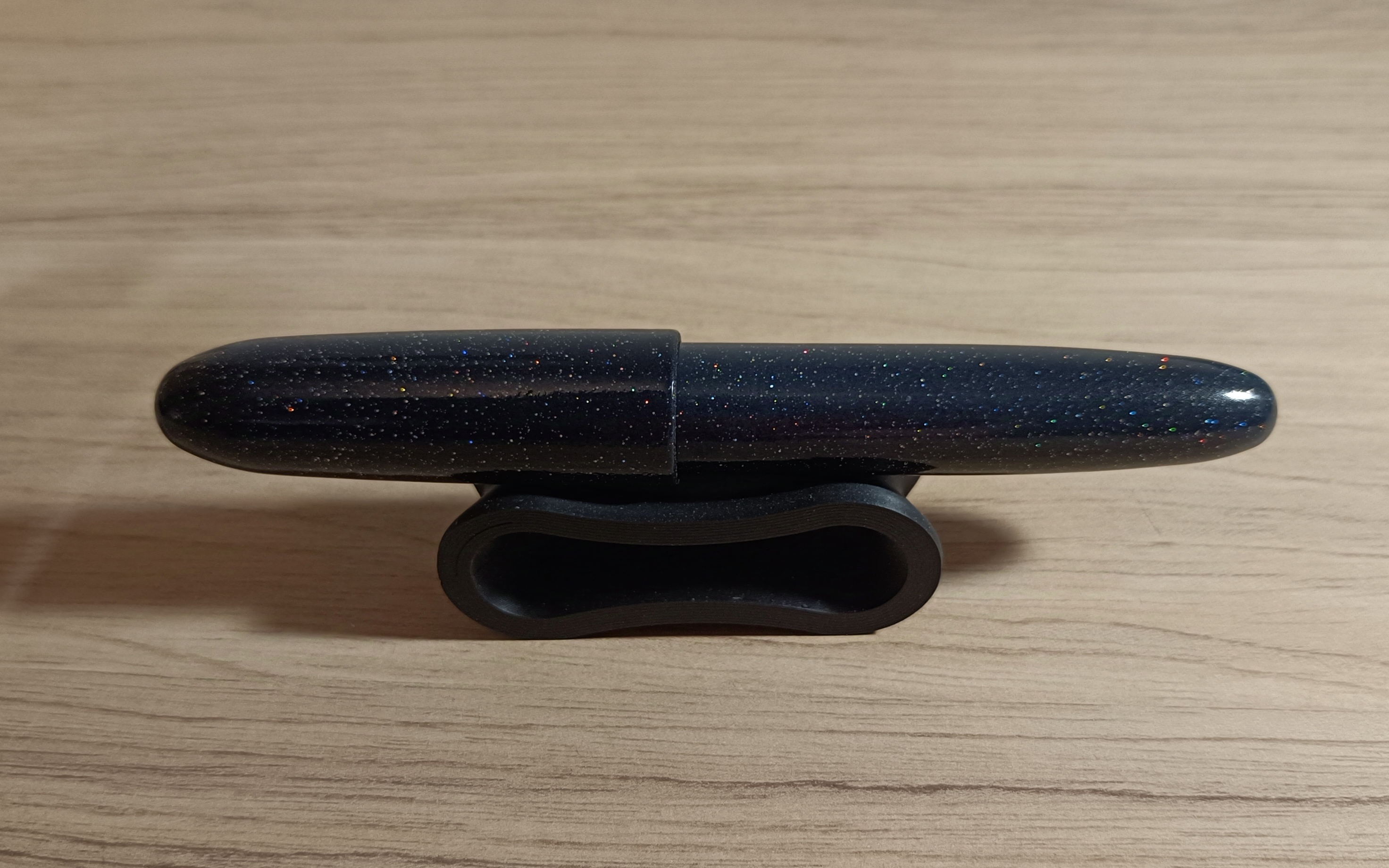 In conclusione, credo si tratti veramente di una bella penna, che mostra le potenzialità della produzione con stampa in 3D, in primis la libertà nella personalizzazione per forma, colore, finitura. La produzione di questa penna ha richiesto dei passaggi manuali, come la rifinitura delle parti uscite dalla stampante e la laccatura, dunque, direi che è una via di mezzo tra artigianalità e tecnica industriale. Forse la cosa che mi è piaciuta di meno è l’eccessiva leggerezza, l’avrei preferita un poco più pesante per poterla gestire meglio, ma credo che sia un limite del materiale. La comunicazione con il venditore/artigiano è stata sempre ottima, insieme con la penna ho ordinato anche il set di poggia-penne e ne sono pienamente soddisfatto (sono tre, due li vedete nelle foto, più uno più grande, è possibile acquistarne solo uno e anche questi hanno una grande possibilità di personalizzazione dei colori).