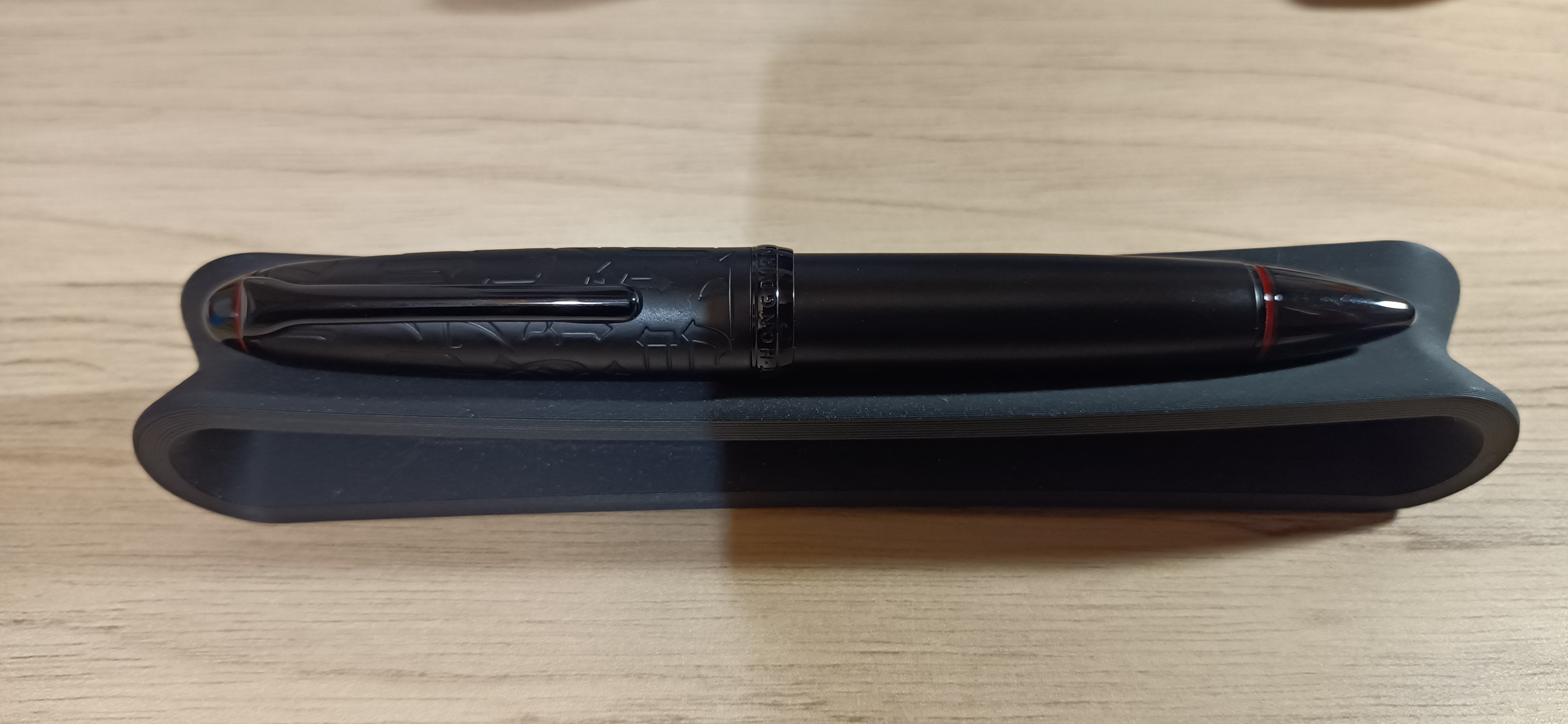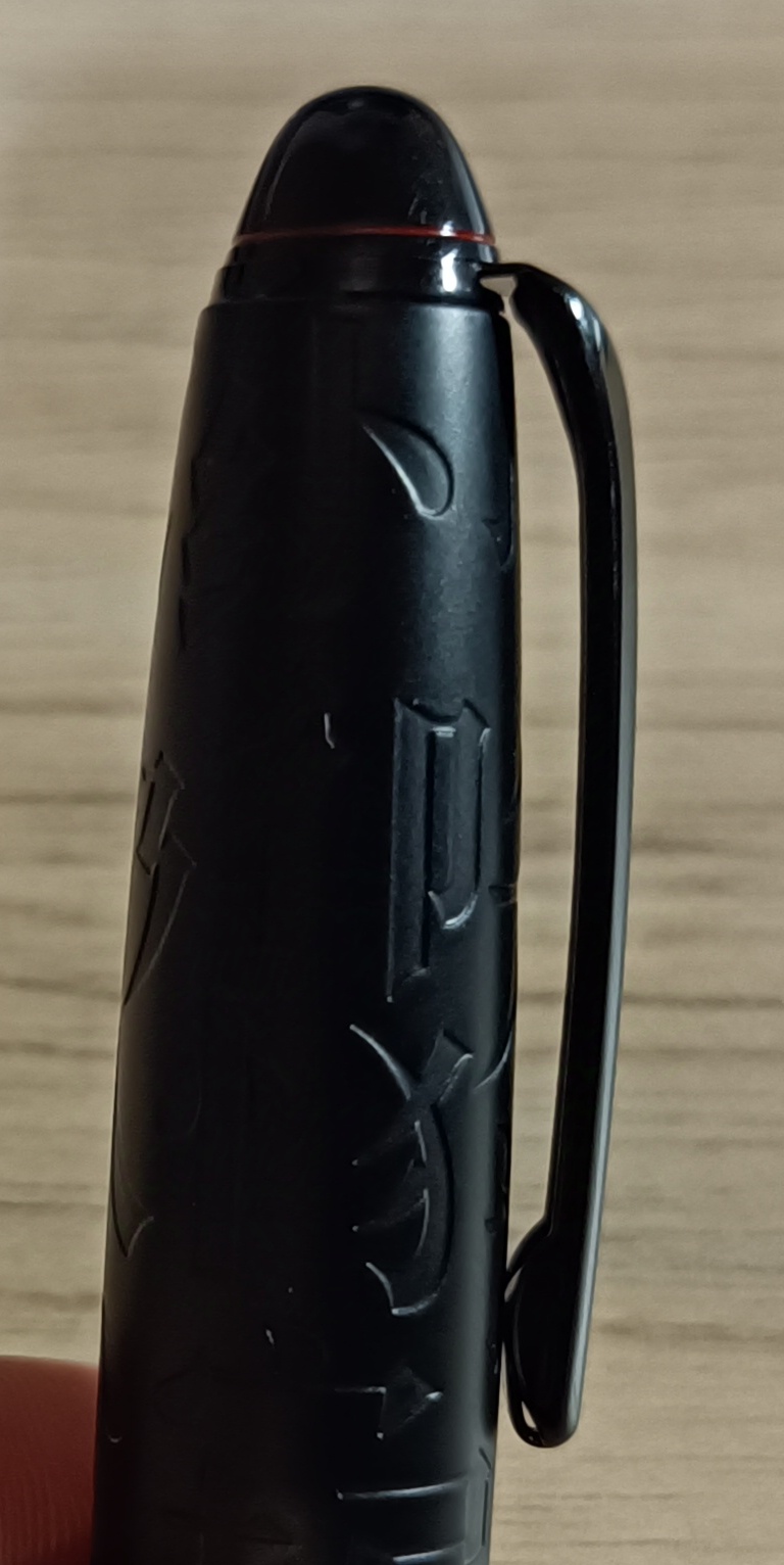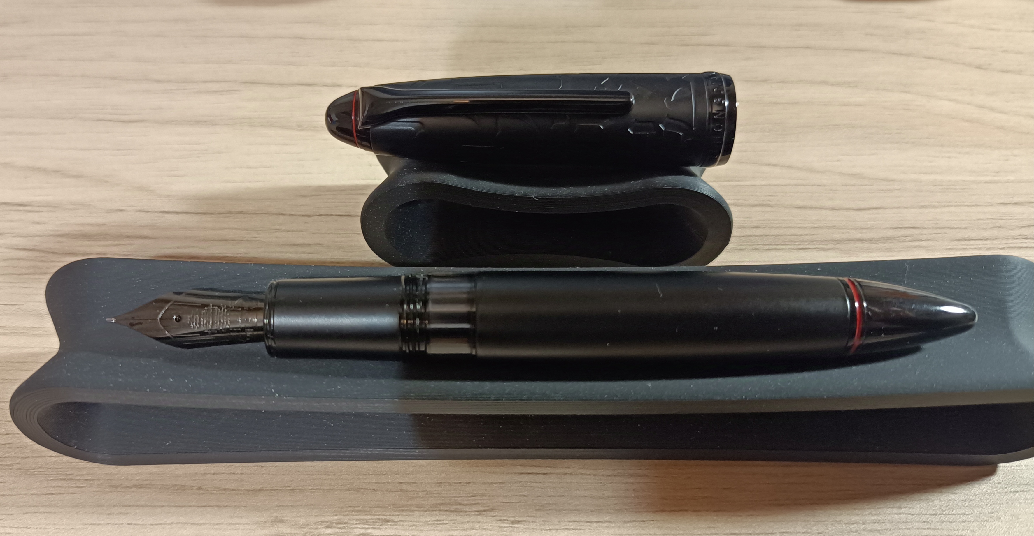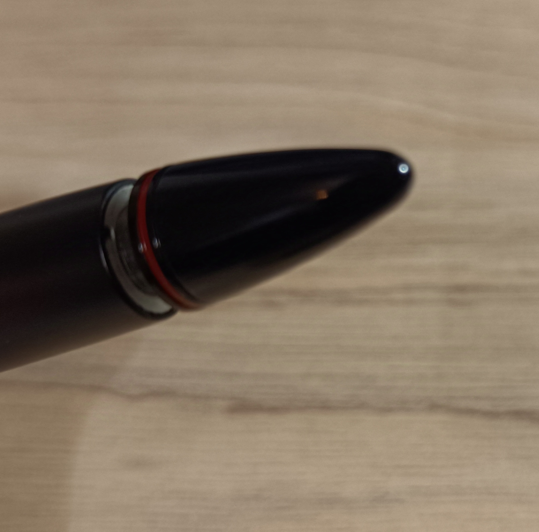 Non so quanto ci sia di novità nel nero con anellini rosso cupo; mi pare che sia un accostamento già proposto da un modello Cross di cui non ricordo assolutamente il nome e da Aurora con la sua Ipsilon Cento. Mi pare che anche MB abbia fatto una edizione limitata della Starwalker tutta nera con anellini rossi alle estremità.