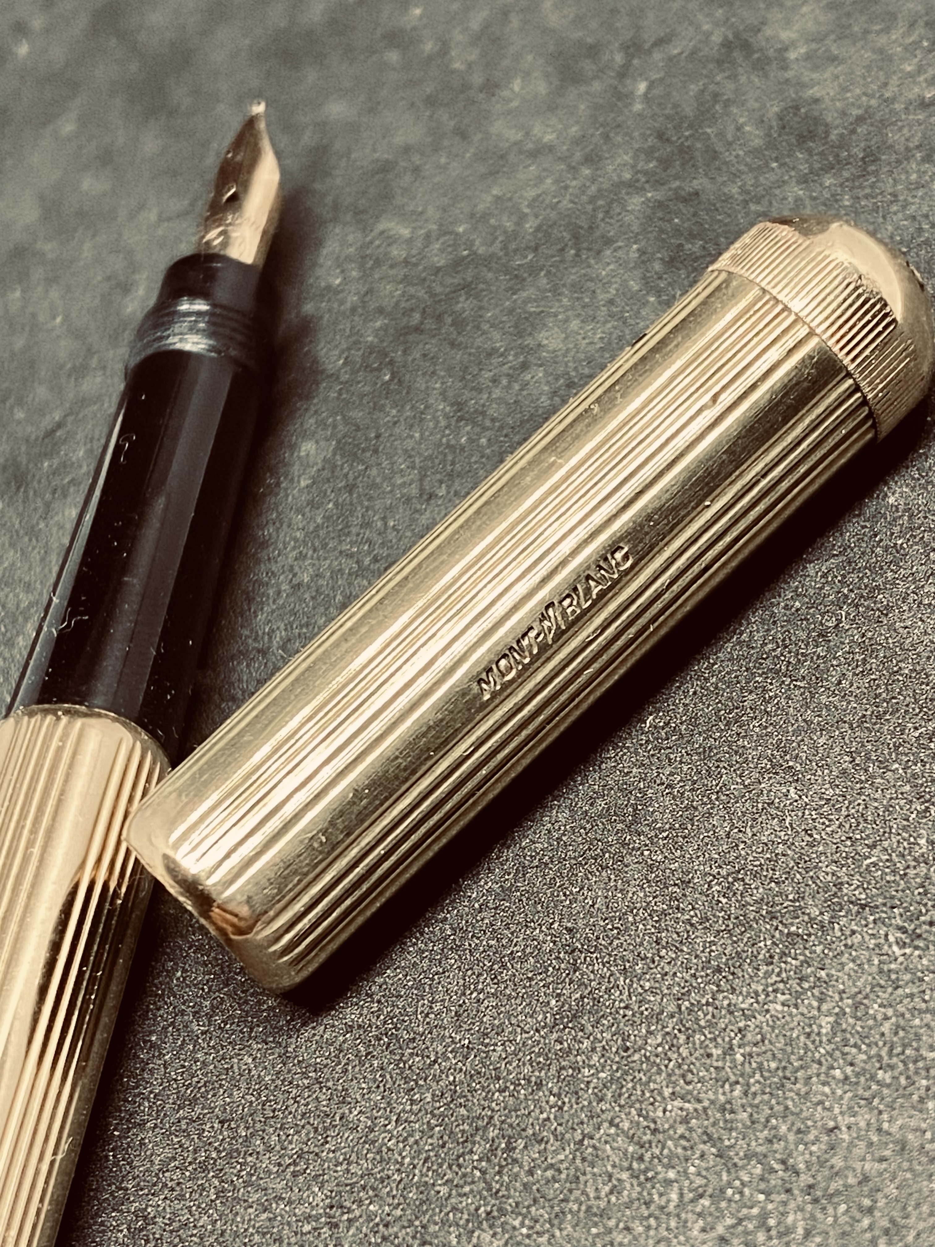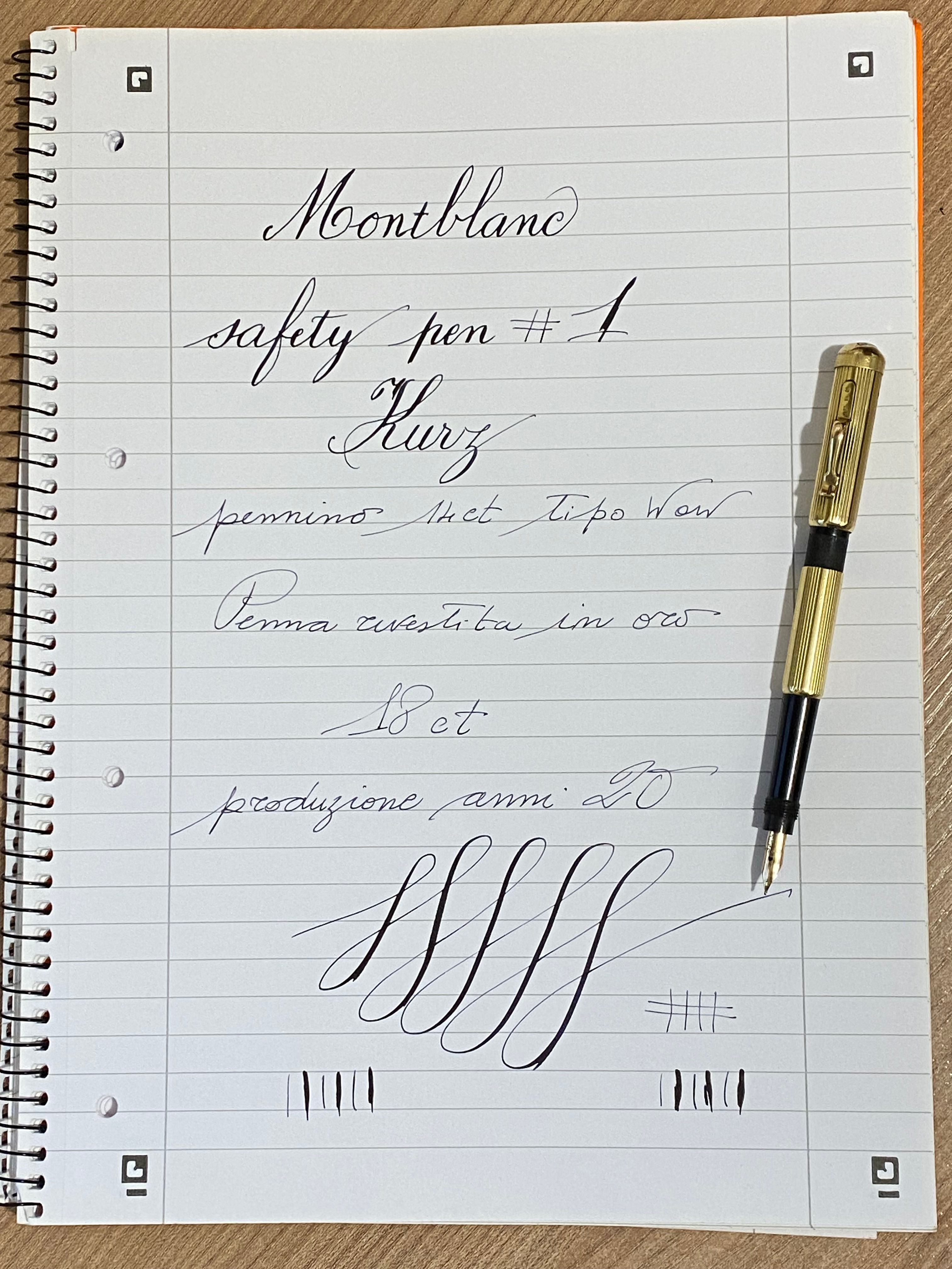 E’ passato quasi un anno da quella mattinata tra i banchi di un vasto mercatino, quando vidi far bella mostra di se una piccola penna dorata in un mucchio di ciarpame. “Chincaglieria da due soldi” pensai, come del resto tutta quella orribile bigiotteria di cui si circondava. Ma la curiosità era stuzzicata da qualcosa che mi diceva di muovere i piedi gonfi per la stanchezza, dopo una infruttuosa lunga mattinata tra i banchi dei venditori. Mi avvicinai al venditore e chiesi di mostrarmela. Fu subito tutto chiaro che non era propriamente del vile ciarpame, e non fu la sommità del cappuccio su cui vi erano incise le iniziali HK in luogo della famigerata punta a 6 stelle, né il pennino che si rifiutava di venire fuori a causa del meccanismo Safety guasto, ma la piccola incisione dietro al cappuccio a farmi capire che avevo rinvenuto un piccolo tesoro: una Montblanc Safety Pen #1 Corta con rivestimento in oro massiccio 18ct.