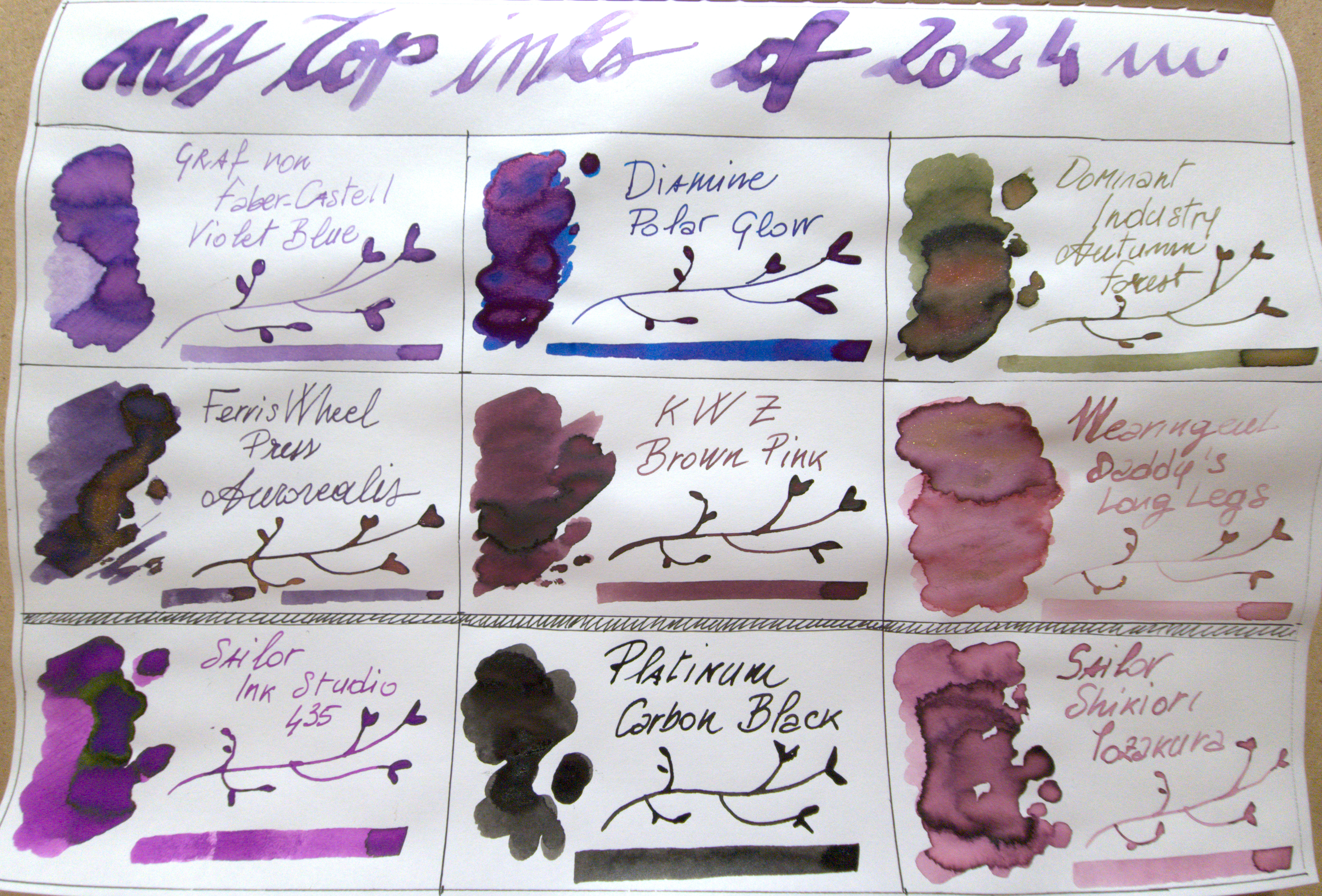 Io che non amo i verdi, sono estasiata da questo oliva desaturato con quel glitter ramato. Ricorda il sottobosco autunnale, ha uno shading bellissimo. E' un altro inchiostro che ha a lungo abitato una delle mie penne quest'anno e merita assolutamente una menzione tra i top