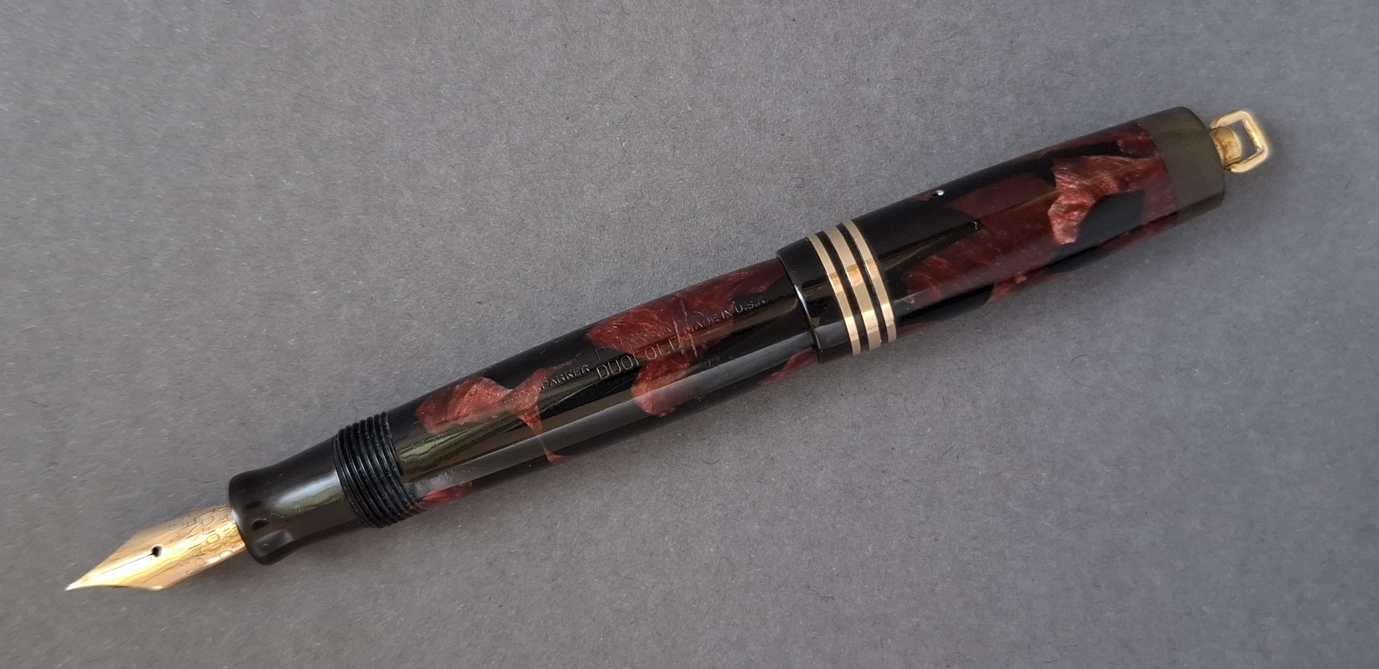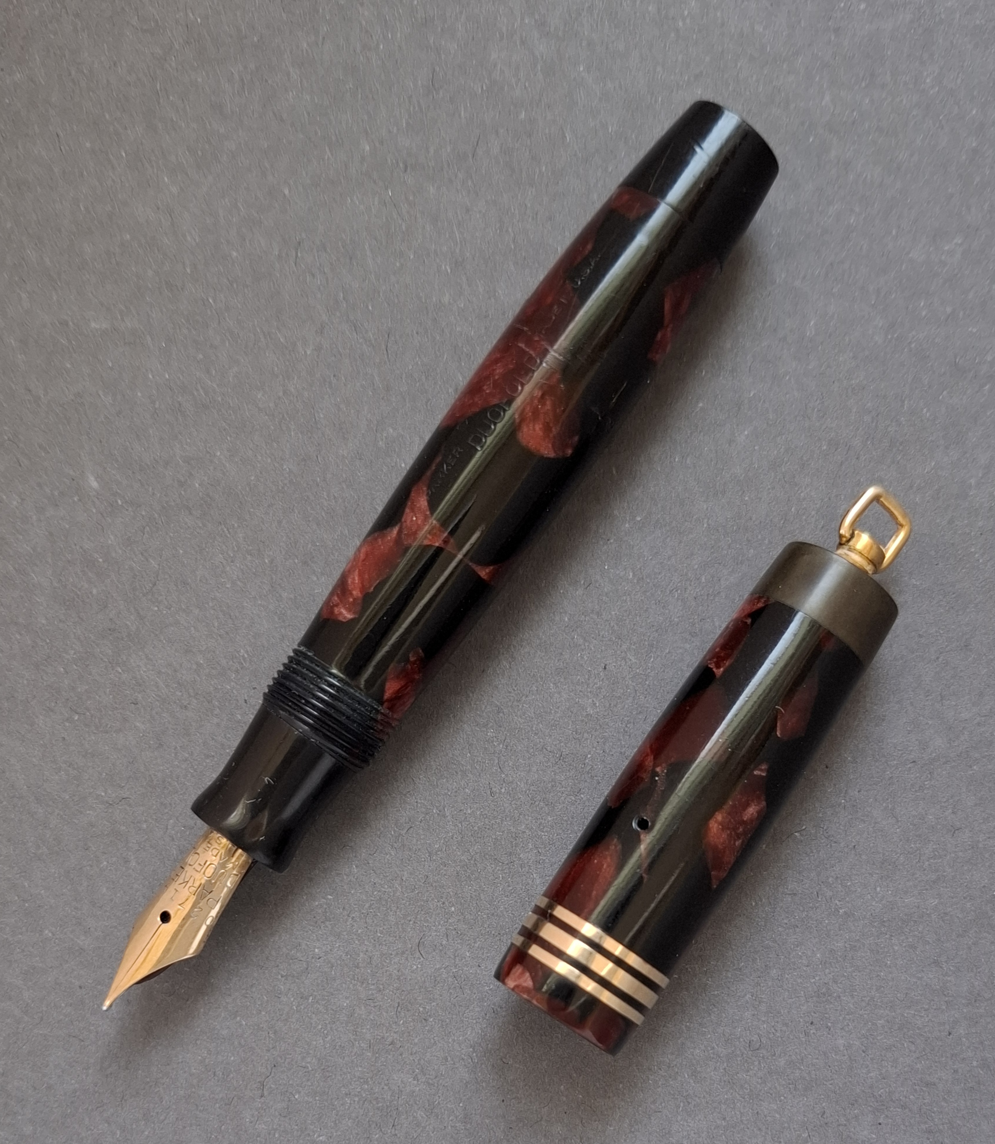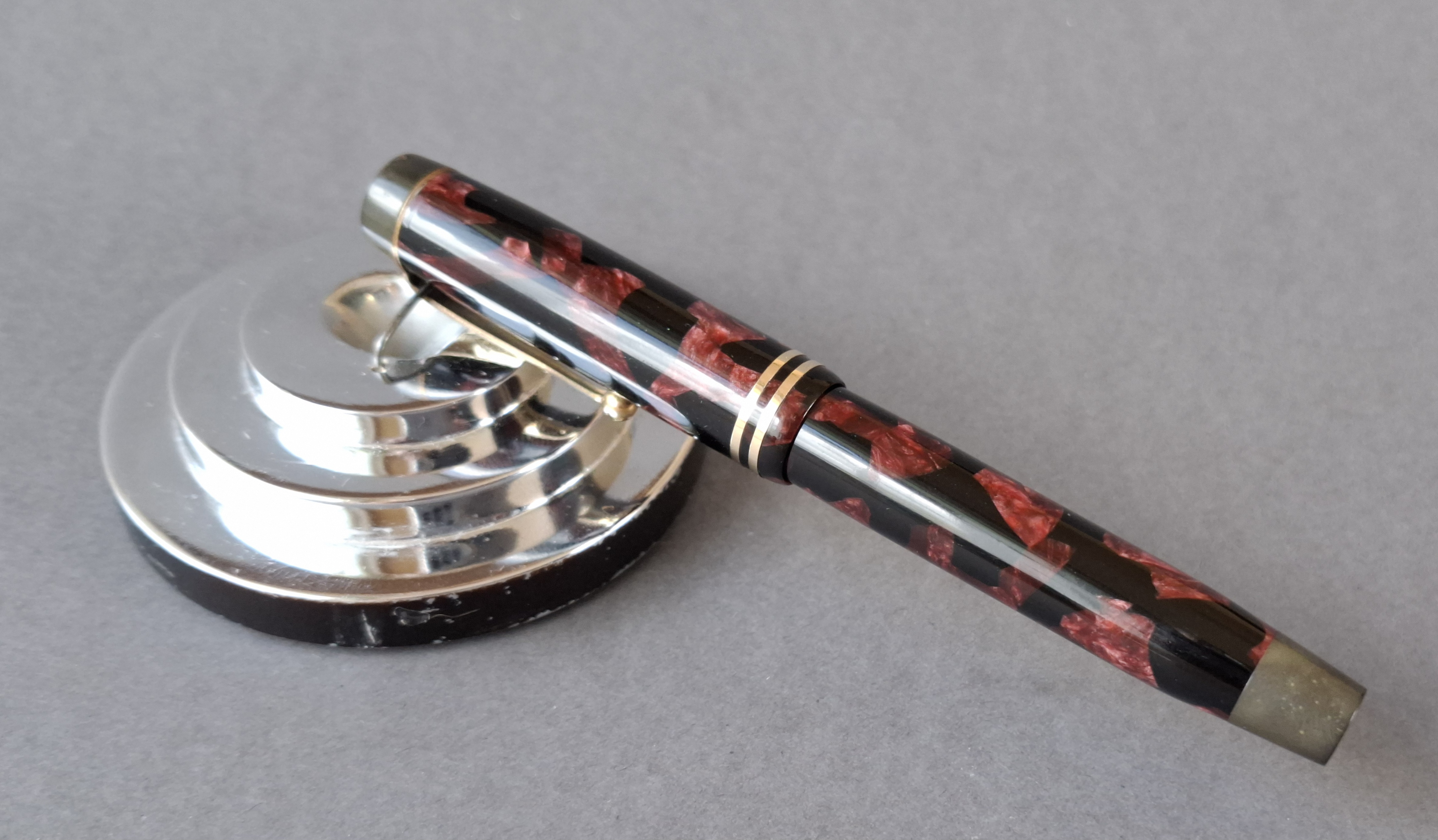 Concludo con uno scatto che mostri l’impiego dello stiloforo anche con la Duofold Lady/Juniorette rossa prodotta per il mercato danese (marchiata con l’ancora e il monogramma dell’importatore Christian Olsen).