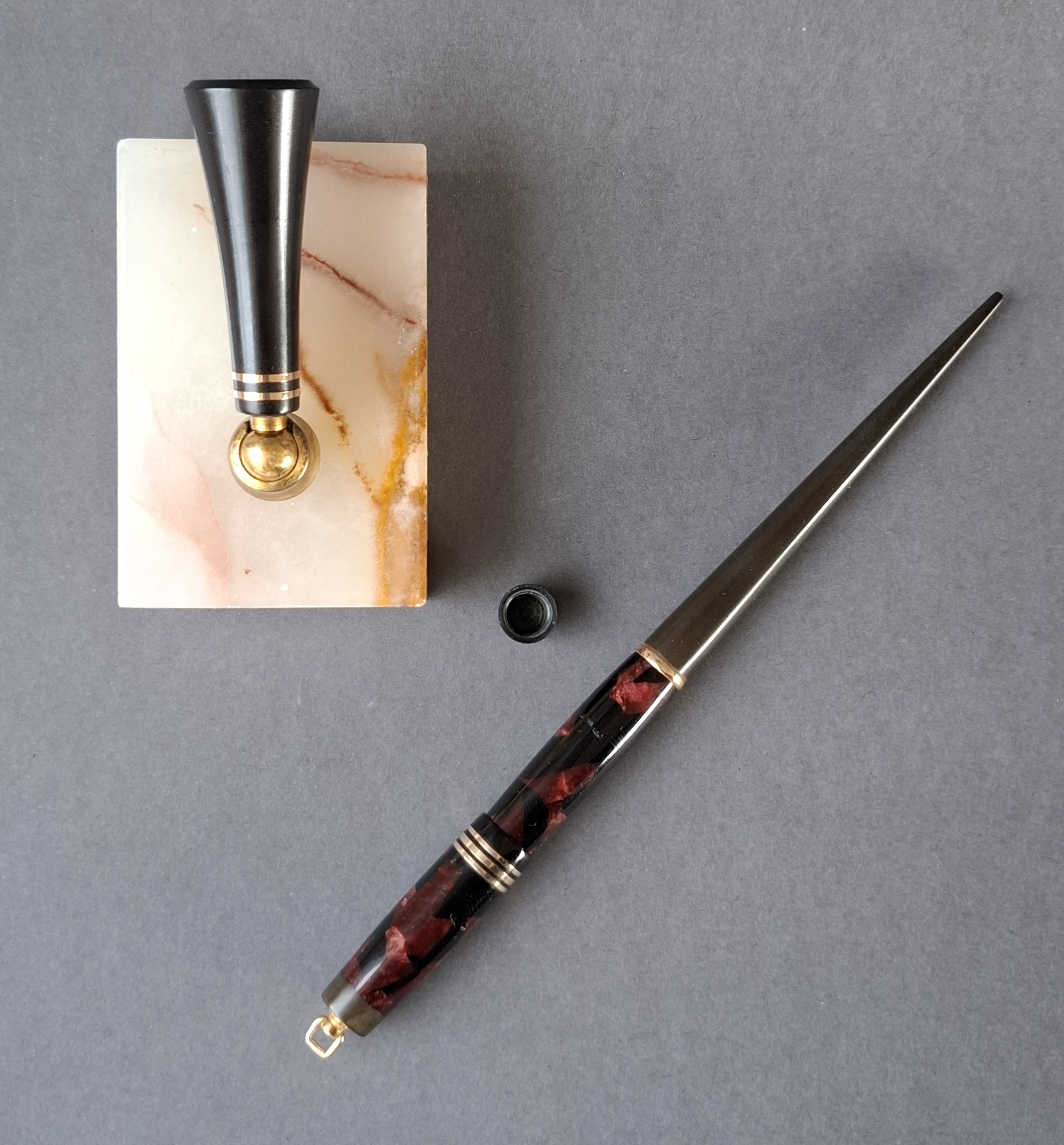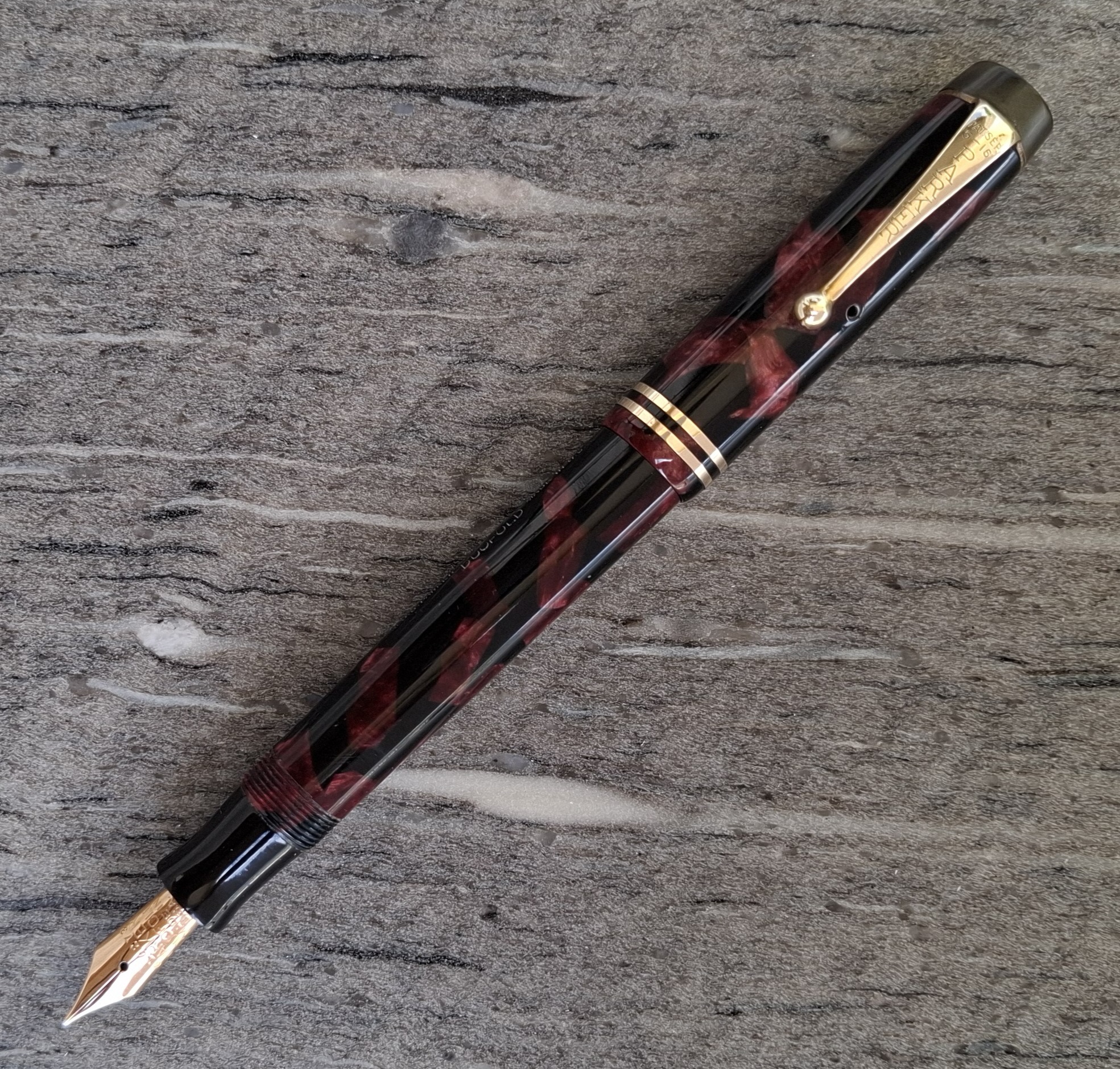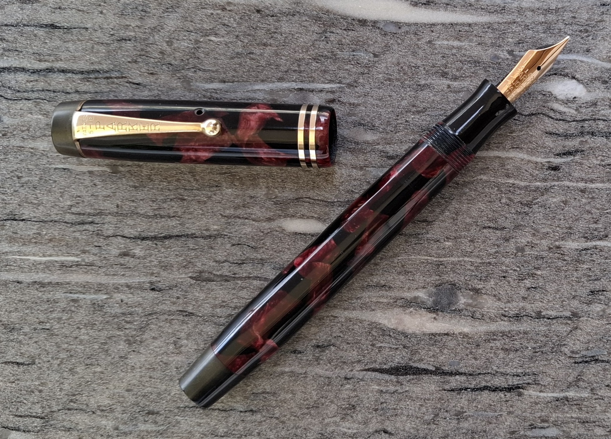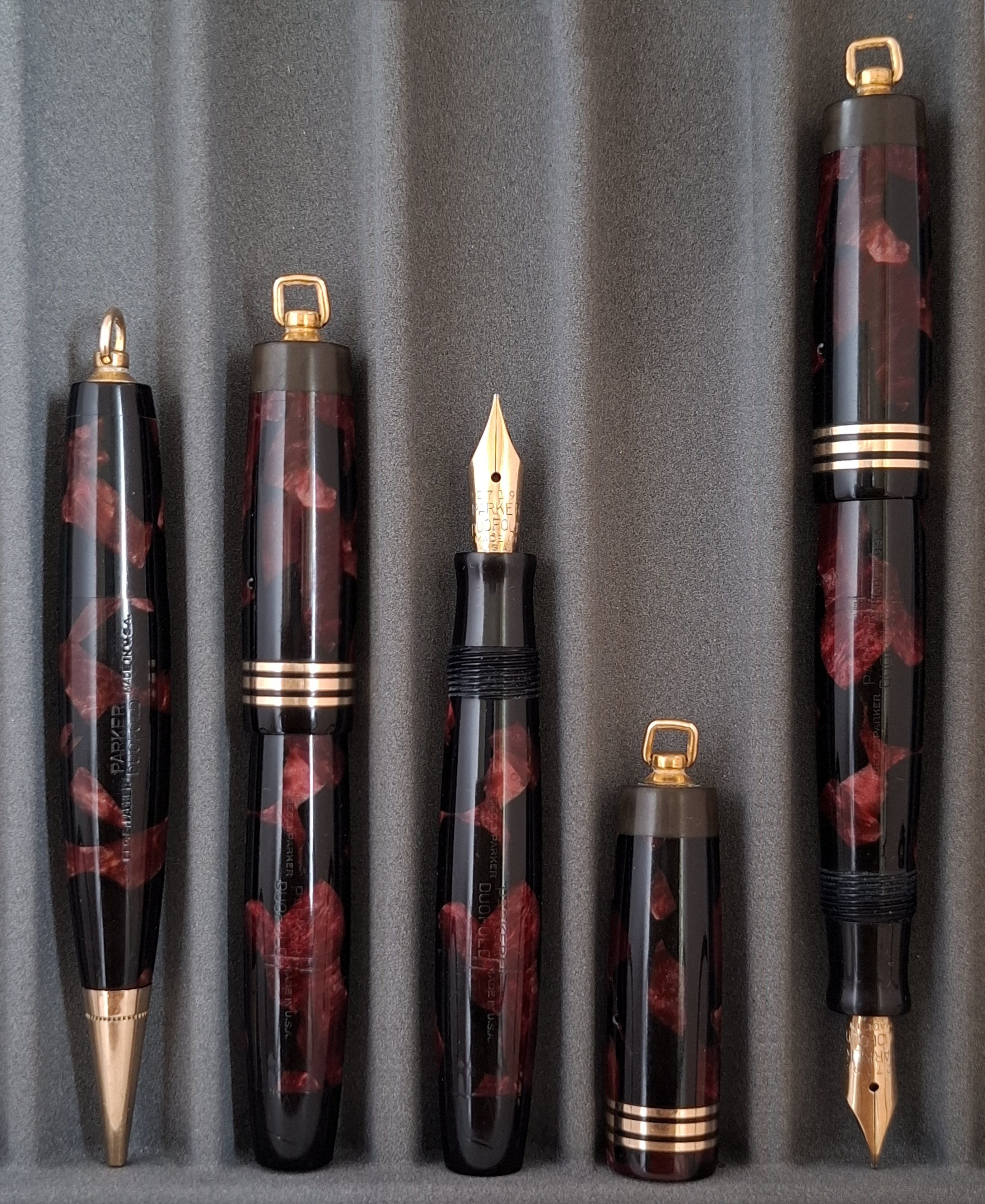 Concludo con uno scatto che mostri l’impiego dello stiloforo anche con la Duofold Lady/Juniorette rossa prodotta per il mercato danese (marchiata con l’ancora e il monogramma dell’importatore Christian Olsen).