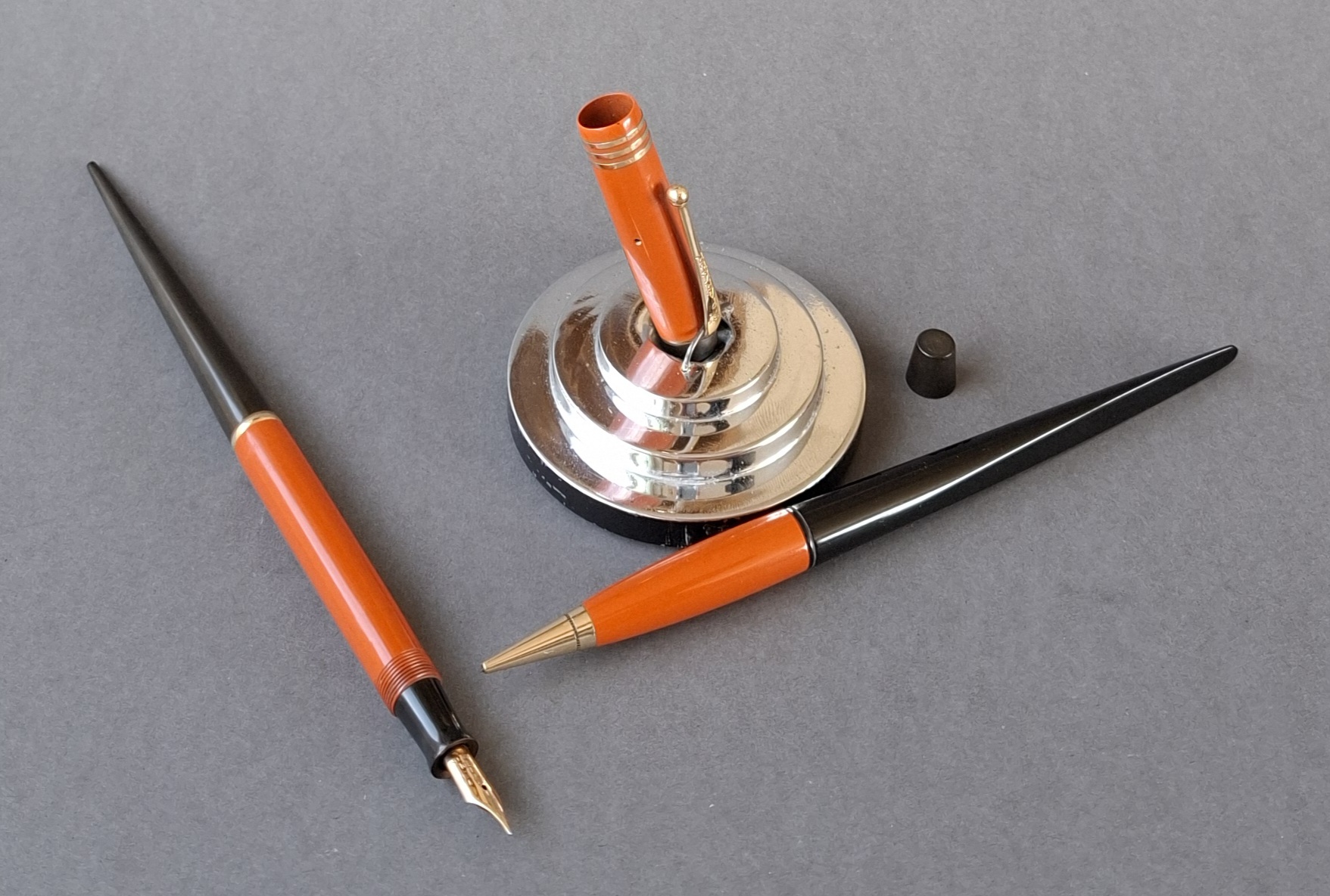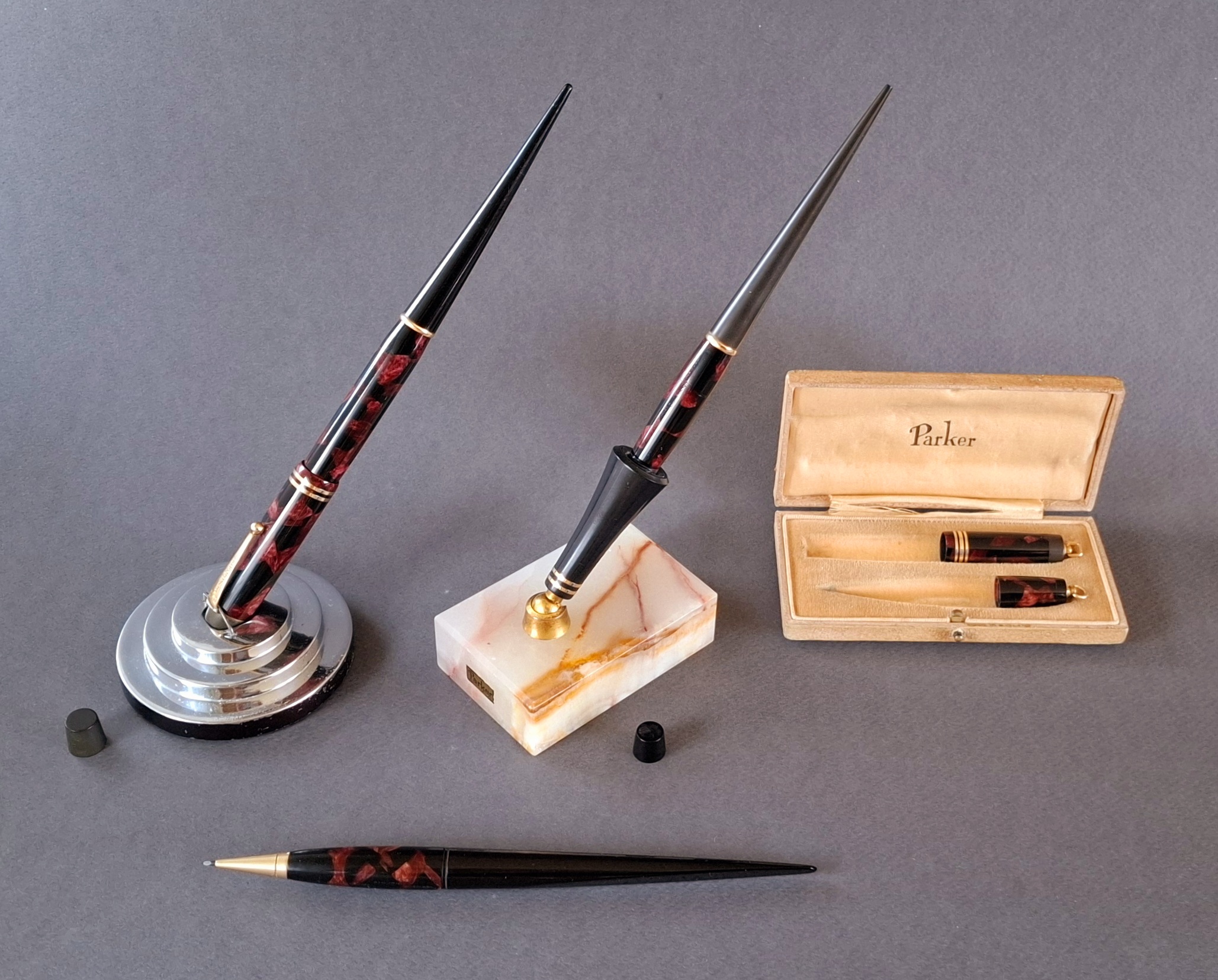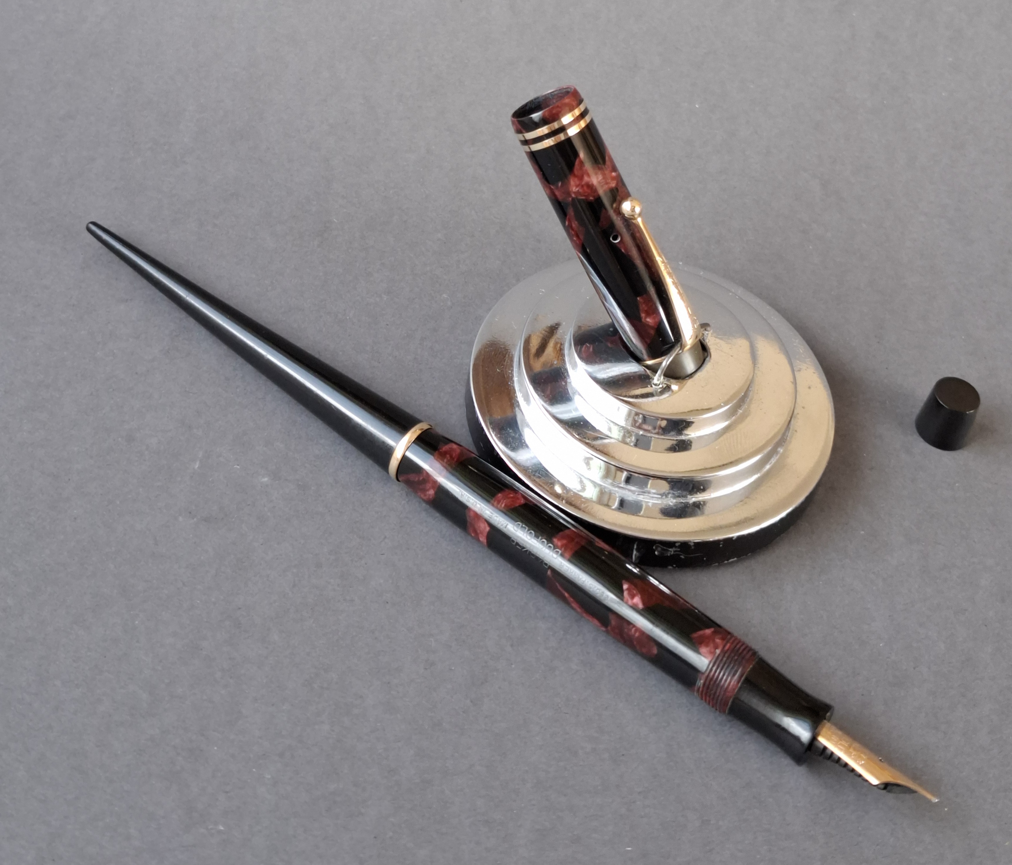 86. Parker «GO» onyx desk base. With Duofold Juniorette for Danish market (Christian Olsen).jpg