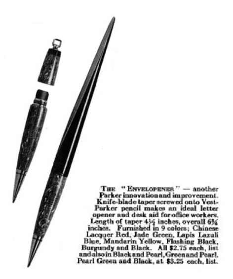 Nell’articolo citato si potranno reperire informazioni interessanti anche sul brevetto del Penparker e sul suo titolare, I.D. Tefft.