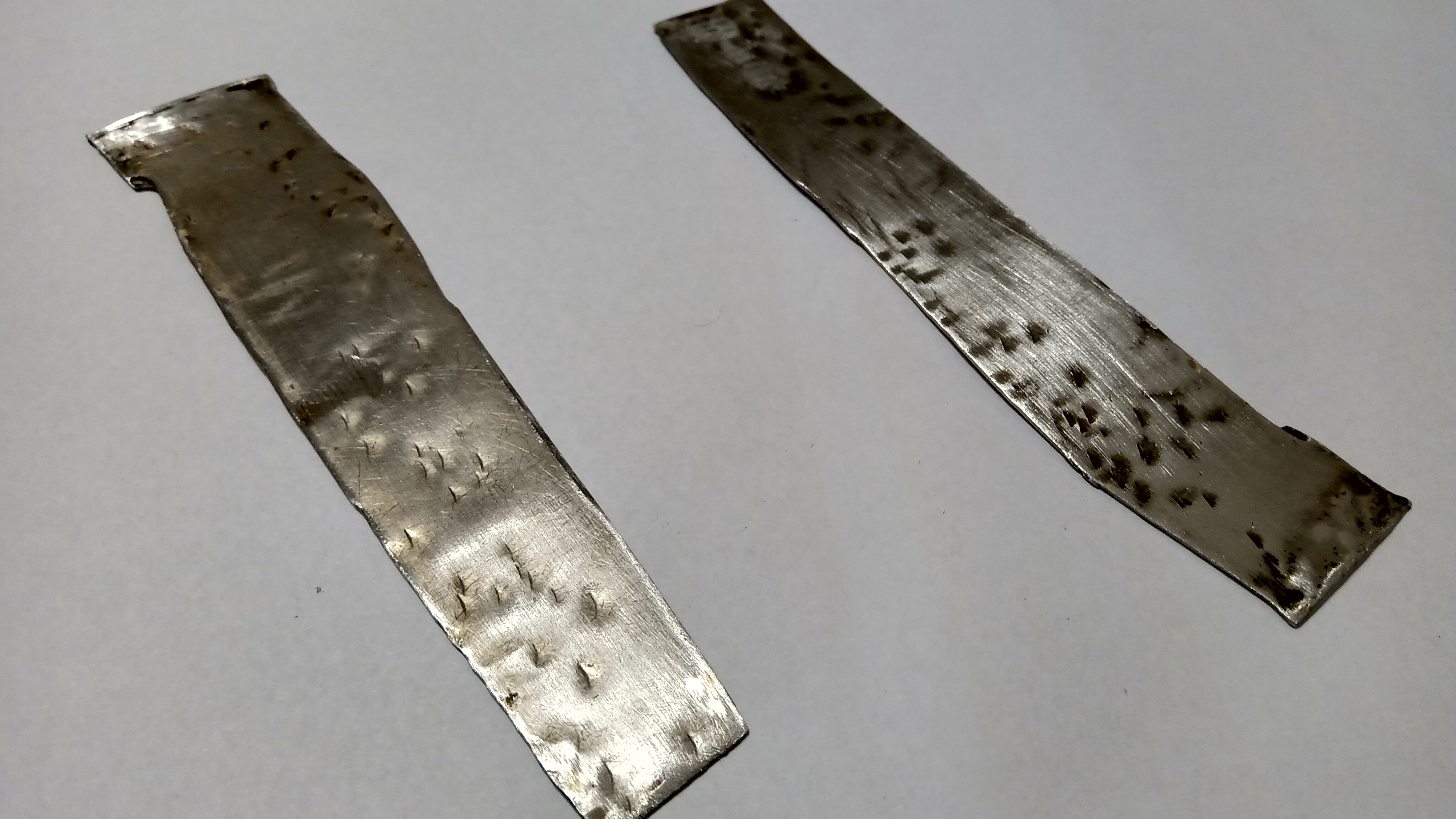 Una volta preparato l'elettrolita per la cromatura, ho deciso di sperimentare con alcuni pezzi di ottone e bronzo, alcuni dei quali placcati e altri con superfici crude...