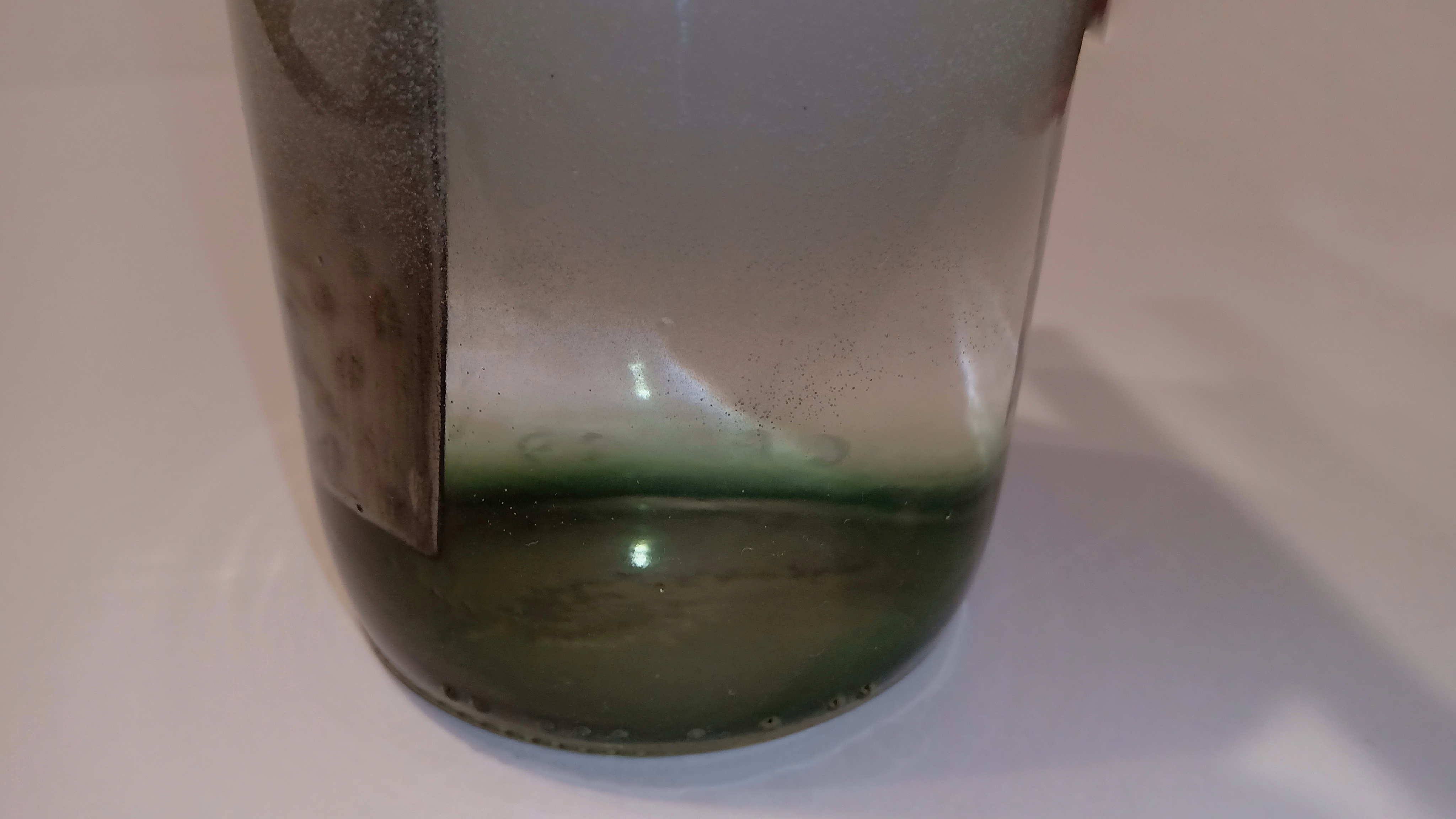 dall'elettrodo positivo si staccavano gli ioni di cromo, che generano un liquido scuro con una colorazione tra il marrone e il bruno...