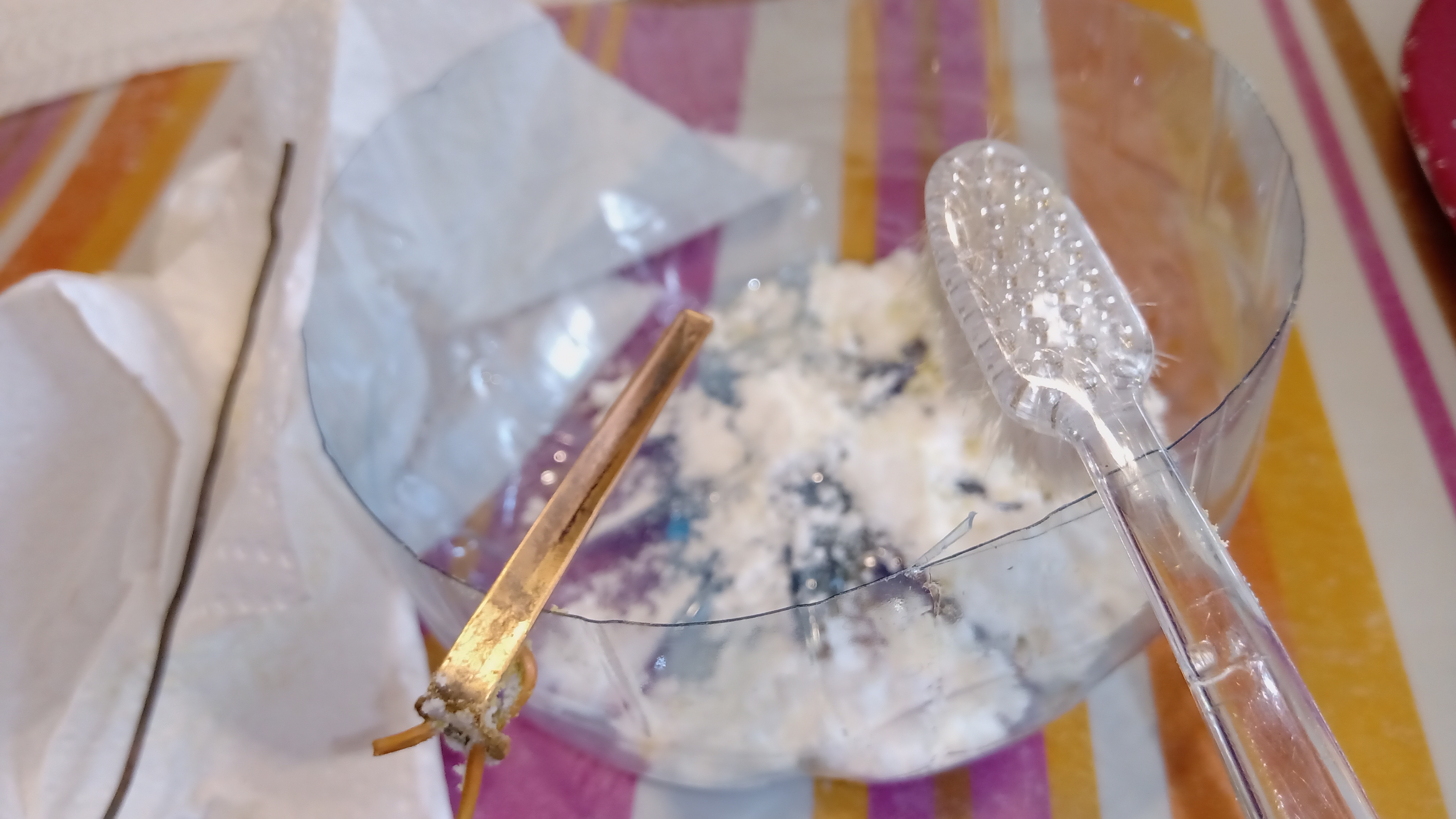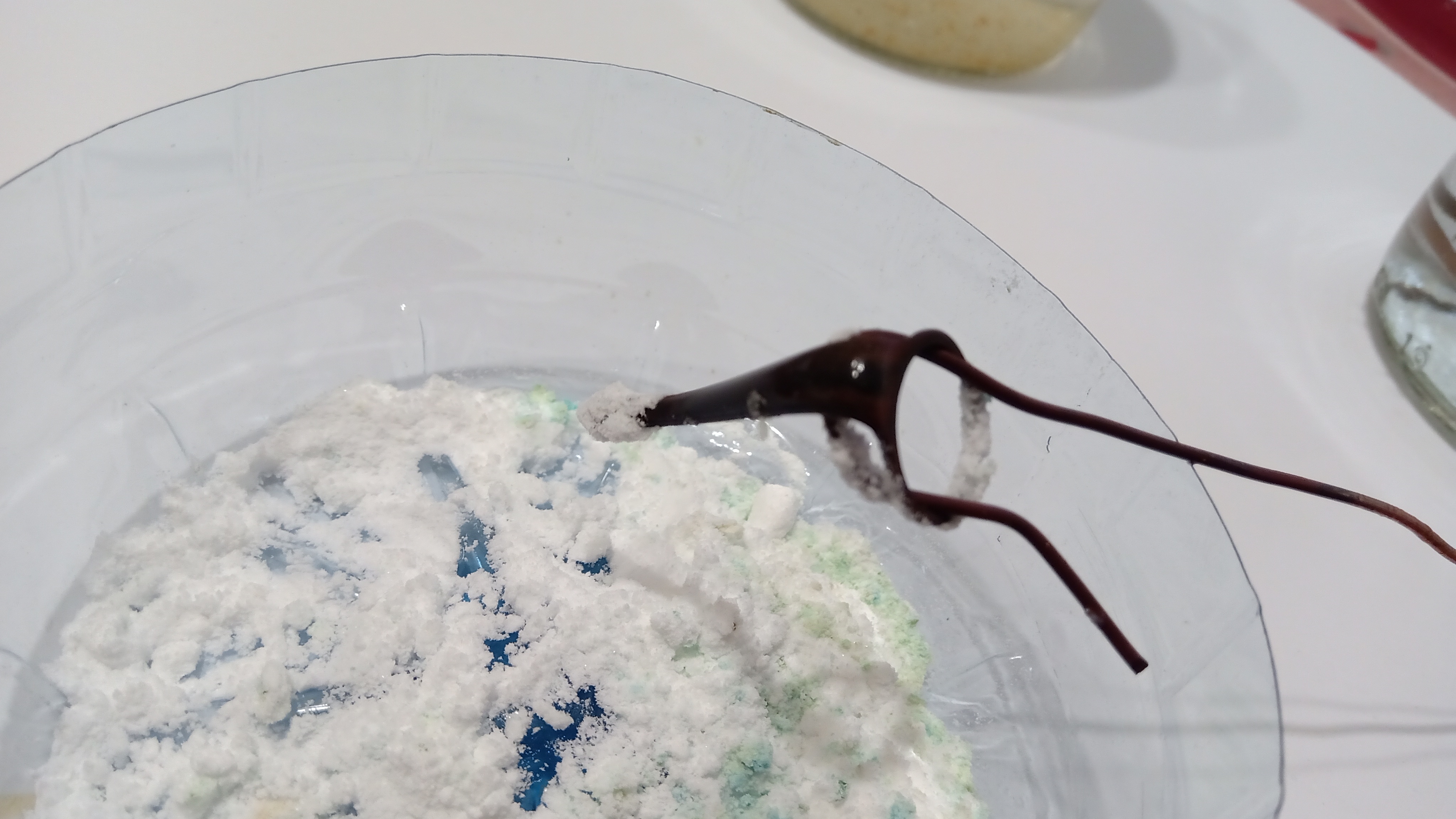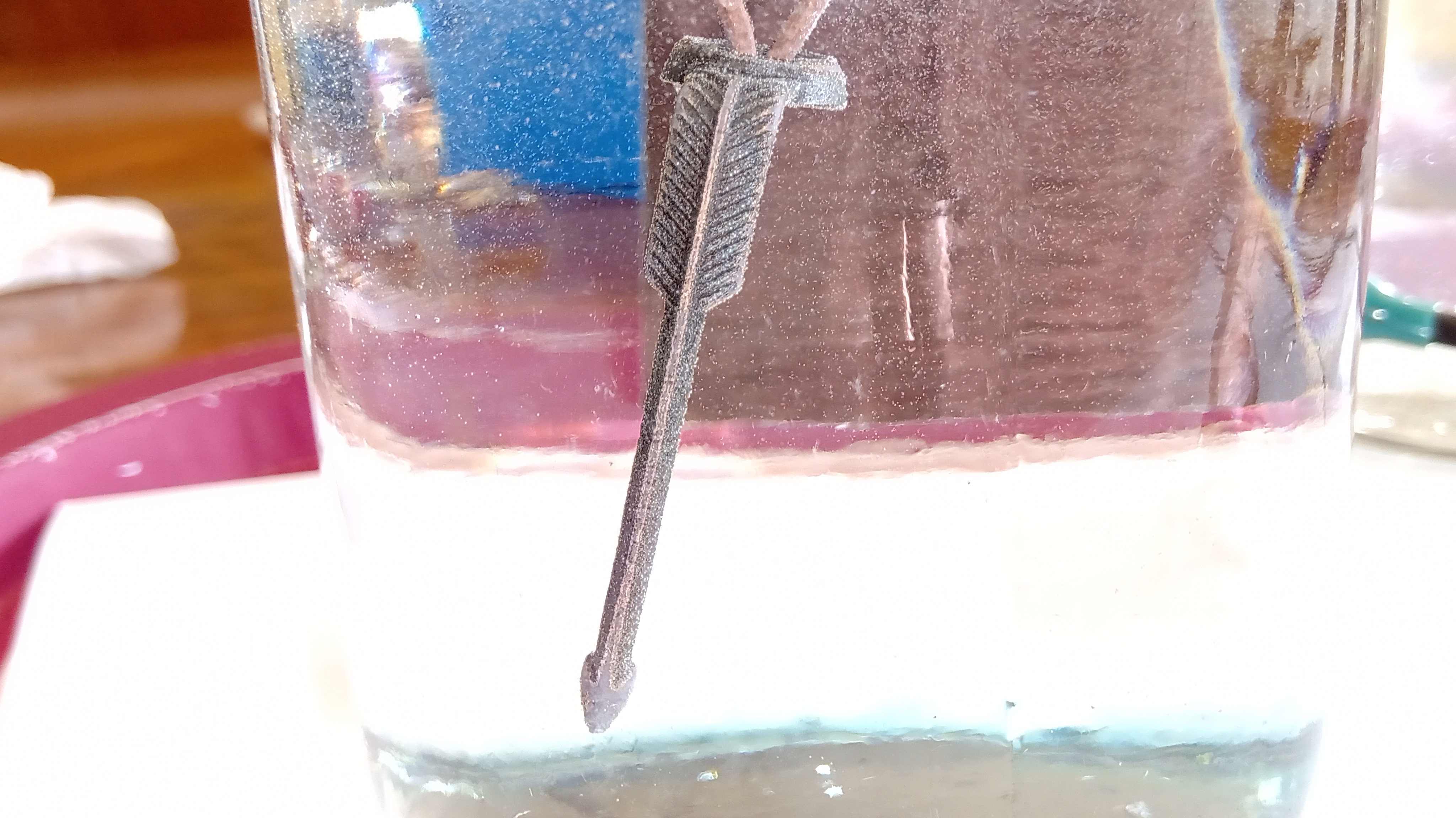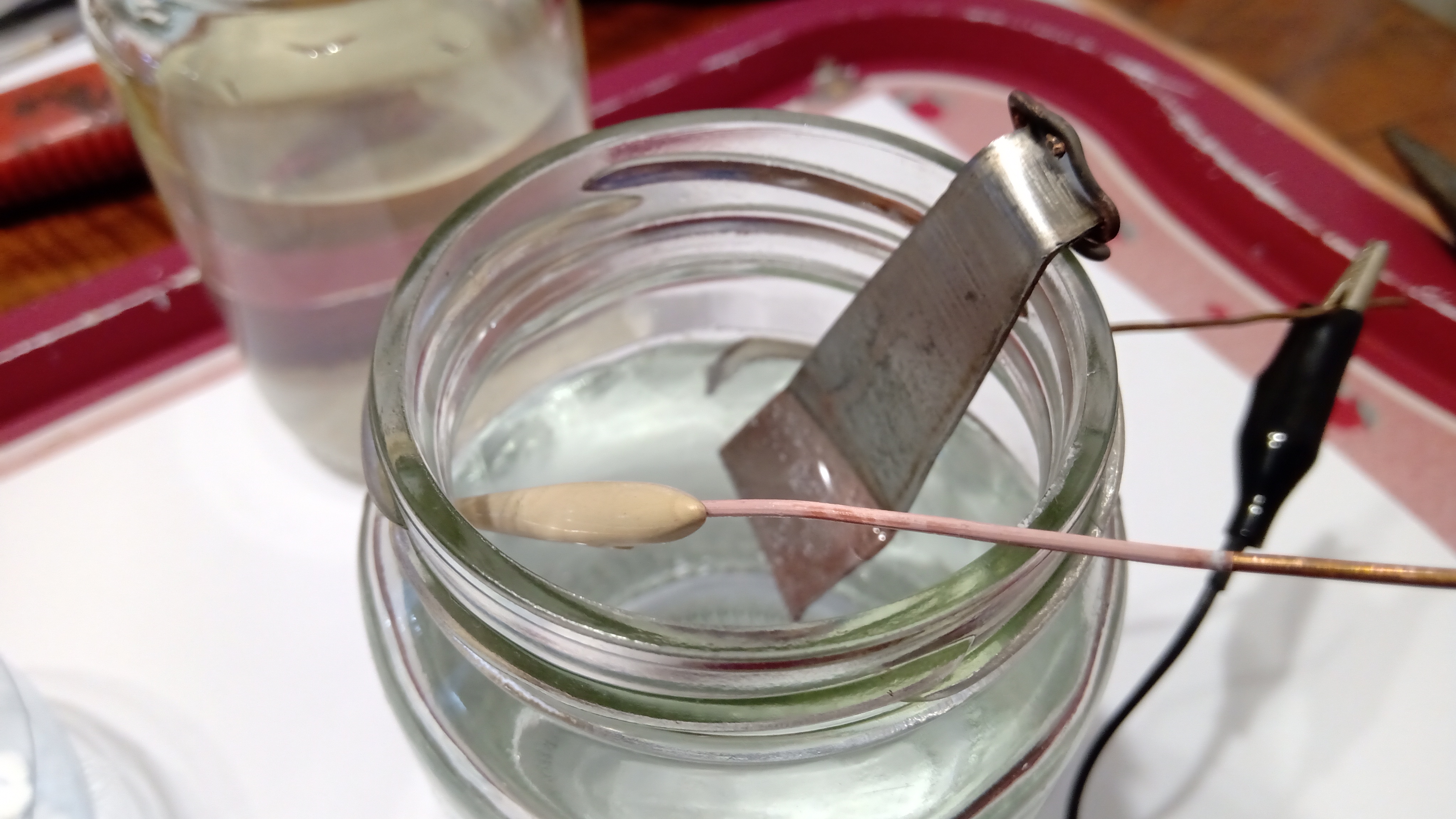 La soluzione di base era la stessa utilizzata per la nichelatura (1/2 litro di aceto bianco + 2